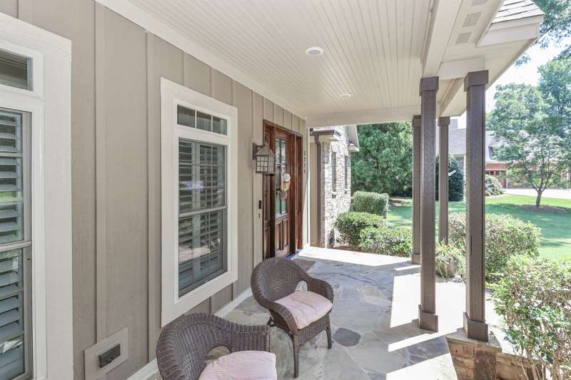 Statesville Country Club/Shannon Acres Golf Hole 13. Beautiful crown molding accents much of the interior, with coffered ceilings in the dining room adding a touch of elegance. The living room features a wet bar, perfect for entertaining, and a lovely fireplace with gas logs. The eat-in kitchen opens to a bright keeping room with a second gas fireplace and abundance of natural light. The kitchen offers top-of-the-line appliances and plenty of workspace. Spacious primary suite includes French doors leading to the covered back porch. Two additional bedrooms share a convenient Jack-and-Jill bathroom. A large laundry room with sink adds functionality, and back stairs lead to a versatile upper level featuring a family room, fourth bedroom, full bath, and a bonus room surrounded by windows. Enjoy peaceful views of the golf course from the covered porch overlooking the large, half-acre lot. Tucked away on a quiet street with minimal traffic, this home is truly a must-see.