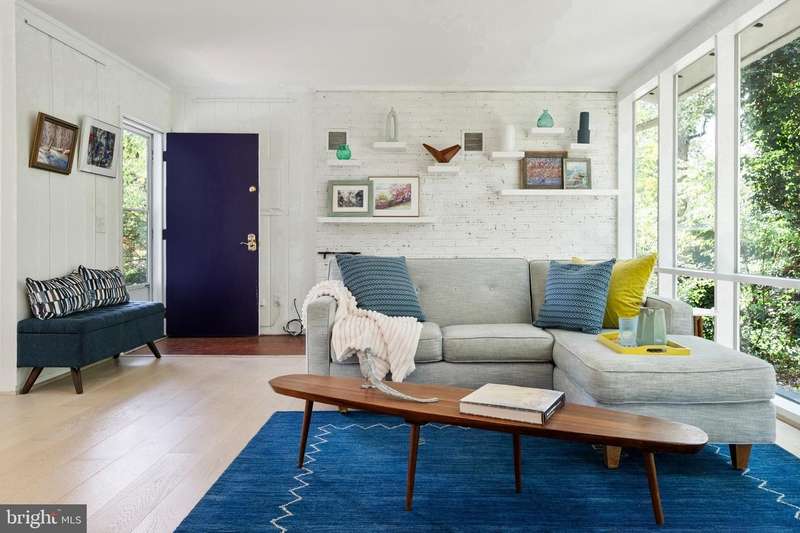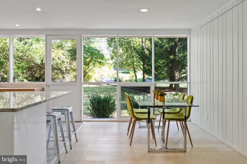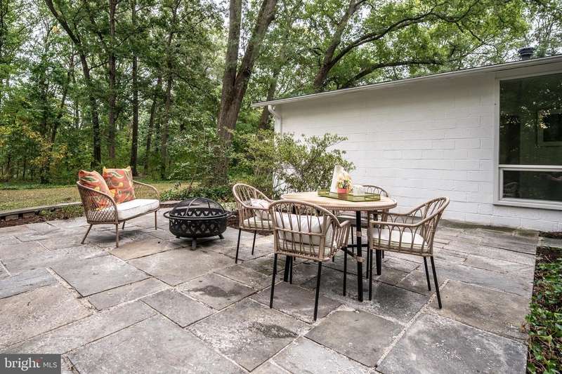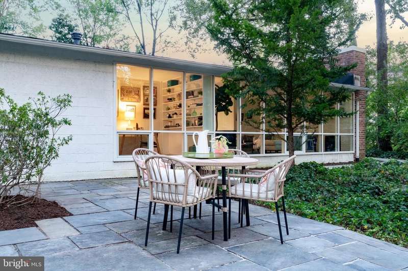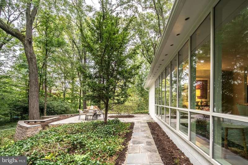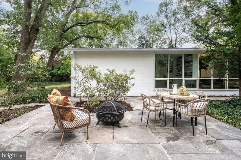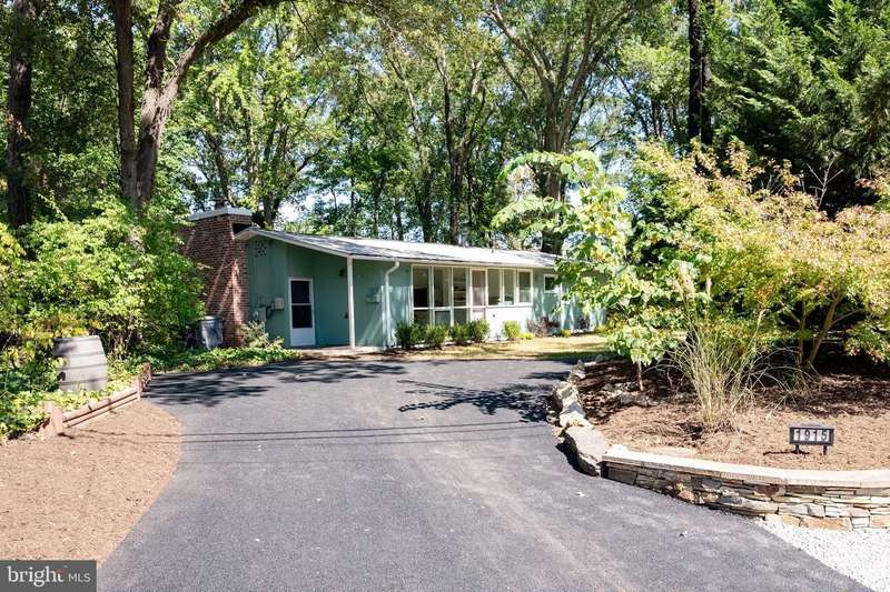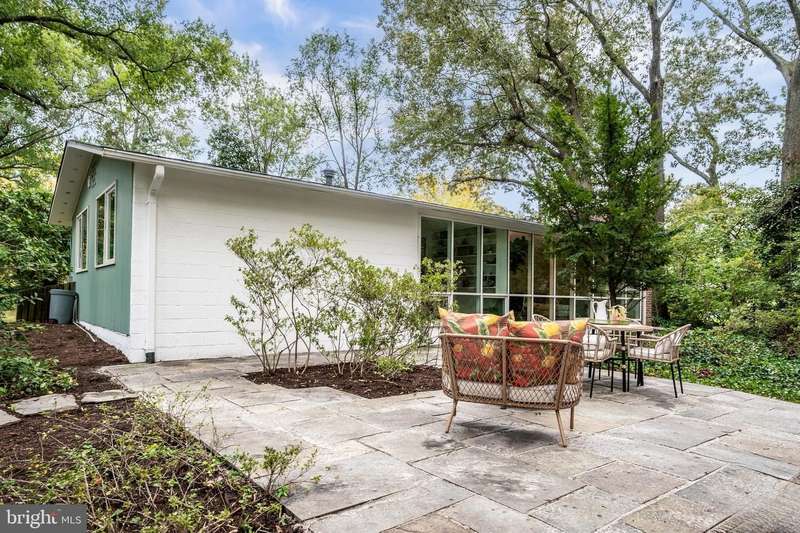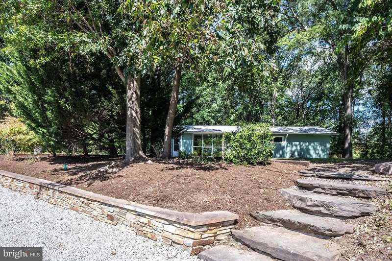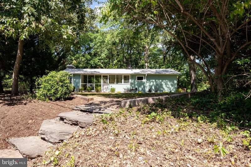 Renowned architect Charles Goodman designed this stunning one-level Mid-Century Modern home located in the highly sought-after Hollin Hills neighborhood. Situated on a premiere half-acre lot along desirable Marthas Road, this beautifully updated three-bedroom, one-bath residence offers both style and comfort. Extensive renovations were completed, including opening the kitchen walls to create a more open-concept layout, highlighted by a peninsula bar area with granite countertops, new cabinetry, stainless steel appliances, a pot filler over the range, floating shelves, custom tile work, and under-cabinet lighting. The laundry area was thoughtfully relocated to the hallway, featuring a stackable washer and dryer concealed by a convenient pocket door. Each of the three spacious bedrooms provides ample living space, with one featuring custom built-in bookshelves. The home boasts a large living room centered around a cozy wood-burning fireplace and a separate dining area perfect for entertaining. A major remodel in 2017 included the installation of double-pane windows throughout, a new roof, updated HVAC system, and wide-plank laminate wood flooring. Outdoor enhancements are equally impressive, with extensive hardscaping such as a stacked stone wall and steps at the front, slate pathways leading to a generous custom patio in the rear, and a recently added asphalt driveway that accommodates over three vehicles. Owned by the same family since 1953, it has been lovingly updated and maintained. With its blend of architectural charm and modern upgrades, this home also offers excellent potential for future expansion. Hollin Hills offers membership to 2 community pools as well as membership to a tennis and pickleball club. The scenic neighborhood boasts 7 parks, trails, an active Civic Association with seasonal celebrations, delicious super society and a friendly, close-knit environment. A commuter's dream location minutes from GW Parkway and trails, DC & the Pentagon; and south to Fort Belvoir, or north to Andrews AFB & Tysons Corner via I-495. This special address is an idyllic sanctuary to call home!