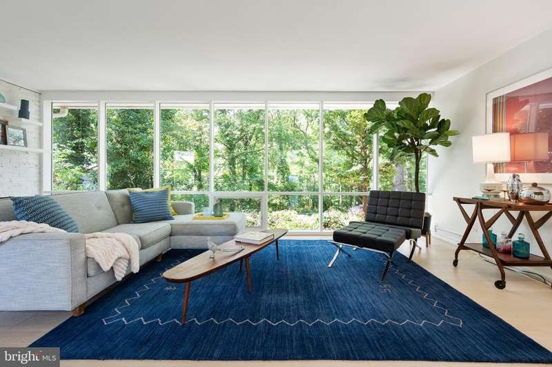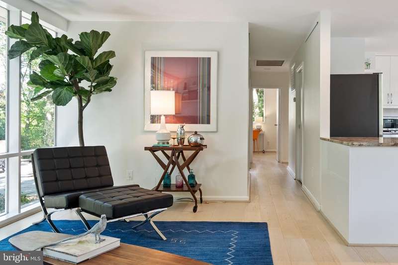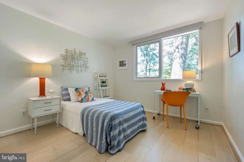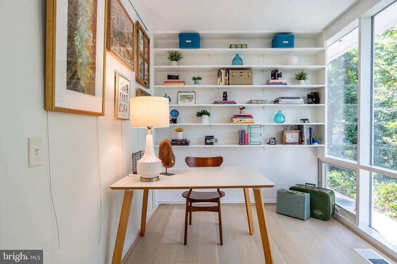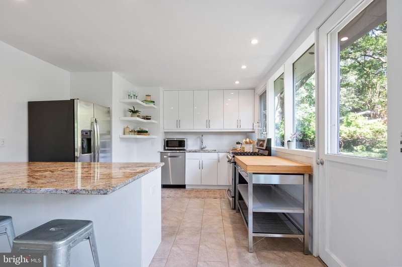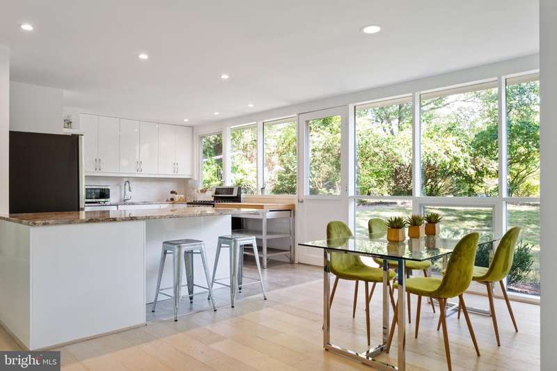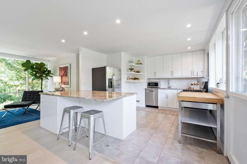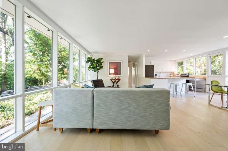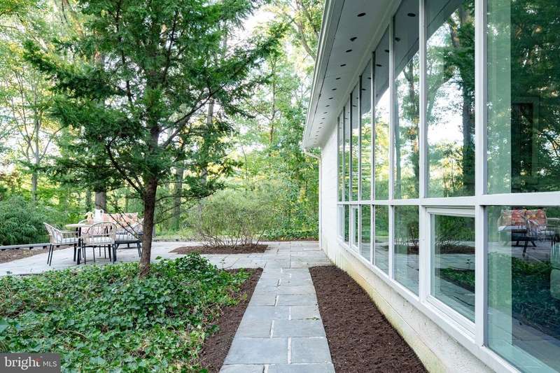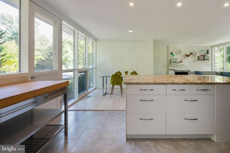 Renowned architect Charles Goodman designed this stunning one-level Mid-Century Modern home located in the highly sought-after Hollin Hills neighborhood. Situated on a premiere half-acre lot along desirable Marthas Road, this beautifully updated three-bedroom, one-bath residence offers both style and comfort. Extensive renovations were completed, including opening the kitchen walls to create a more open-concept layout, highlighted by a peninsula bar area with granite countertops, new cabinetry, stainless steel appliances, a pot filler over the range, floating shelves, custom tile work, and under-cabinet lighting. The laundry area was thoughtfully relocated to the hallway, featuring a stackable washer and dryer concealed by a convenient pocket door. Each of the three spacious bedrooms provides ample living space, with one featuring custom built-in bookshelves. The home boasts a large living room centered around a cozy wood-burning fireplace and a separate dining area perfect for entertaining. A major remodel in 2017 included the installation of double-pane windows throughout, a new roof, updated HVAC system, and wide-plank laminate wood flooring. Outdoor enhancements are equally impressive, with extensive hardscaping such as a stacked stone wall and steps at the front, slate pathways leading to a generous custom patio in the rear, and a recently added asphalt driveway that accommodates over three vehicles. Owned by the same family since 1953, it has been lovingly updated and maintained. With its blend of architectural charm and modern upgrades, this home also offers excellent potential for future expansion. Hollin Hills offers membership to 2 community pools as well as membership to a tennis and pickleball club. The scenic neighborhood boasts 7 parks, trails, an active Civic Association with seasonal celebrations, delicious super society and a friendly, close-knit environment. A commuter's dream location minutes from GW Parkway and trails, DC & the Pentagon; and south to Fort Belvoir, or north to Andrews AFB & Tysons Corner via I-495. This special address is an idyllic sanctuary to call home!