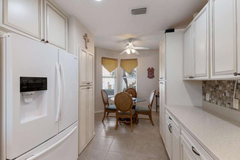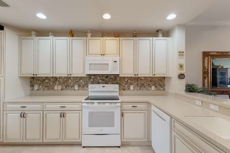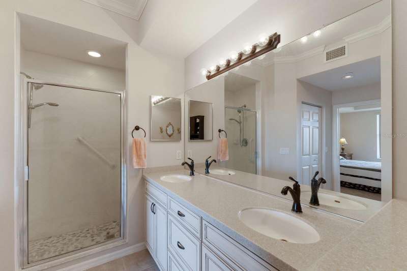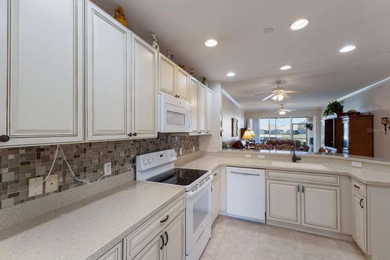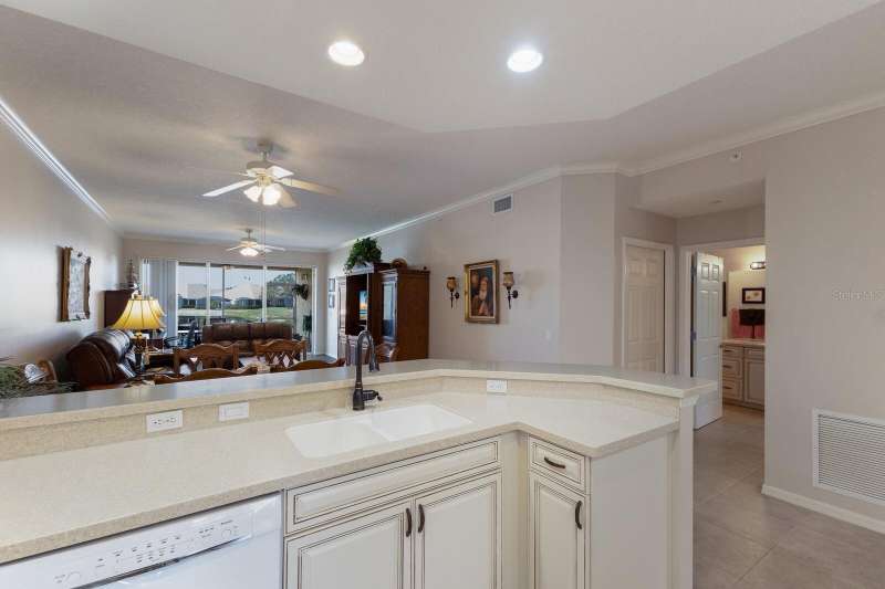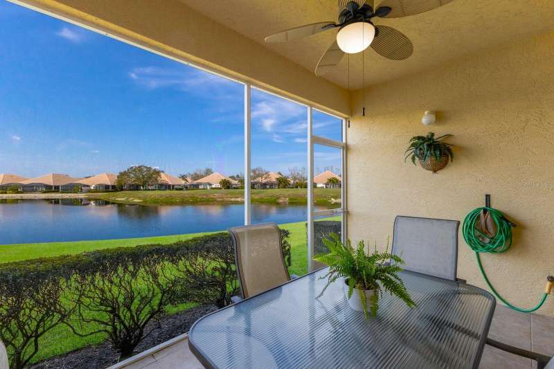 Stunning unobstructed views of water & golf course set the backdrop for this lovingly maintained 2/2, FIRST FLOOR condo in Boca Grove! Situated on the 17th hole of the award-winning designed Arnold Palmer Legacy Golf Course... You'll find the scenery spectacular with an abundance of beautiful Florida wildlife and nightly western sunsets from your screened lanai! This unit offers a great split floor-plan with a neutral palette. The spacious open kitchen was updated in 2017 with beautiful white wood 42in cabinetry, corian countertops, breakfast bar and a cozy eat-in nook. Just off the kitchen you'll find the living and dining areas with a wall of sliders which bring the tropical outdoors in. The primary bedroom boasts serene water views and leads to a large primary bath complete with updated dual vanity, a generous size walk-in shower and 2 walk-in closets! The guest bedroom at the front of the unit offers guests privacy all their own with a connected en-suite updated bath. Enjoy the ease of ceramic tile throughout and beautiful crown moldings as well. You'll love the maintenance-free aspect for easy living... lush landscaping and a 1 car garage perfect for parking and additional storage. HOA dues incl: trash, water, sewer, pest, internet & cable too! There is a heated community pool, spa and clubhouse nearby, offering year-round relaxation and great get-togethers with neighbors, organized by the Boca Grove social committee! If you are looking for the beauty of an established neighborhood with every convenience imaginable... You are in the right spot! Boca Grove is nestled behind the gates of the highly coveted Lakewood Ranch Golf & Country Club. A golf membership IS NOT required but there are Social, Athletic and Golf Memberships available should you want to join! It is just a short drive (5-10 min) to UTC, Lakewood Ranch Main Street, Waterside Place and the new Center Point Development! All offering upscale shopping, incredible restaurants, vibrant arts and year-round entertainment options for all! Also - enjoy easy access to I-75, top-notch healthcare, A-Rated schools and our award-winning area beaches. What are you waiting for!? BONUS of NEW ROOFS coming SOON for added peace of mind and VALUE!!