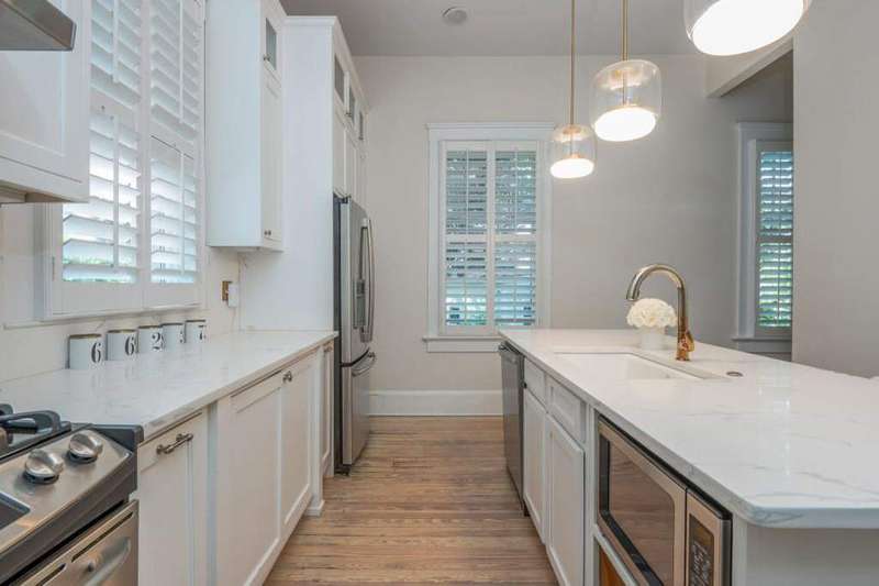 Classic Inman Park Bungalow conveniently located close to shopping, restaurants, etc. Covered front porch opens up into a large entry foyer. Original hardwood floors throughout, original pocket doors, windows and hardware. Gorgeous updated kitchen with stainless steel appliances, large kitchen island with stone countertops and windows overlooking expansive backyard. Kitchen and breakfast area lead to large rear deck perfect for entertaining. Very bright and spacious living room and dining room. Primary bedroom features a walk-in closet, primary bath with a large frameless shower and classic white subway tile. Secondary bedrooms being used as an office and secondary living room. Long driveway that leads to carport parking. **Available to lease furnished or unfurnished and with or without utilities included**
