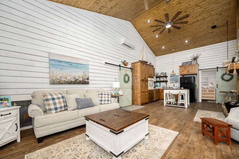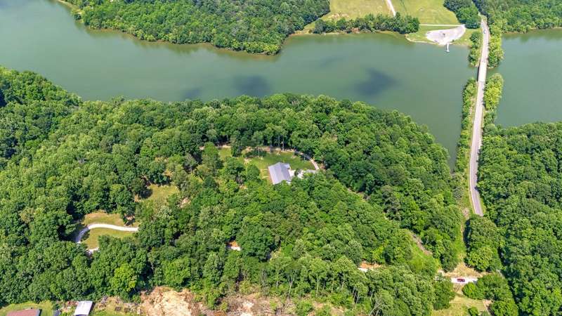 Discover a one-of-a-kind opportunity to own approx. 5.03 acres on a point track at Tims Ford Lake with spectacular lake views. Tract has been perked and building on property has 400amp service ready to power new residence. This rare lakefront property features multiple potential building sites, making it ideal for private estate, corporate retreat or future development. A custom-built Barndominum adds unique value, boasting a spacious 36' deep garage with 3 oversized bays- perfect for storing boats, vehicles or equipment and a 16'x80' covered back porch area ready to be finished. With direct access to the lake, this property is a dream for outdoor enthusiasts offering endless recreational possibilities right for your backyard. Serenity, space and potential awaits!!