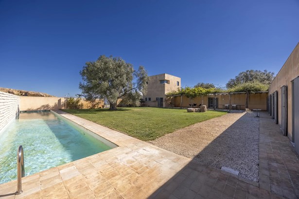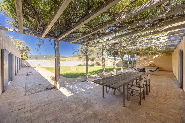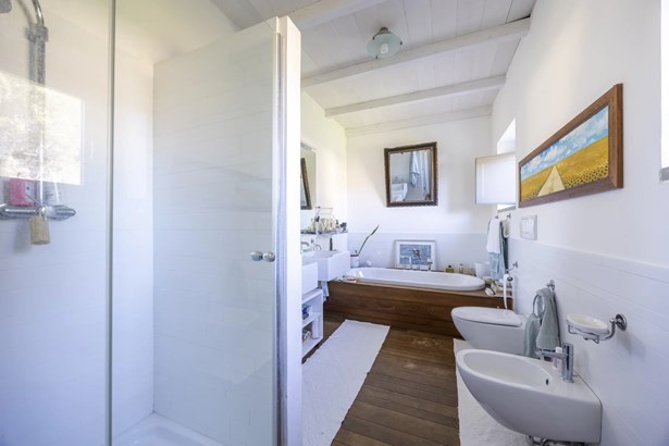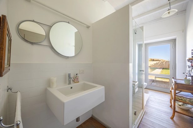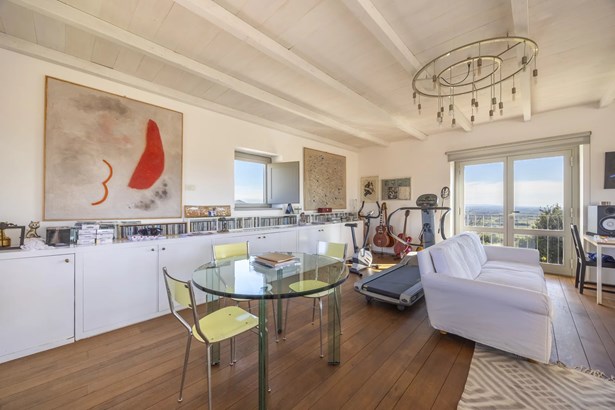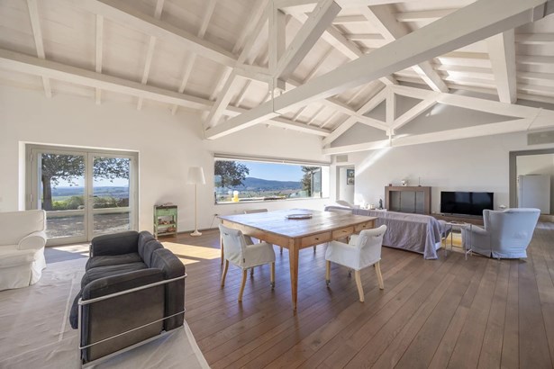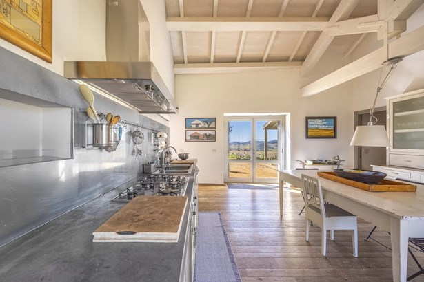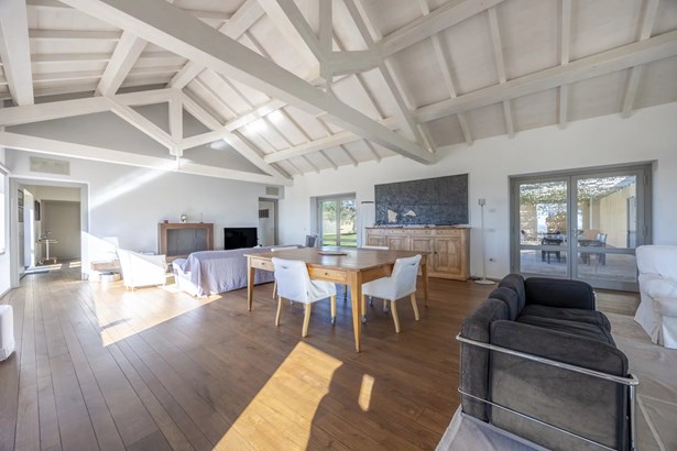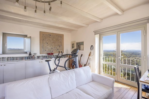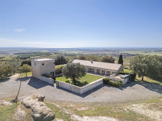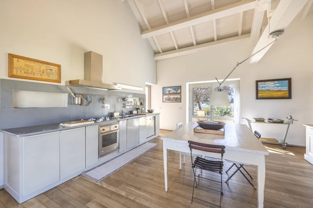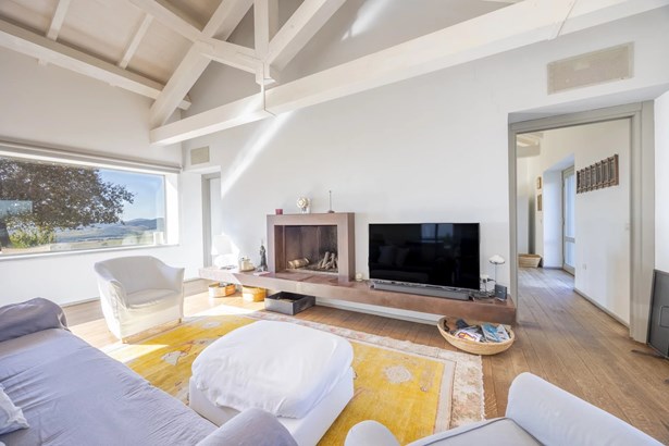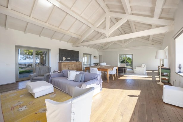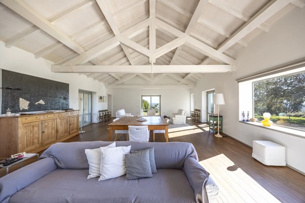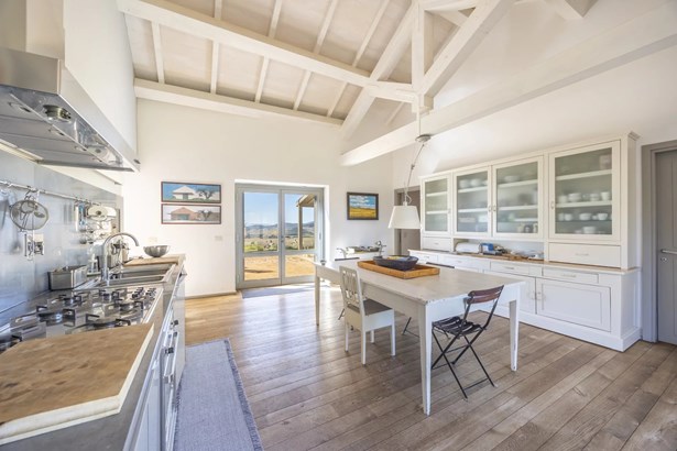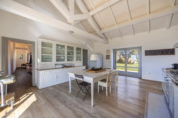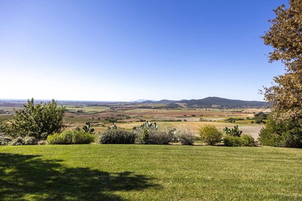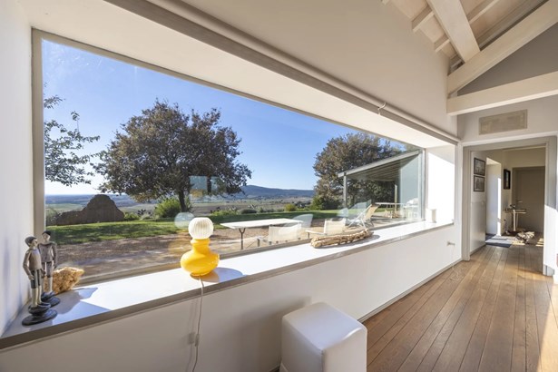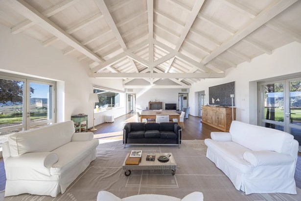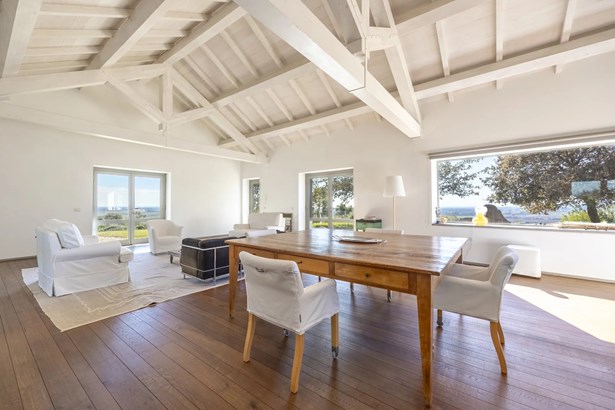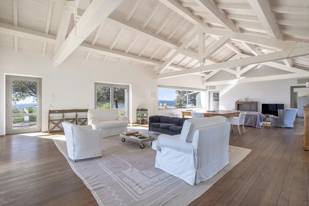 In one of the most authentic and unspoiled landscapes of Tuscany, among the gentle Maremma hills and just a few kilometers from Capalbio, stands this extraordinary villa, nestled within an enchanting olive grove. A residence that captivates with its dominant position, offering breathtaking views of the sea and the island of Giannutri: a panorama that changes color throughout the day, glowing fiery red at sunset.A haven of elegance and serenity, where every detail reflects perfect harmony between nature and architecture. The interior spaces blend harmoniously with the outdoors through pergolas and patios that extend the home’s living areas into the open air, creating a flawless continuity between inside and outside.Upon entering, a grand living room with trussed ceilings and large windows opening on three sides welcomes you with light and space. Here, the sitting area, fireplace corner, and dining area coexist in an atmosphere of refined conviviality. Adjacent lies the spacious eat-in kitchen with a large table—the beating heart of the house—inviting shared moments of taste and familiarity.From the living area, one accesses two extraordinary outdoor spaces: on one side, the panoramic garden with sea view; on the other, a private and scenic courtyard with pergola, swimming pool, and secluded garden—perfect for enjoying the Tuscan summer in total privacy.The elegant and functional sleeping area, includes a master suite with walk-in wardrobe and en-suite bathroom, two additional double bedrooms, a second bathroom, and a charming room in the tower ideal as a fourth bedroom or a study with a view. The two wings of the villa are connected by a bright glass hallway that could become a splendid library or art gallery.Built with high-quality materials and a contemporary taste that harmonizes beautifully with tradition, this property is a true gem of the Maremma—a place of the soul where the peace of the countryside meets the beauty of the sea.The property is accessed through a gate that opens onto a private driveway winding through the olive grove.An exclusive retreat for those seeking authenticity, nature, and timeless beauty.