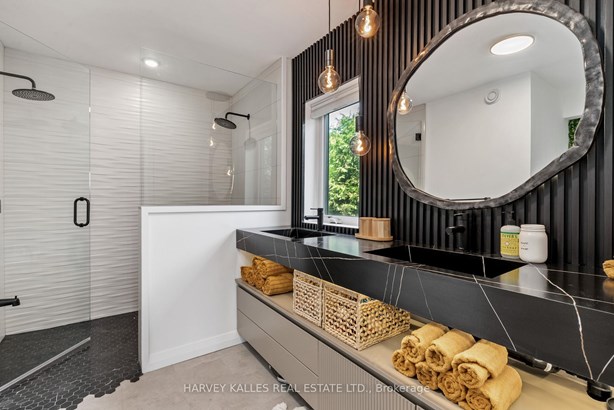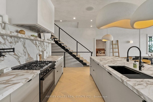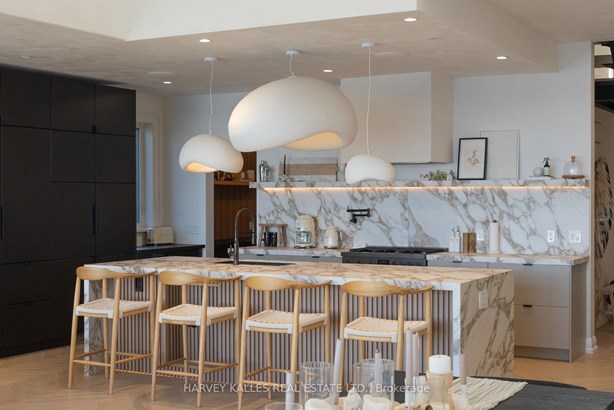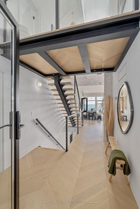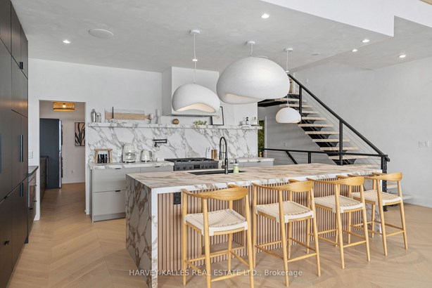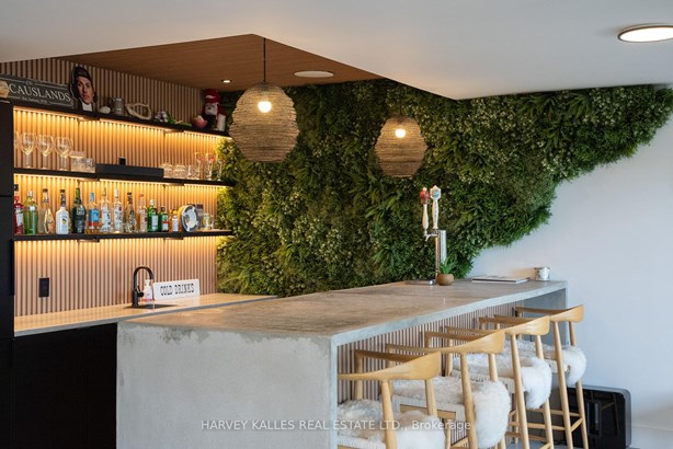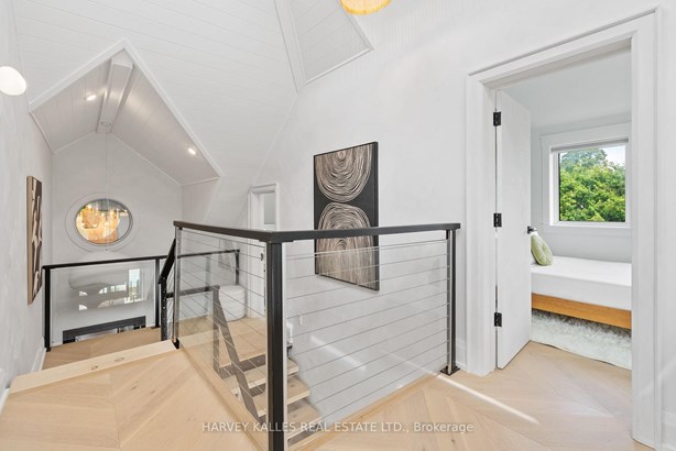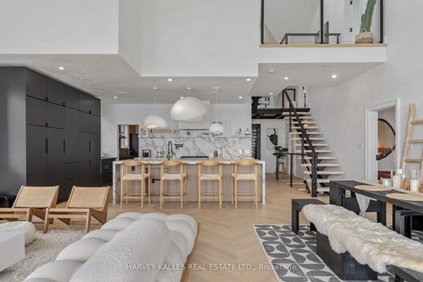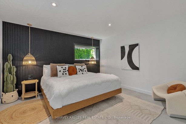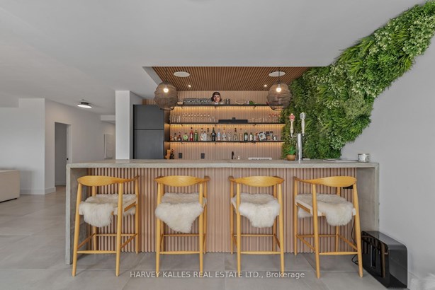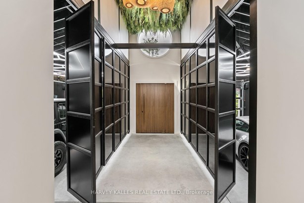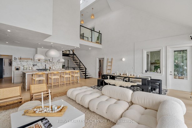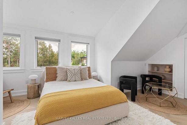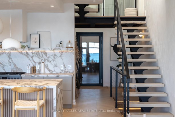 A rare architectural luxury waterfront residence blends concrete, glass, steel, and warm wood to create a one-of-a-kind Boho-modern retreat. Privately set off one of the finest sought after lakefront streets in Innisfil on Lake Simcoe, the home opens with a grand custom wood entry door into a dramatic space with polished concrete floors and soaring 20-foot ceilings layered in custom hung chandeliers. Walls of floor-to-ceiling glass and accordion-style doors blur the line between indoors and out, flooding the home with natural light and showcasing unobstructed lake views.A floating wood staircase /glass railings and custom finishes throughout reinforce the homes refined modern aesthetic. The gourmet kitchen is a showpiece with bespoke cabinetry, a large waterfall centre island, full service butlers pantry, and designer lighting. The expansive great room, with vaulted ceilings and statement fireplace, serves as the heart of the home framed by wall to wall south-facing windows capturing a panoramic lake view. Resort-style outdoor living is second to none. A two-story screened-in porch with glass, walk out to terrace lead to tiered entertainment spaces: a sun deck, custom wrought-iron stairway, built-in wood fire pit, hot tub, covered lounge areas, boathouse and putting green. Flagstone steps provide a gentle slope to the waters edge for seamless lake access.The lower level was designed for entertaining, featuring a recreation room with bespoke paneling, a backlit glass staircase, spa-inspired bath, and a concrete sit-up bar. With five bedrooms and multiple living and lounging areas, this property offers unparalleled space for family and guests.A truly rare offering modern design, resort amenities, and a world-class waterfront lifestyle converge in this extraordinary estate. ONE OF A KIND SHOWS A 10!