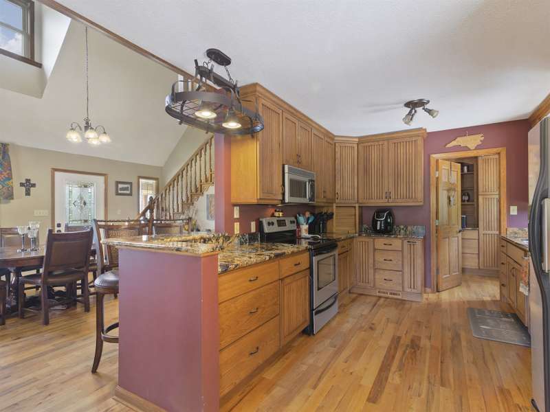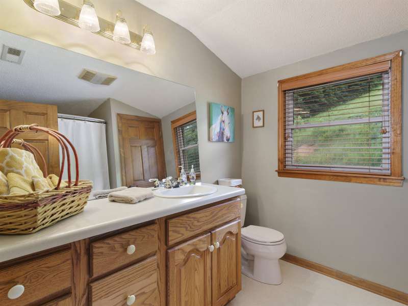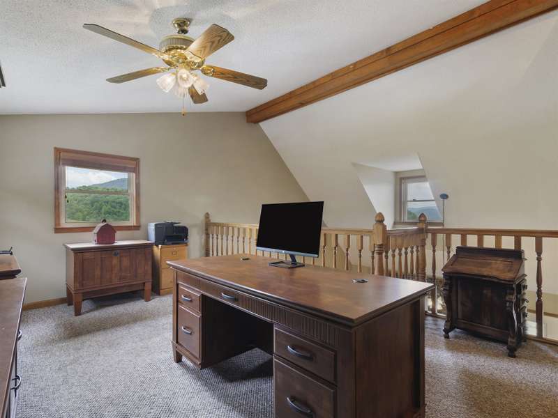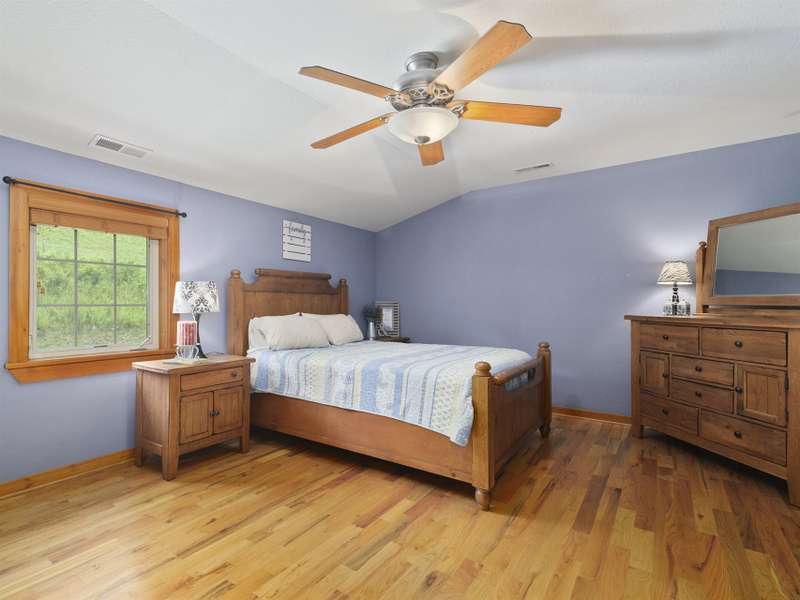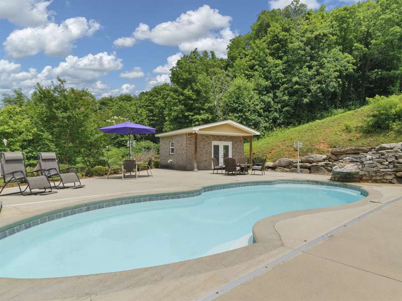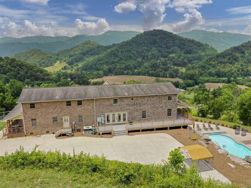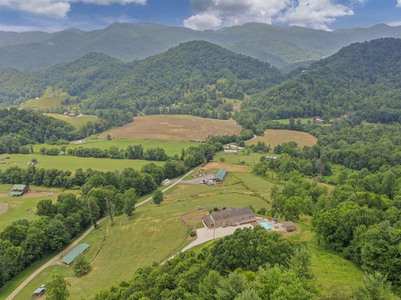 Atop 56+ picturesque acres in Fines Creek, this expansive estate offers unparalleled amenities. Boasting long-range views, an in-ground saltwater pool w/a cascading waterfall, an outdoor firepit, fenced pastures, a 3-bay detached garage w/a tractor shed, & private trails leading to a nearby creek, the property truly has it all. The traditional brick home was vastly expanded in 2007, featuring a grand foyer, a 2-story great room w/vaulted ceilings & a beautiful fireplace, a primary suite w/a gas fireplace, a bay window, a granite double vanity, a jetted tub, & a large walk-in shower, as well as 2 large BR suites on the upper level & an updated laundry room. The original section boasts 1 BR/1 bath on the main level, + a bonus room & bath upstairs, a dining room w/vaulted ceilings, a loft, and a kitchen equipped w/granite countertops, like-new appliances, a wine cooler, and a walk-in pantry. The fully-finished basement w/a full bath and a rec room flows effortlessly out to the pool deck.