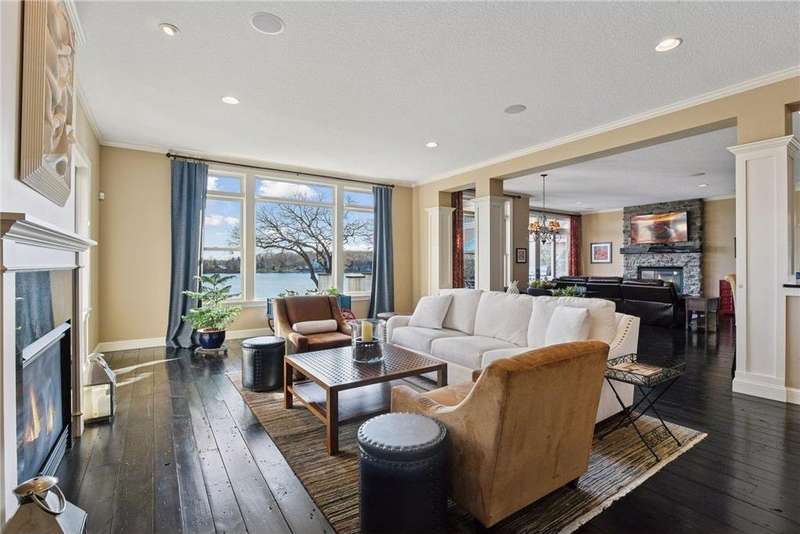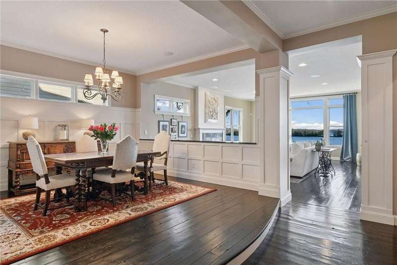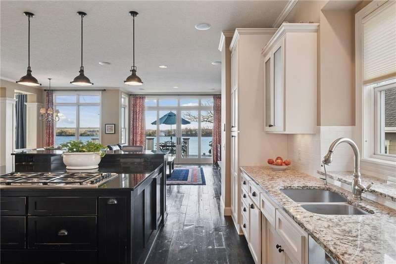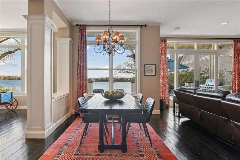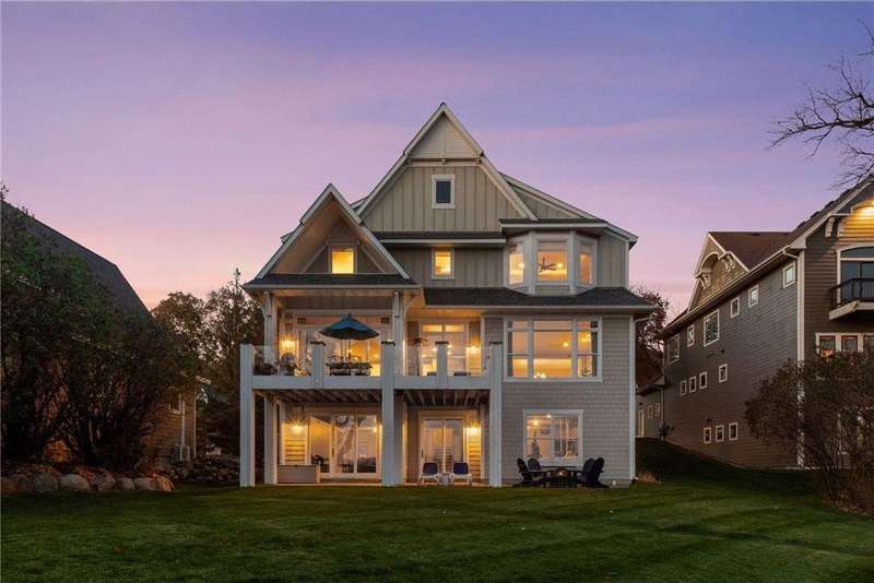 Discover timeless craftsmanship & modern luxury in this stunning custom-built Lake Minnetonka home featuring 95 feet of premier lakeshore and sweeping panoramic views. Designed for entertaining & everyday living, this home offers both formal & informal spaces that flow effortlessly throughout. At the heart of the home, a chef’s dream kitchen features professional-grade appliances, a butler’s pantry with an additional oven & oversized dishwasher, and a separate wet bar perfect for hosting gatherings large or small. The home’s rich character shines through in details like 150-year-old wide-plank white pine flooring/ fireplace mantle, and impeccable details & millwork. The spacious primary suite is a true retreat, offering serene lake views, a spa-like bathroom, and a massive walk-in closet with a secret room. Four additional bedrooms and a flex/amusement room provide comfort and flexibility for family and guests. You’ll love the convenient laundry on the upper level with additional laundry in the lower level. The partially finished lower level (with 10ft ceilings) is an entertainer’s paradise, boasting a cozy pub complete w/gas fireplace, a full wet bar, and an impressive 900-bottle wine room. A large laundry room is also located on this level, perfect for storing lake towels and suits. The large unfinished area offers endless potential - create an amusement room, fitness space, golf simulator, guest bedroom, or anything you envision. Plumbed for another wet bar and ensuite bathroom. With its thoughtful design, one-of-a-kind finishes, and breathtaking lakeshore setting, this home perfectly embodies the best of Lake Minnetonka living. Dock and jet ski lift included in sale.