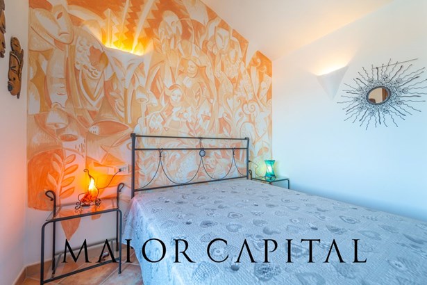 On the upper floor is the sleeping area, consisting of two spacious double bedrooms: the master bedroom with en suite bathroom and built-in wardrobe, and a second bedroom served by a full bathroom. The first floor also enjoys a splendid view of the sea, which makes the room bright and always a star.