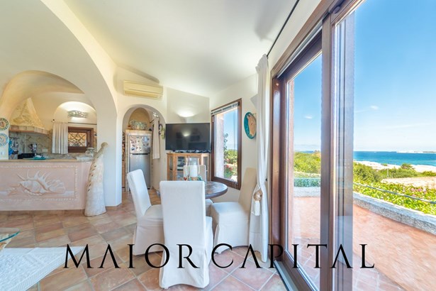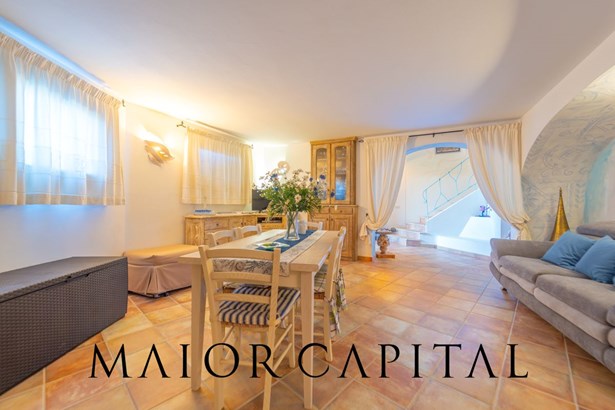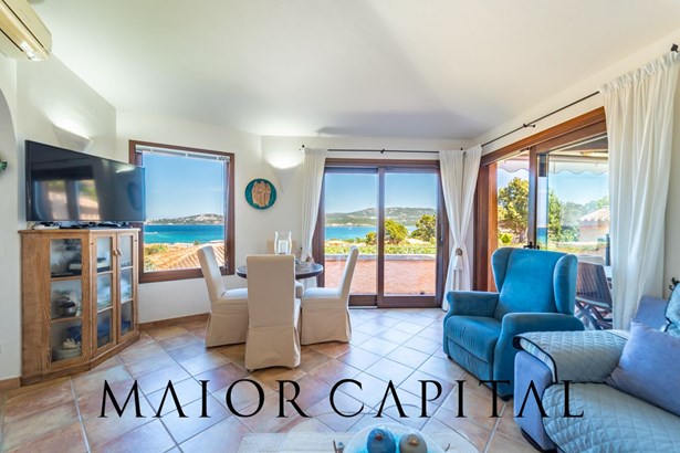 The main entrance opens onto a bright living room with large windows offering panoramic views of the sea, a secluded kitchen, well separated from the living room, and a continuum with a covered veranda, perfect for al fresco dining or enjoying the sea breeze in total tranquillity.