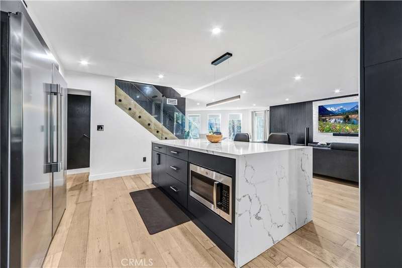 Welcome to a Fully Furnished stunning modern architectural home perched above it all—offering panoramic views of downtown Los Angeles and surrounding mountains. This ultra-private oasis sits on a tree-lined street just minutes from Universal Studios, the Hollywood Bowl, and the heart of LA. Inside, the light-filled open-concept layout flows seamlessly from the upscale double-door entry into the living room, formal dining area, and a fully remodeled chef’s kitchen—featuring custom cabinetry, quartz countertops, premium stainless steel appliances, and a generous center island perfect for both meal prep and entertaining.Every bathroom has been fully remodeled with a designer’s touch. Luxurious spa-like finishes include floating vanities, steam showers, deep soaking tubs, and top-tier fixtures throughout. The first-floor guest bath includes a sleek, glass-enclosed shower, while each upstairs master suite boasts its own elegant ensuite bathroom and walk-in closet.Downstairs, the fully finished lower level is a showstopper—ideal for a home movie theater, sound studio, or wine cellar. Flexible enough to suit creative professionals, audiophiles, or families looking for premium bonus space. Step outside to enjoy an oversized lot with multiple outdoor living areas, including a built-in BBQ island, fire pit, and ample seating for dining al fresco or entertaining under the star.Recently remodeled with new flooring, top-to-bottom interior paint, and all-new energy-efficient LED recessed lighting. This home strikes the perfect balance between upscale comfort and modern sophistication—ideal for both private family living and stylish entertaining. Let me know if you’d like a shorter version or a bullet-point version for flyers or listings!