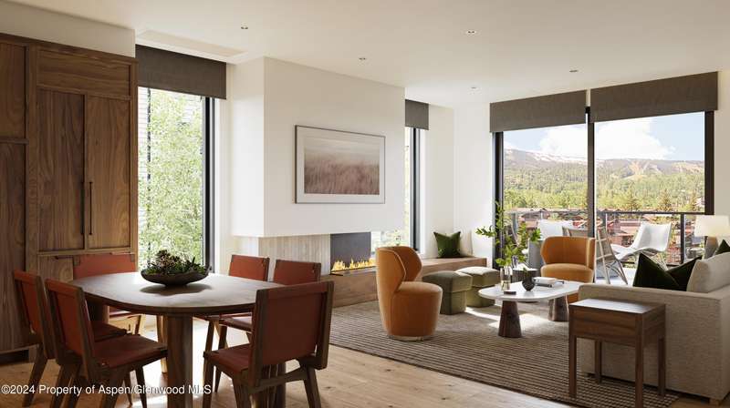 Introducing the final residential collection in Snowmass Base Village! With three distinct residence types - RESIDENCES, CLOUDSTONES and SKY CABINS - Stratos provides a slope-side home for every mountain lifestyle. The Residences include the largest selection of the three Stratos offerings through a mix of 2, 3 and 4 bedroom floor plans. Designed with a wide variety of sizes, distinctive features and prices, these homes showcase maximum choice. Residence 518 is a new residence on the park side of Stratos, facing the recently completed Village Pool. Located in the West Building, this residence is a corner unit with a balcony. Large, operable sliding glass and gracious windows bring in natural light and fresh mountain air, while constant natural ventilation provides exceptional indoor air quality. Single-level living features an open-concept great room, a private primary bedroom suite with a 4-fixture bathroom, and a thoughtfully designed secondary bedroom and shared spaces. All residences feature refined interiors with a choice of two sophisticated finish palettes; each showcases beautiful natural wood tones, quartz countertops, porcelain and ceramic tiles, and decorative lighting accentuated with a selection of optional enhancements. A beautiful dine-in kitchen is punctuated with Bosch appliances, and bathrooms are accented with artisanal-quality Waterworks plumbing fixtures. Includes a revolutionary Opti-myst Pro linear fireplace, an incredibly precise induction cooktop, efficient windows, and hydronic heating and cooling. A stacked washer/dryer is also included. The signature Stow & Go program includes convenient lockable storage cabinets within each residence, as well as in-building ski and bike storage and a separate owner storage area. Priority reservations to purchase begin January 30, 2025 at Noon MT.