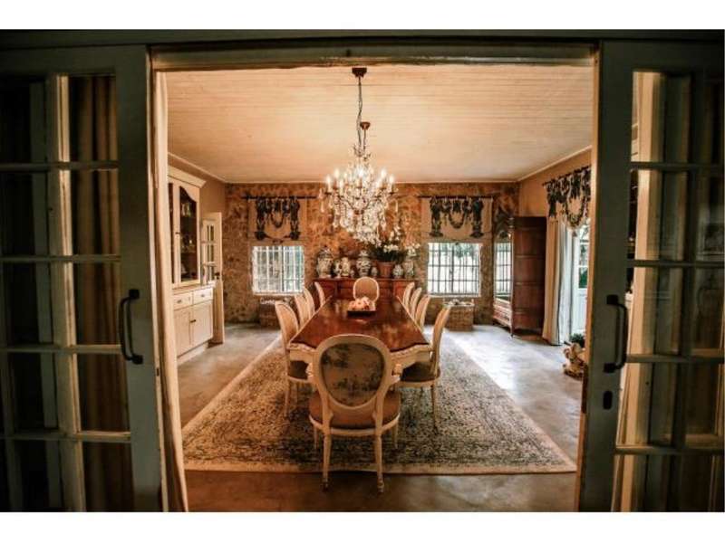 BREATHTAKING FULLY FURNISHED FRENCH CHATEAU IN RIVER VIEW ESTATE FOR SALE This enchanting French Chateau is nestled in the picturesque River View Estate, where dreams come to life and the essence of France fills the air. As you pass through the majestic gates, a world of grandeur and luxury unfolds before your eyes, transporting you to the idyllic village of Santenay or the sprawling vineyards of the Loire Valley. Every detail of this breathtaking estate has been meticulously crafted to evoke an authentic rustic charm, seamlessly blending antique materials, ivy-covered stone walls, terracotta roof tiles, and charming window shutters. The sight of large rounded arches with intricate wooden doors invites you into a realm of beauty and tranquility. A harmonious colour palette of soothing neutrals and peaceful pastels adorns the facade, creating an atmosphere of timeless elegance. Step inside, and the interior reveals an expanse of spacious splendour. The open living spaces and bedrooms beckon you to unwind and indulge in the epitome of comfort. Underfoot, cement wash floors exude a cool serenity, while stone-covered fireplaces emanate warmth and a cozy ambiance. Bulky wooden features and ornate chandeliers add a touch of opulence, and large doors gracefully lead to a delightful veranda overlooking a picturesque vineyard, where you can bask in the breathtaking beauty of nature. Each room within the chateau has been thoughtfully designed with love and passion, ensuring a truly immersive experience. The tastefully decorated kitchen is a testament to artistry, adorned with unique and antique features. A separate laundry, scullery, and pantry cater to your every need, while an inviting outside vegetable garden provides a touch of culinary charm. The family room, with its generous proportions, becomes the heart of the home, boasting a central fireplace that radiates a warm and inviting atmosphere. An exquisite formal dining room awaits, capable of hosting lavish gatherings for a large number of guests. Stylish cupboards line the walls, and a door opens to reveal a tranquil fountain, creating a serene ambiance. The formal lounge, a grand double-volume space, captivates with its impressive fireplace and voluminous shelves, exuding elegance and refinement. As you ascend to the main bedroom, you are greeted by a spacious and delightful retreat. Cement and stone walls envelop the room, and a cozy fireplace awaits, perfect for snuggling up during winter evenings. The en-suite bathroom is an awe-inspiring sanctuary, boasting a freestanding bath, his and hers basins, and a large shower, a true haven of relaxation. Three additional bedrooms and two beautifully adorned bathrooms continue the decorative delight and French touch that pervades every corner of the house. A study or home office provides a quiet space for contemplation or productive work. Additionally, an enormous cellar with a separate kitchen and lavatory facilities, as well as a large barn, stands ready to host extraordinary events, whether it be enchanting weddings or memorable functions that will leave guests spellbound. Outside, the chateau's gardens are a haven of tranquility and beauty. Fountains dance harmoniously, lush pergolas create intimate spaces for reflection, and countless serene features beckon you to explore. A spacious outside entertainment area complete with a built-in braai and inviting swimming pool offers the perfect setting for gatherings and leisurely afternoons. As you bid farewell to this extraordinary French Chateau, a whisper in the breeze catches your ear, "Je suis amoureux!" ("I'm in love!"). It echoes your sentiments precisely, for this enchanting estate has woven its magic around your heart, leaving an indelible impression and a longing to return to its irresistible?áembrace.