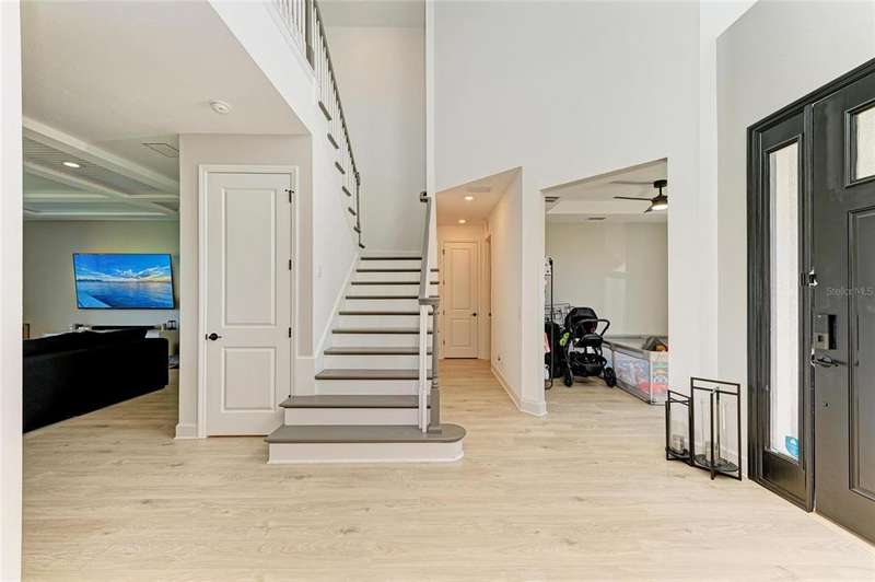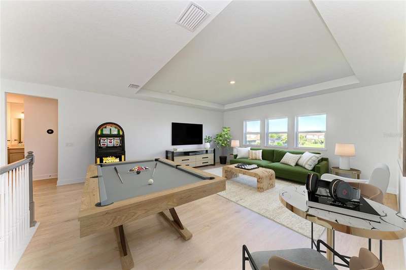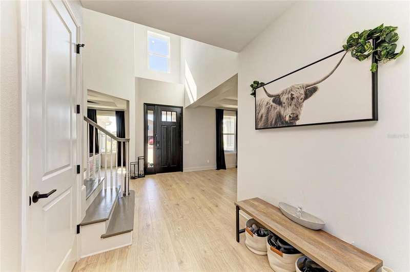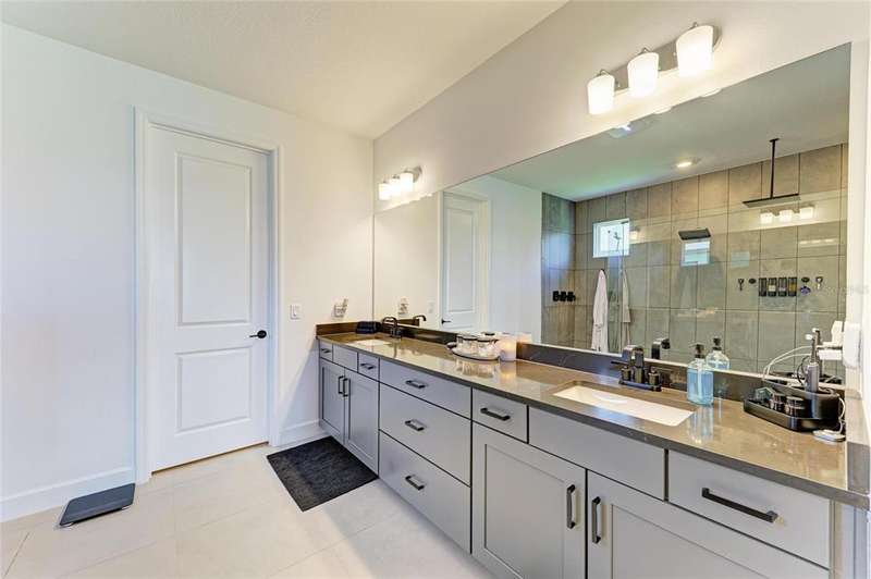 Welcome home to this ABSOLUTELY STUNNING dream home quietly nestled on a breathtaking lake view in the heart of Lakewood Ranch. One of the most sought after models in the area, this Sand Key offers some amazing features and upgrades!!!Step into luxury living in this spacious 5-bedroom, 4.5-bathroom home located in the desirable Park East at Azario, Lakewood Ranch. This stunning two-story residence features the primary bedroom conveniently situated on the ground floor, offering a private retreat. The home boasts elegant luxury vinyl flooring throughout, creating a seamless flow and modern aesthetic. This modern sleek home has been upgraded from head to toe. Featuring a gorgeous chefs gourmet kitchen with beautiful stone countertops and matte black appliances. Enjoy breathtaking views of the lake as you enjoy your morning coffee out in your extended lanai. No expense spared with this model home! Whole house water filtration provides you with some of the cleanest water on the planet!! A courtyard driveway is wrapped around an oversized 3-car garage and complete with a custom epoxy floor that's sure to make any car enthusiast want this one!!. Ceiling fans throughout, smart blinds and pre wired ethernet make this one of the smartest homes on the block!!As a resident of the Number 1 best-selling multigenerational community in the country, you will have access to a wealth of incredible amenities, including a refreshing pool & spa, sand volleyball court, basketball court, a spacious dog park, and a playground. Spend your weekends on the corn hole lawn or the sports field.Lakewood Ranch is perfectly situated near a variety of world-class shopping, dining, and entertainment options. You will be just moments away from Lakewood Main Street, University Town Center, and the vibrant downtown Sarasota. With easy access to I-75, beautiful Gulf Coast beaches, top-rated schools, and medical facilities, this home offers the perfect blend of luxury, convenience, and community. Don't miss the opportunity to own this exceptional residence that truly embodies the best of Florida living! One or more photos virtually staged for ideas.