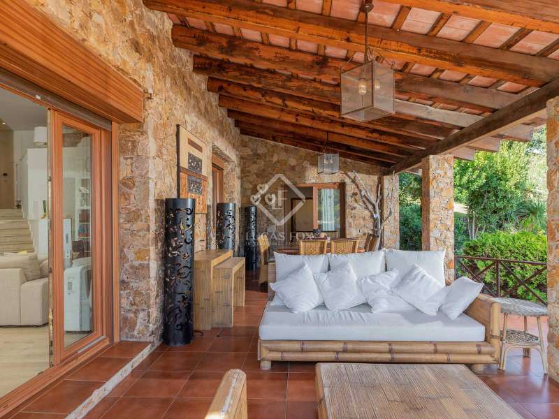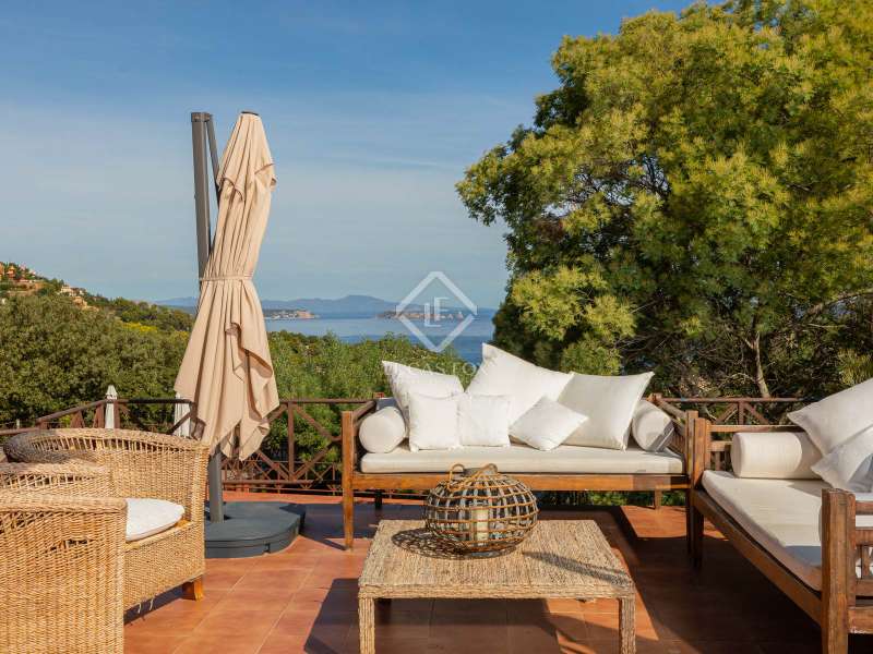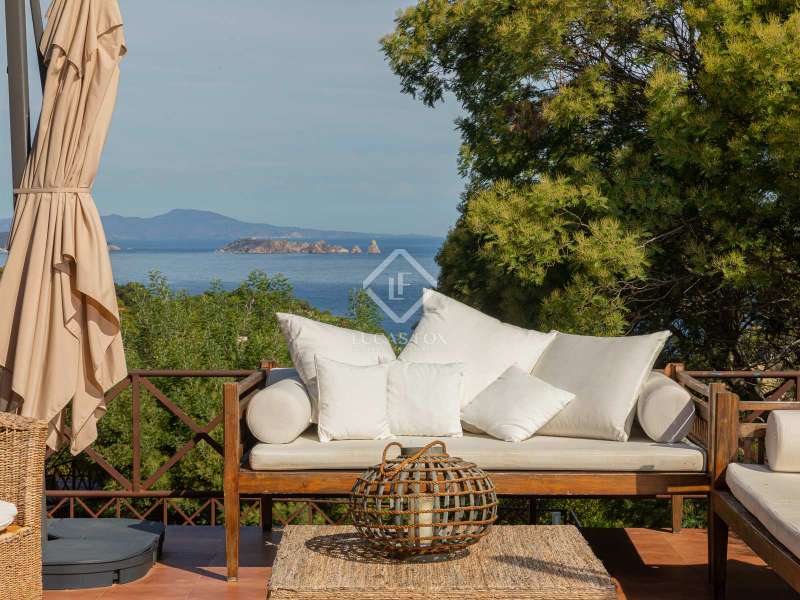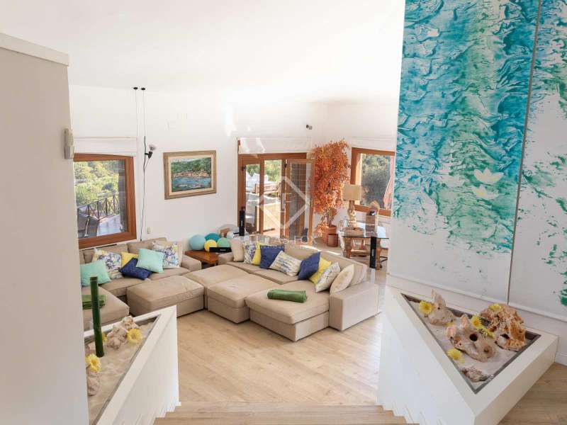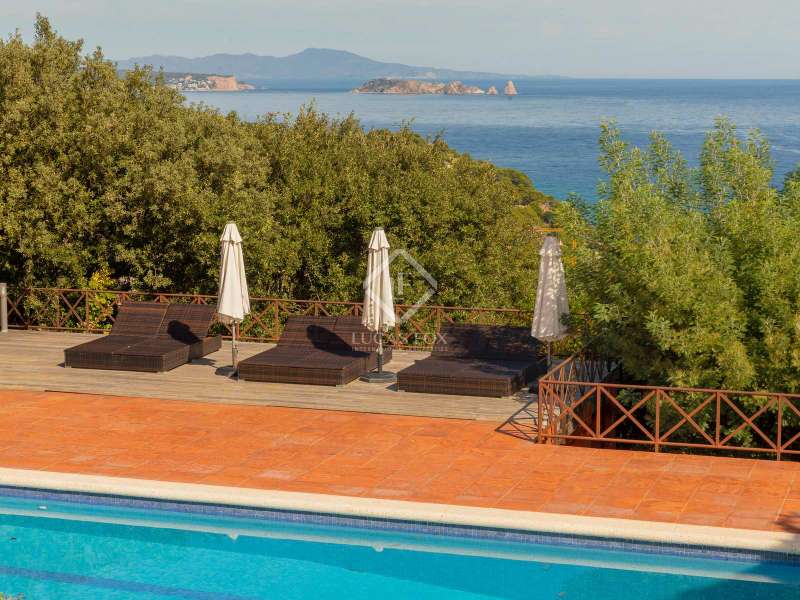 Just 2 km from the beach of Sa Riera and 800 metres from the magnificent historic centre of Begur, we find this magnificent property built in 1980 in the heart of a pretty wooded park. The villa offers exceptional views of the sea, the Medes Islands and Cap de Creus. Thanks to its large garden, it also offers its occupants a lot of peace and privacy. The property consists of two separate buildings: The main house where we find a large fully equipped kitchen with access to the garden and a terrace which is used for lunch, a large dining room and a living room with a fireplace which opens directly onto a magnificent porch with dining room, sitting area, a barbecue area, a gymnasium and a separate bedroom. The night part of the main house consists of 4 double bedrooms with private bathrooms. In the basement of the house, we find a large garage for two cars. Next to the main house is the guest house which consists of 6 double bedrooms, 3 bathrooms and a pleasant living room-kitchen with access to a sunny terrace. This home has its own two-car garage as well. The property benefits from a magnificent lush garden in which there is a large 5 x 12 saltwater swimming pool and a jacuzzi. For the greater comfort of the residents, the villa has air conditioning in most rooms, heating and an alarm with motion detectors. A few minutes from the house, we find all the services and some of the best restaurants in the area. Contact us for more information about this unique and impressive villa on the Costa Brava.