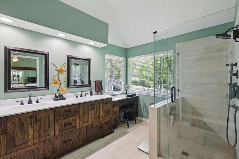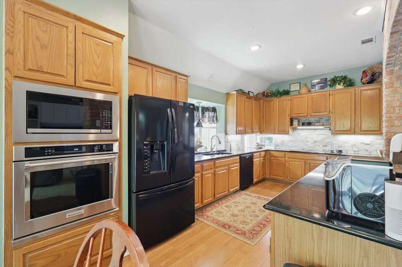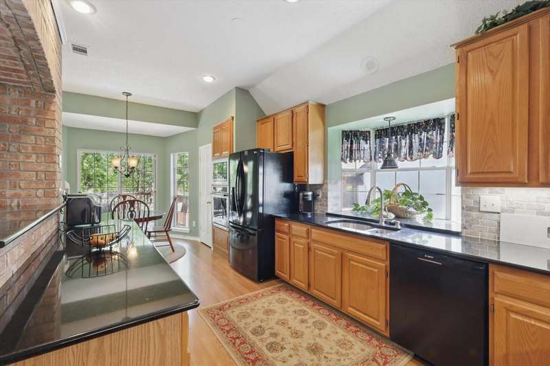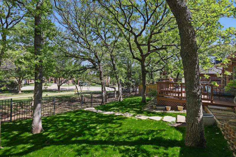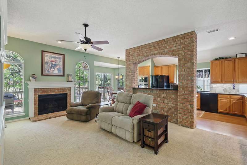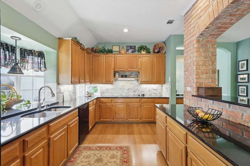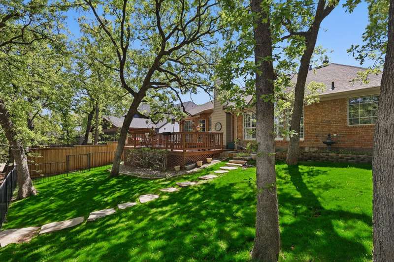Motivated Seller is willing to negotiate buy down with acceptable offer!! NICE DRIVE UP ON THIS HIGHLAND SHORES ONE STORY THAT BACKS TO THE JOGGING TRAILS! Enter to the combo formals with large windows and lots of light. The kitchen is open to the nook and family room with a remote start fireplace and has a lot of cabinets with pull-outs, granite and pretty backsplash. Newer appliances, a brick accent wall and a dry bar with pass-through to formal dining also make nice extras. The Primary suite features a nice-sized bedroom and walk-in closet, and a remodeled bath with an oversized shower and a built-in area that is great for sitting for makeup and hair. There are three more bedrooms and one has been converted into a home office with a beautiful wall of cabinets and shelves. The backyard has a large deck, trees and backs to the jogging trails. HIGHLAND SHORES AMENITIES AND NEAR LOTS OF ACTIVITIES AND, SHOPPING, AND THE LAKE!!