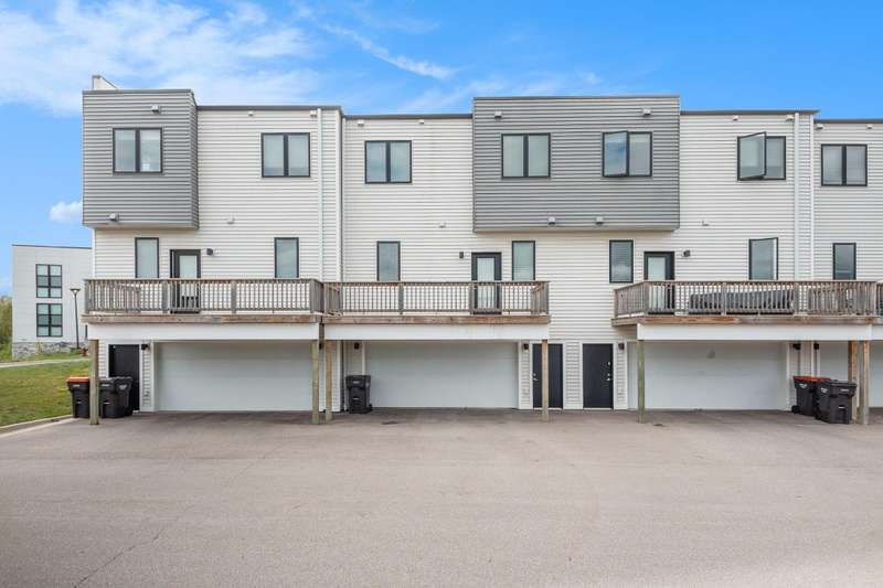 Chic and contemporary townhome with a prime location in Caledonia Schools. This stunning residence offers over 1500 SF of finished living space in an open-concept design, 9ft ceilings on the main floor, and floor-to-ceiling windows that flood the space with natural light, highlighting the sleek, modern finishes throughout. Experience the spacious living area, dining area, and open-concept kitchen with LVP floors, quartz counters, subway tile backsplash, and stainless steel appliances. The primary ensuite bathroom offers a tiled shower, a double-sink vanity, and an upgraded walk-in closet. Two additional bedrooms, a full bath, and additional laundry on the upper level. Ample additional storage, a secondary laundry space, and an oversized two-car garage on the lower level. Other extras include a large back deck, a covered front porch, extra guest parking, central A/C, low HOA dues of only $250 per month, and more. The location provides easy access to shopping, dining, the Gerald R Ford International Airport, highways, and other area amenities. This Port View Townhome offers the perfect blend of style and convenience. Don't miss the opportunity to make this exquisite property your new home!