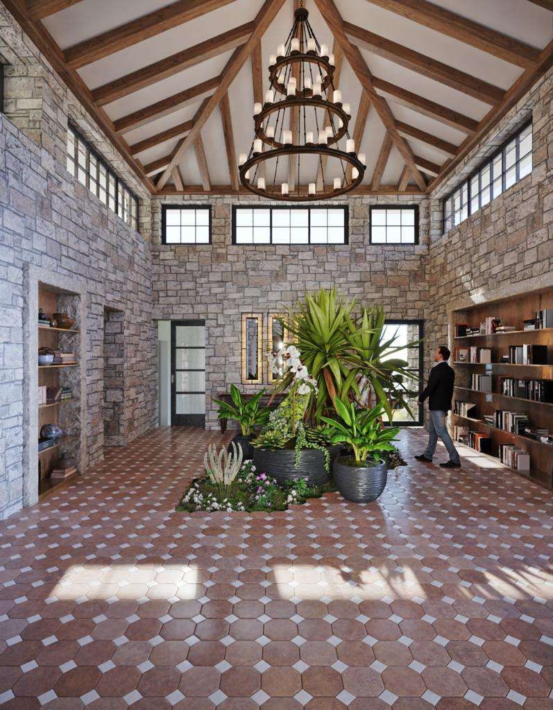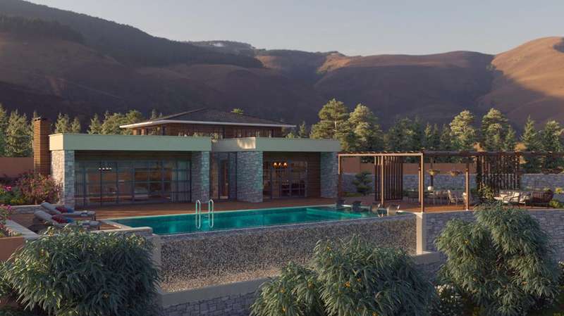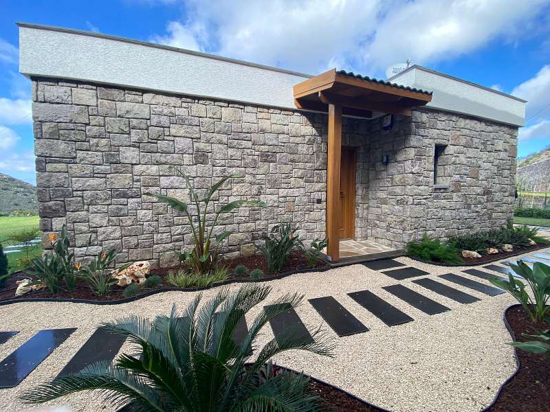 The detached houses with smart home systems and guest houses are coated with natural stone. The main buildings are 315 sqm, and the guest houses are 92 sqm. The main houses and guest houses are equipped with a built-in set, VRF air-conditioning system, underfloor heating, fireplace, 90 sqm private pool, electric vehicle charge station, and night lights.