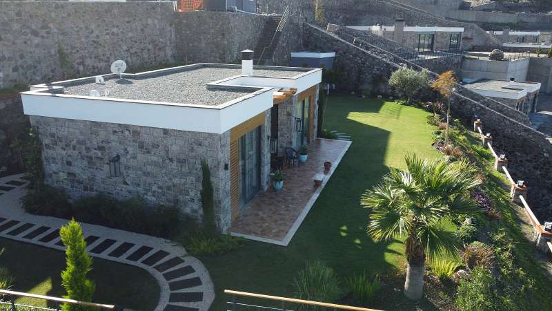 The detached houses for sale in Bodrum Turkey are located 2,5 km from D-Marina, 13 km from Bodrum State Hospital, 18 km from Yalikavak Marina, 19 km from the center of Bodrum, 20 km from the World Wonder of Mausoleum at Halicarnassus, and 55 km from Bodrum Airport.