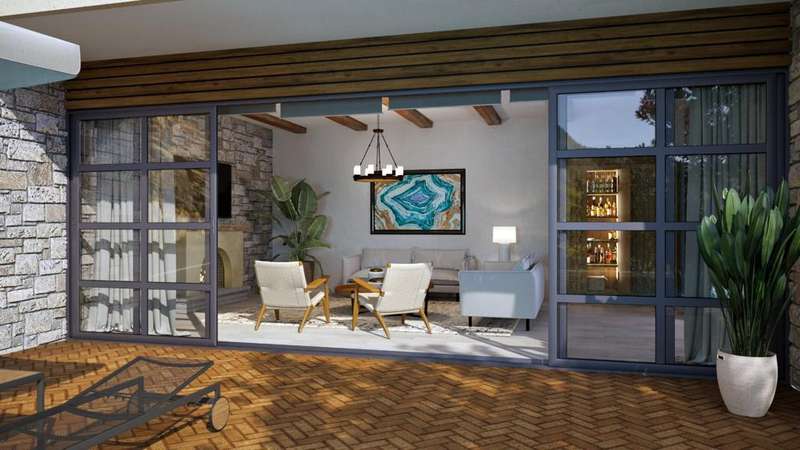 The detached houses consist of 3 bedrooms, 2 living rooms, and 4 bathrooms. The guest houses consist of a bedroom, a living room, and 2 bathrooms.