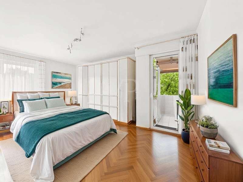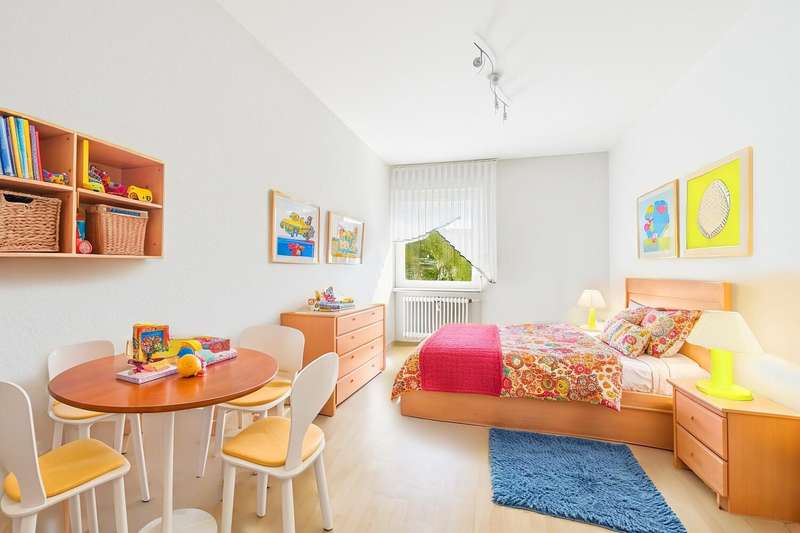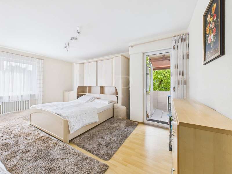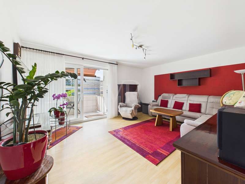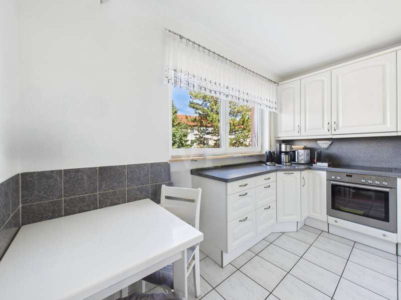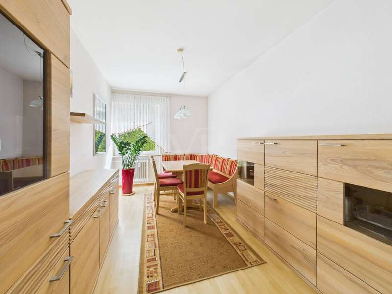 This charming 4-room apartment impresses with its spacious layout, bright living atmosphere and a sunny balcony that invites you to relax. It is located on the second floor of a well-kept apartment building dating back to 1965 and offers around 90 m² of living space, making it ideal for couples and families looking for a comfortable home with plenty of potential. The heart of the apartment is the light-flooded living room, which offers a variety of furnishing options thanks to its pleasant size. From here, as well as directly from the master bedroom, you can access the approximately 7 m² balcony, which offers a lovely space for cozy hours outdoors. Adjacent is the dining room, which can also be used as a children's room or study - depending on your individual requirements. There are also 2 further bedrooms, which are ideal for use as parents' and children's rooms. The kitchen is equipped with a well-maintained fitted kitchen that was installed in 2006 and is included in the purchase price. The bathroom dates from the 1990s and is equipped with a bathtub, and there is also a separate guest WC. A practical utility room with a water connection rounds off the space on offer. The apartment impresses with its well-kept furnishings: tiled and laminate floors, elegant glass doors from 2012 and large windows, which were renewed in 2004 and provide plenty of natural light. Regular technical investments have also been made: The heating system was renewed in 2001 and the roof was renovated in 2008. Anyone looking for a bright, spacious apartment in a quiet location will find a new home here with plenty of feel-good character and space for the whole family.
