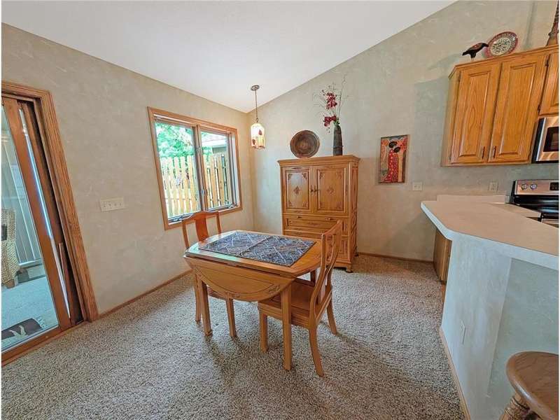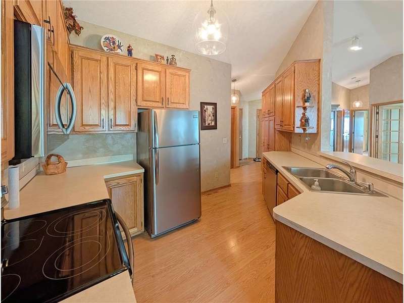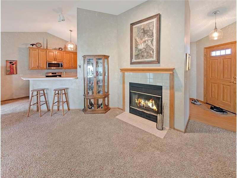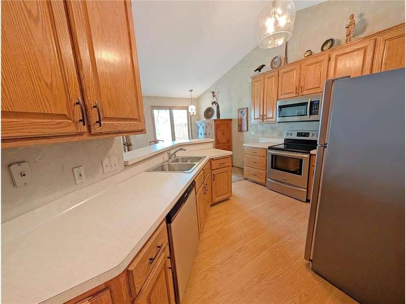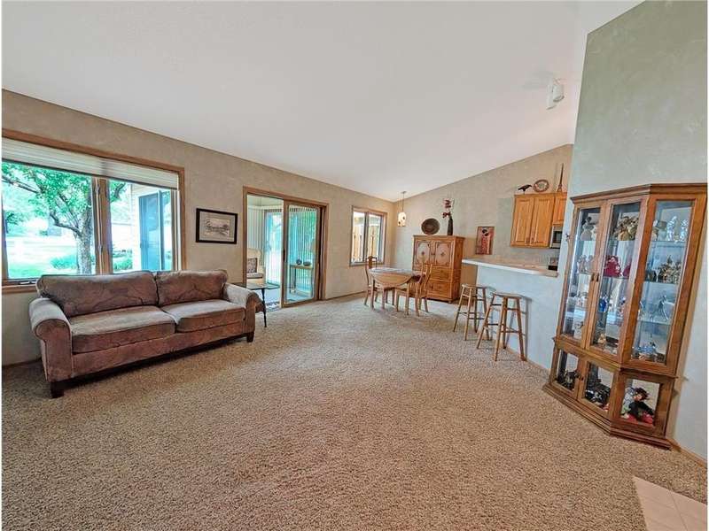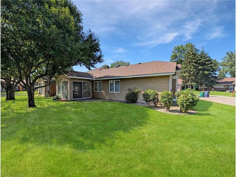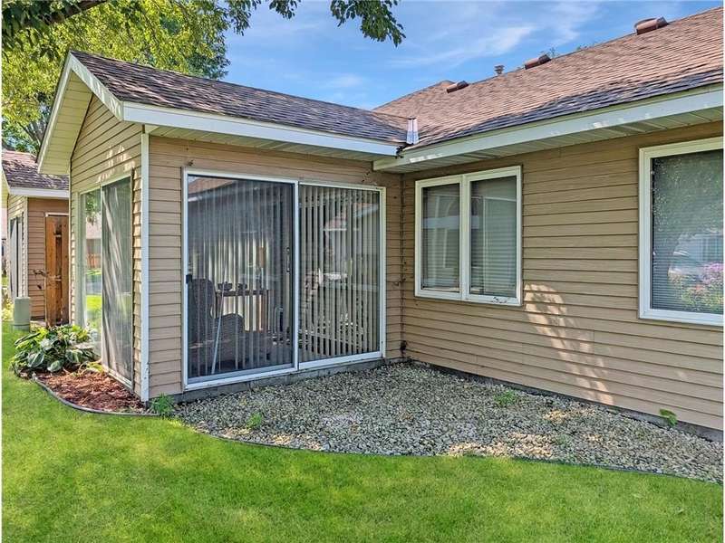 Welcome Home to this charming one-level townhome, designed for comfort and convenience with no stairs inside or out. The open floor plan features vaulted ceilings and a spacious peninsula kitchen with generous cabinetry and counter space, flowing seamlessly into the living and dining areas. The primary suite offers a large walk-in closet and private ¾ bath, while the second bedroom is perfect for a guest room, office, or hobby space. Additional highlights include ceramic tile flooring, a large pantry wall, and a grab bar in the shower for added ease. Enjoy serene natural views from the screened porch or relax on the patio. A two-car garage provides plenty of storage, and the beautifully landscaped community offers abundant green space with low-maintenance living and low association fees. Conveniently located just minutes from freeways and only 10 minutes to downtown Minneapolis, this quiet neighborhood offers the perfect blend of affordability, accessibility, and comfort.
