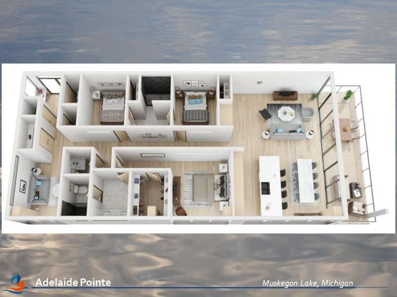 Welcome to Adelaide Pointe where you'll find the best of everything! Michigan's first Mass Timber Condos and greenest condos in MI. This condo, situated on Muskegon Lake, will have amazing sunset views. This gorgeous 3 bedroom (4th bedroom upgrade available) and 2 bath 1,726 sq foot condo boasts an open floor plan with kitchen island, 28x8 foot terrace, and owner's suite. Amenities include 25-yrd waterfront lap pool, outdoor common space, underneath garage parking, bicycle parking, and dual elevators. On-site restaurant, marina, shopping, bike trail, parks are some of the options that will be available right outside your door. Photos and 3D walkthrough tour (in pictures) are merely a depiction of the potential space. Actual floor plans may vary. Contact an agent today for details.