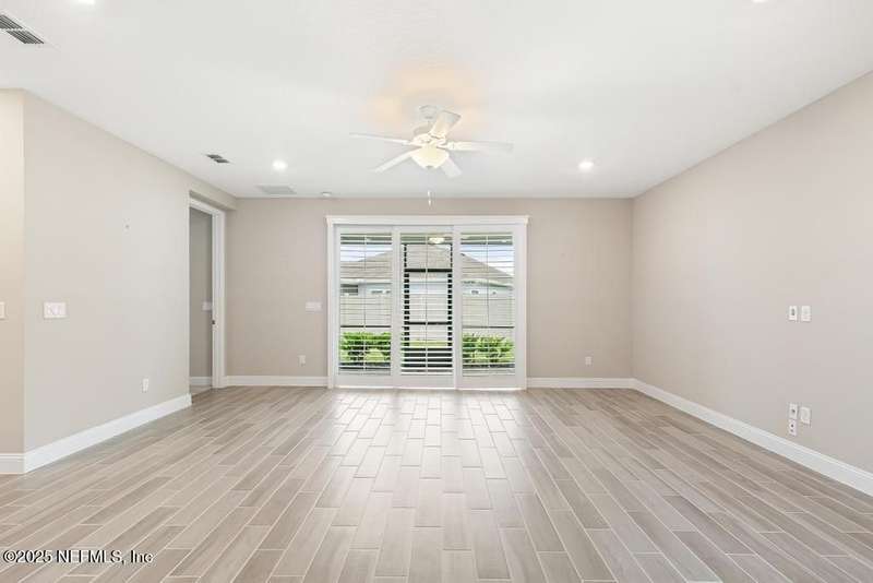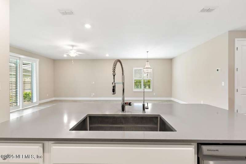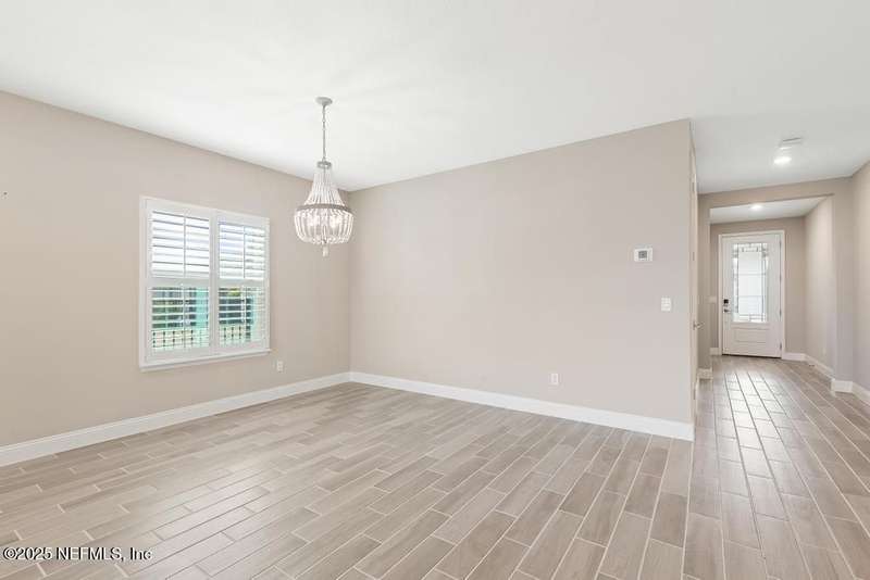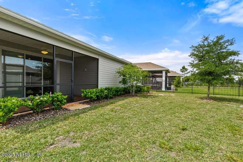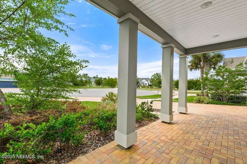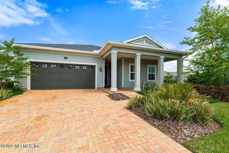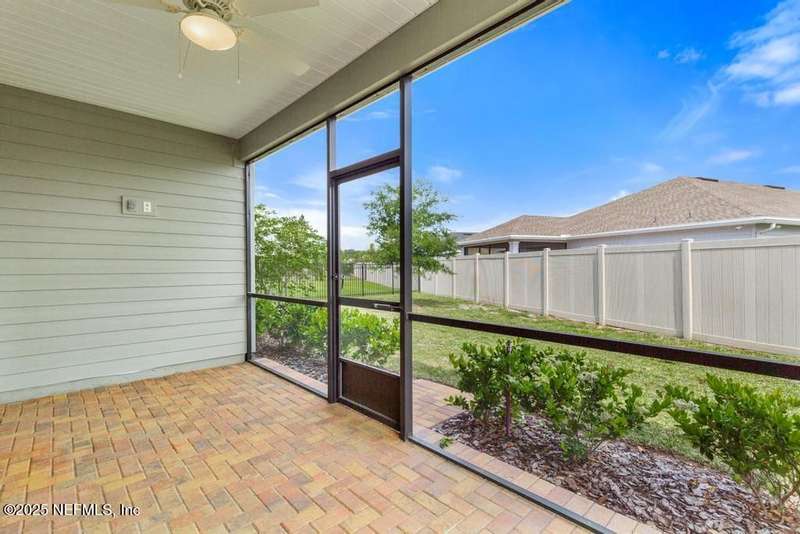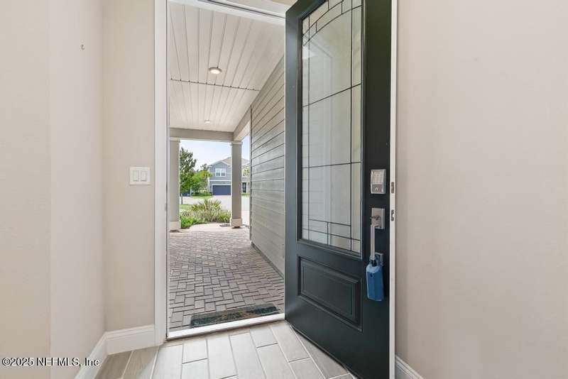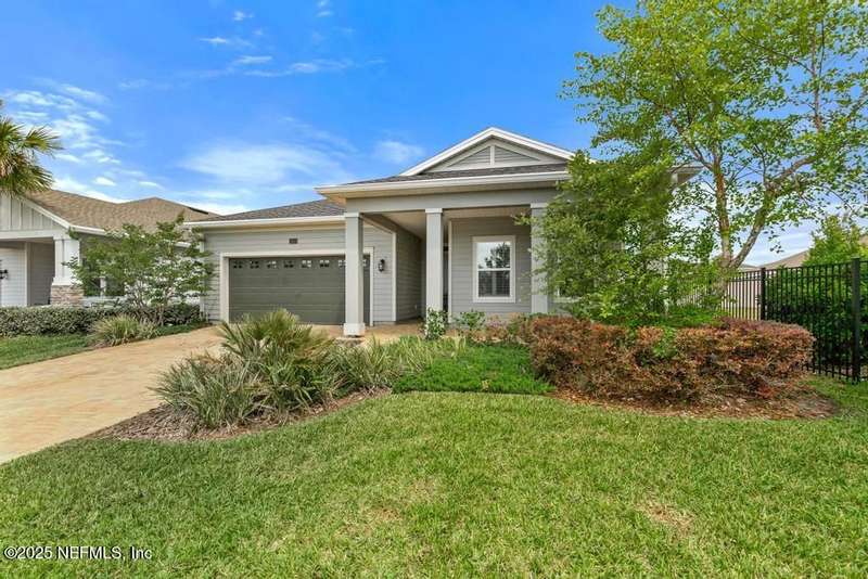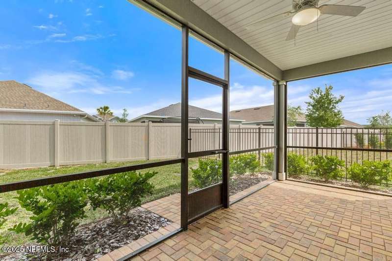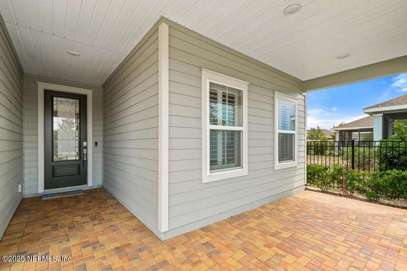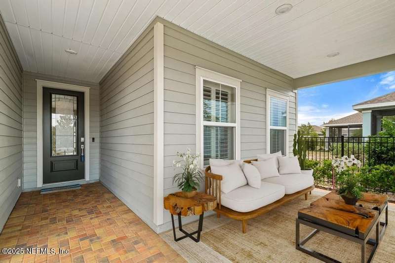 Welcome to this better-than-new-and slightly larger than current new construction-beautifully crafted Trevi floor plan in the heart of Shearwater. This stunning residence offers 4 bedrooms, 3 full bathrooms, and a 2-car garage, all wrapped in a layout that seamlessly balances style and functionality. Step inside and discover a chef-inspired kitchen featuring a beautiful quartz countertops and island, Frigidaire stainless steel 5-burner gas stove with oven, dishwasher, and refrigerator-perfect for both everyday meals and entertaining guests. The interior is elevated with plantation shutters throughout, a water softener system, reverse osmosis at the kitchen sink, and sleek ceramic wood-look tile flowing through the main living areas. Plush carpeting adds comfort in the bedrooms. Each bathroom features Quartz vanities, adding a stylish and consistent touch throughout the home. Additional features include a tankless water heater, washer & dryer, gutters, and fully irrigated yard. The backyard is mostly fenced - just the side yards remain to complete full enclosure. Enjoy peaceful outdoor living from your private screened lanai, and arrive in style with a pavered driveway that adds instant curb appeal. Situated in one of Northeast Florida's most sought-after neighborhoods, this home combines thoughtful design, functionality, and relaxed living. Plus access to world-class amenities and top-rated A schools makes this the perfect home. Schedule your private showing today and experience everything this exceptional Shearwater home has to offer! **virtual staging in rooms with furniture & front porch**
