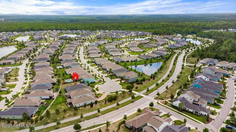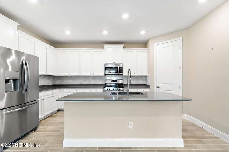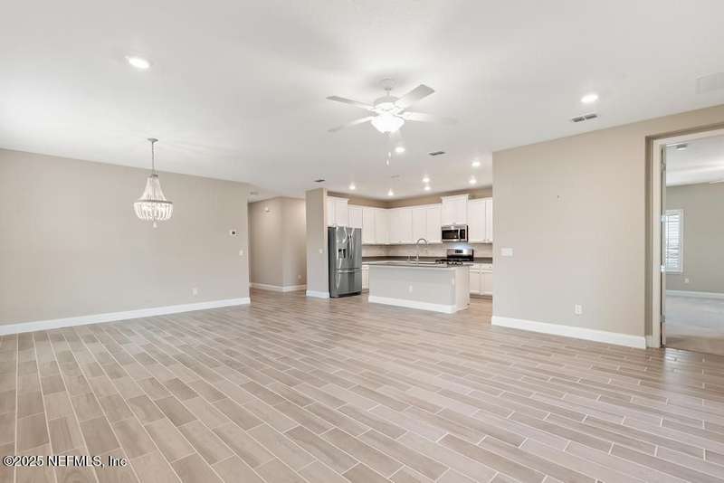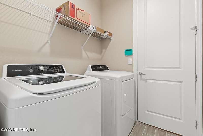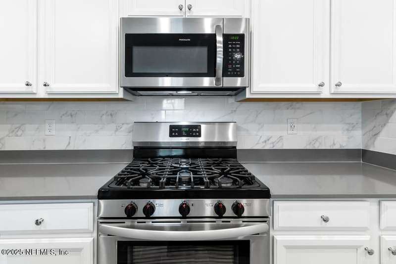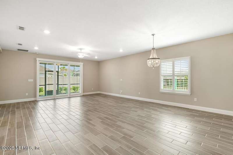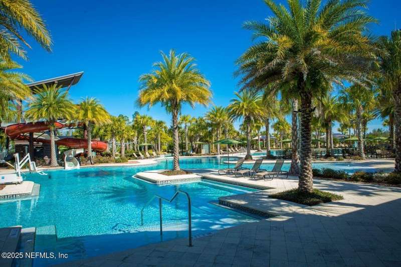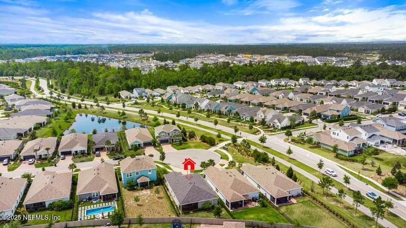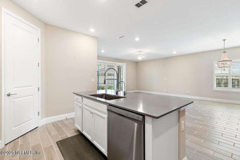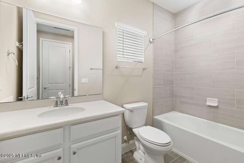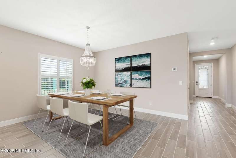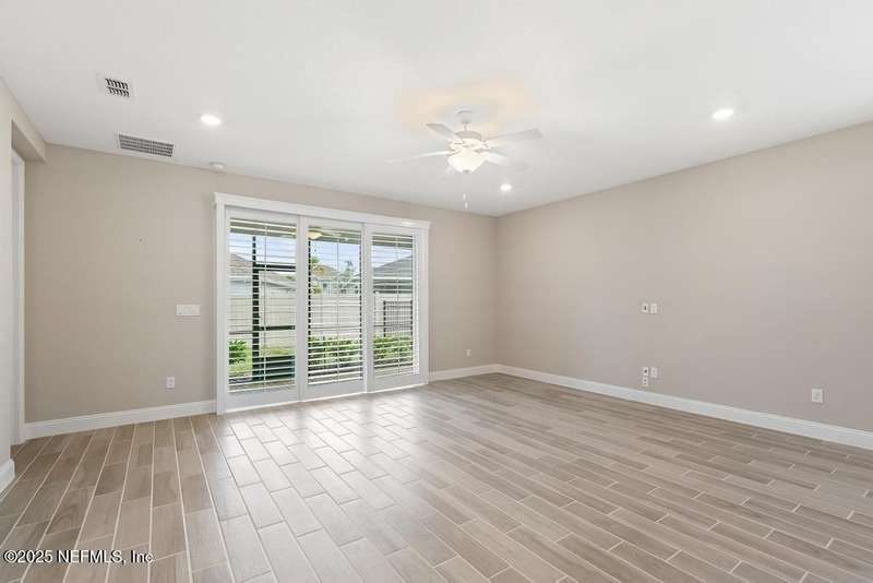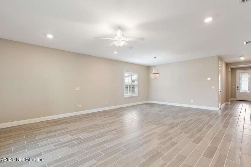Welcome to this better-than-new-and slightly larger than current new construction-beautifully crafted Trevi floor plan in the heart of Shearwater. This stunning residence offers 4 bedrooms, 3 full bathrooms, and a 2-car garage, all wrapped in a layout that seamlessly balances style and functionality. Step inside and discover a chef-inspired kitchen featuring a beautiful quartz countertops and island, Frigidaire stainless steel 5-burner gas stove with oven, dishwasher, and refrigerator-perfect for both everyday meals and entertaining guests. The interior is elevated with plantation shutters throughout, a water softener system, reverse osmosis at the kitchen sink, and sleek ceramic wood-look tile flowing through the main living areas. Plush carpeting adds comfort in the bedrooms. Each bathroom features Quartz vanities, adding a stylish and consistent touch throughout the home. Additional features include a tankless water heater, washer & dryer, gutters, and fully irrigated yard. The backyard is mostly fenced - just the side yards remain to complete full enclosure. Enjoy peaceful outdoor living from your private screened lanai, and arrive in style with a pavered driveway that adds instant curb appeal. Situated in one of Northeast Florida's most sought-after neighborhoods, this home combines thoughtful design, functionality, and relaxed living. Plus access to world-class amenities and top-rated A schools makes this the perfect home. Schedule your private showing today and experience everything this exceptional Shearwater home has to offer! **virtual staging in rooms with furniture & front porch**