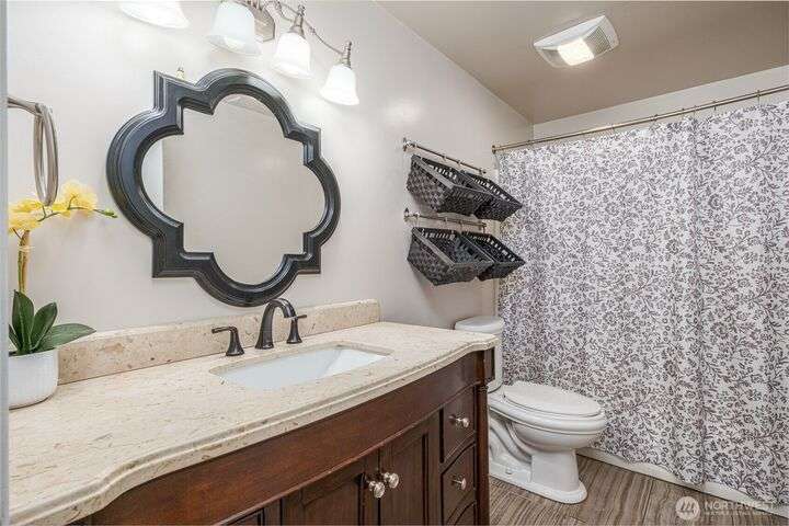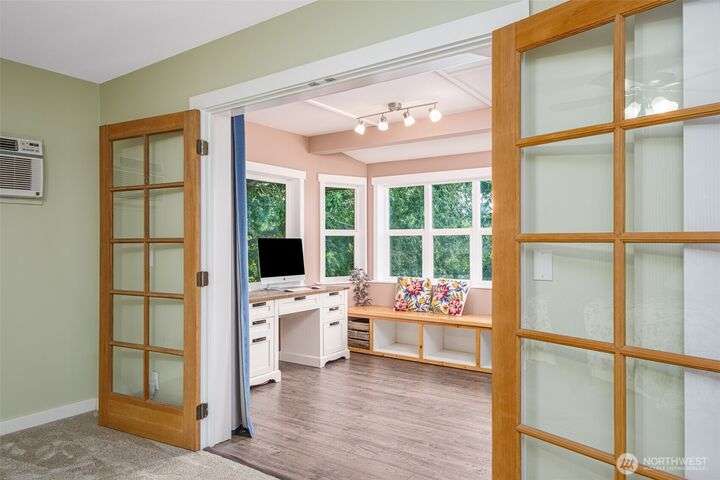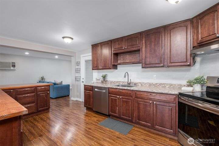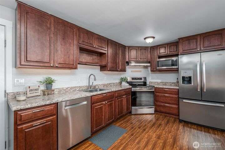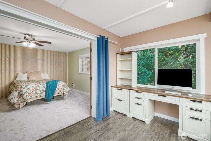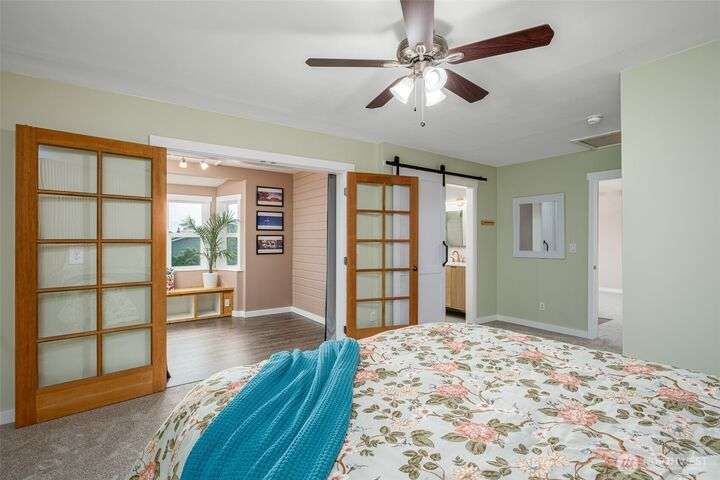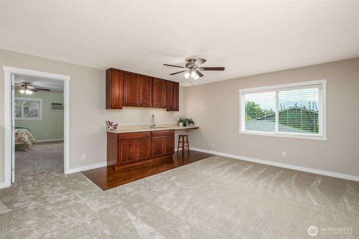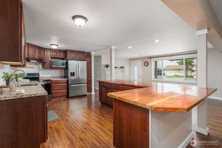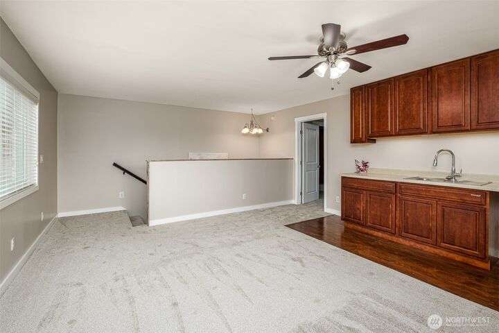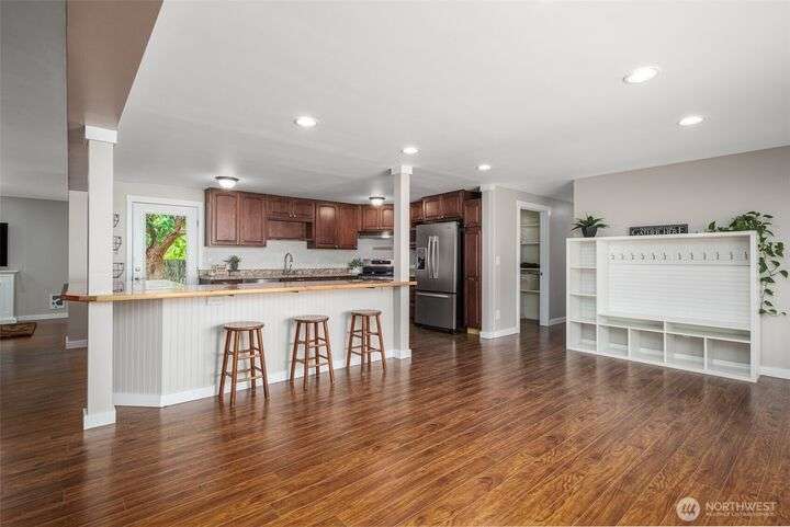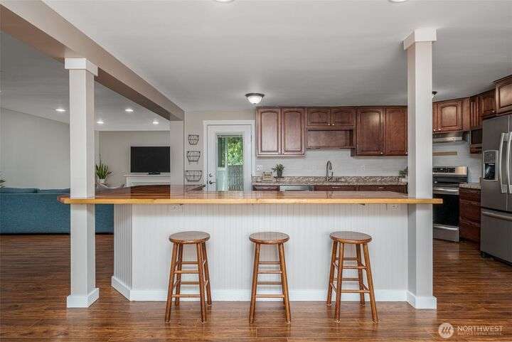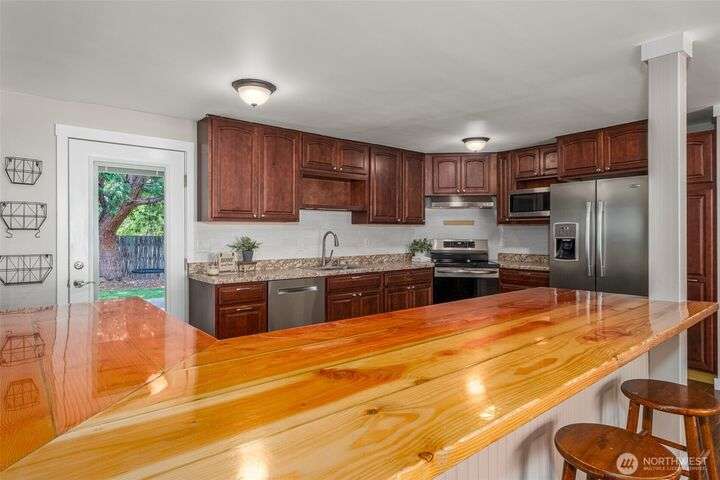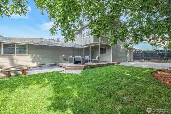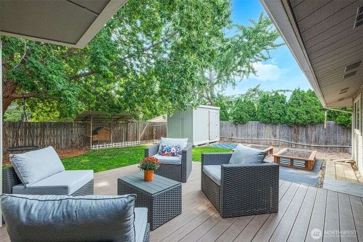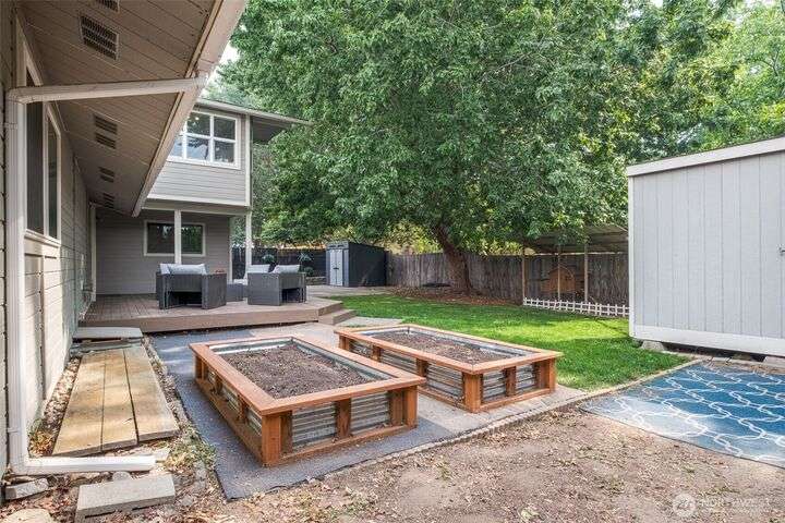 Beautifully updated! This spacious 4-bedroom home offers 2,332 sqft of versatile living. The sunroom off the primary suite is perfect as a private office or cozy retreat, while the upstairs family room—with its own wet bar—sets the stage lounging and relaxing. The open-concept kitchen shines with a custom wood epoxy-finished bar, soft-close cabinetry, and sleek stainless-steel appliances. Step outside to a fully fenced backyard designed for both relaxation and utility—featuring mature trees, a lounging deck, raised garden beds, RV parking, a storage shed, and a chicken coop or dog run. This home blends comfort, character, and functionality with space for everyone.