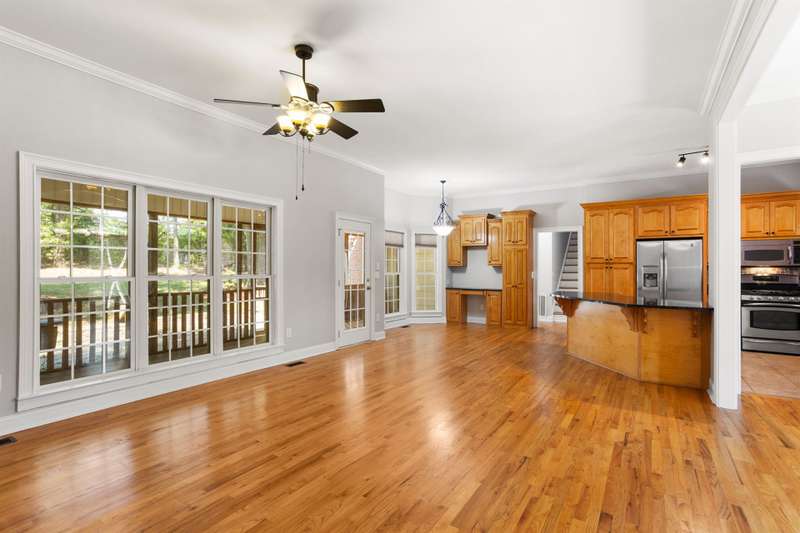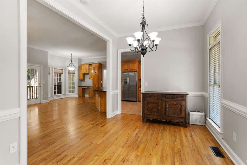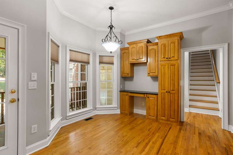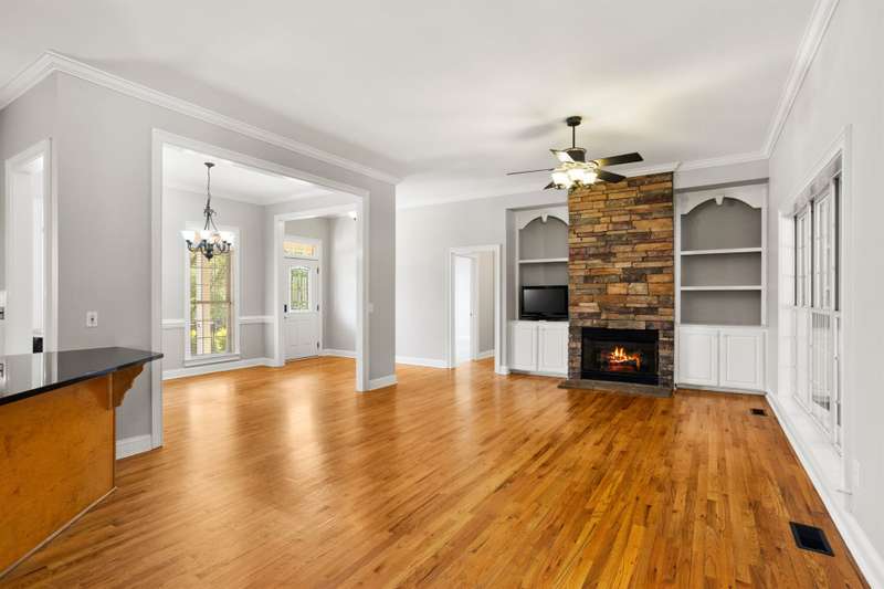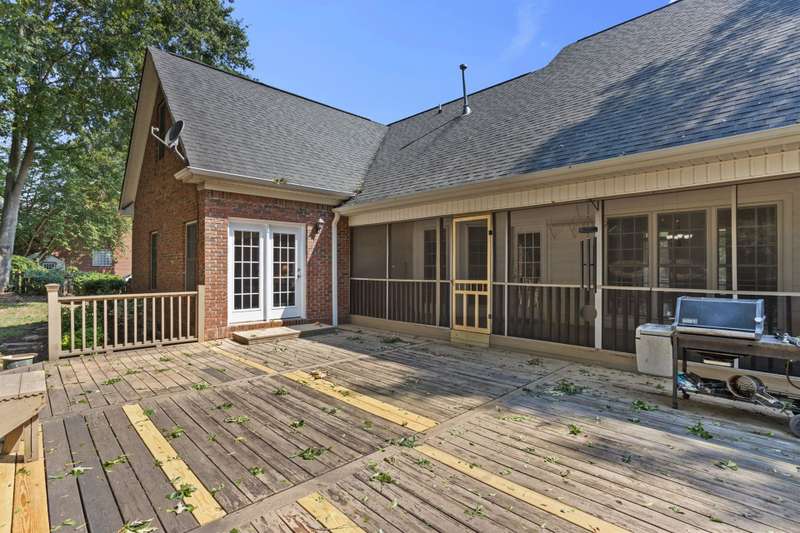Welcome to this stunning home in the Laurel Lake neighborhood of Greer. Step onto the inviting front porch and into a bright, open living area with a cozy fireplace, seamlessly connected to a formal dining space and a well-appointed kitchen featuring ample counter space, cabinet storage, and a bar area. Just off the kitchen, enjoy an informal breakfast area complete with a built-in wall desk and additional cabinet storage. The main-level primary suite boasts a large ensuite bathroom and a walk-in closet with custom built-ins. Two additional bedrooms and a full hallway bath complete the downstairs on the other side of the home, providing privacy for guests and family. Upstairs you'll find two versatile rooms ideal for bedrooms, a bonus or rec space, or a home office, as well as a third full bathroom and convenient attic access storage. Outside, unwind on the expansive deck overlooking the backyard. A French drain was added a few years ago for improved drainage and peace of mind. The Laurel Lake neighborhood also features a community pond with fishing access for a fun day outside just a stone's throw from your front door. And in an ideal location just minutes from the vibrant Five Forks area, you have easy access to loads of dining, shopping, and entertainment options. Don't miss your opportunity to make this charming house your home!