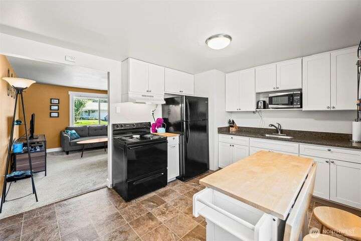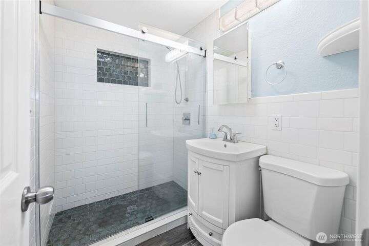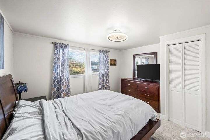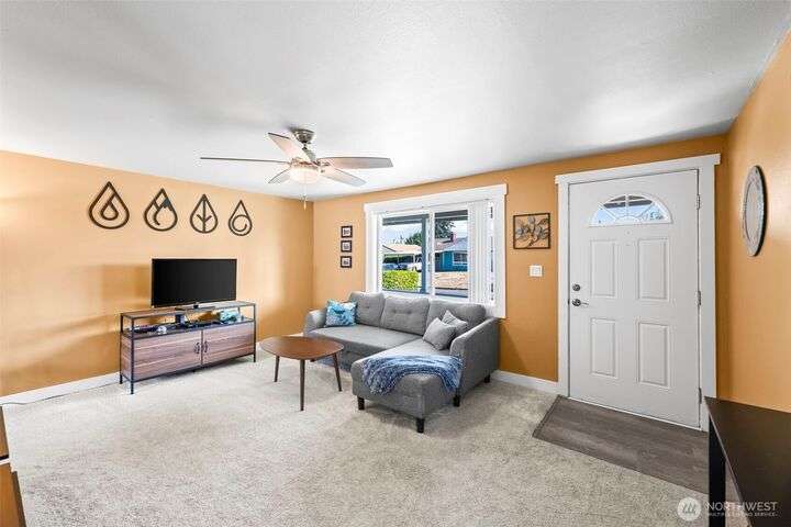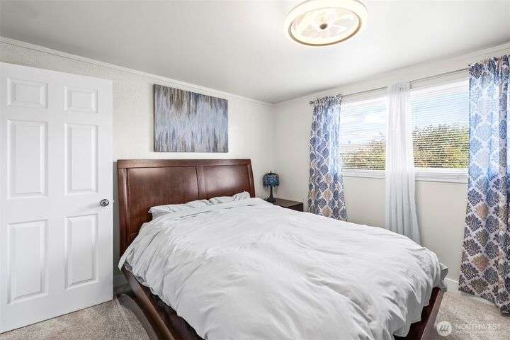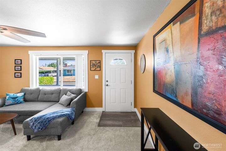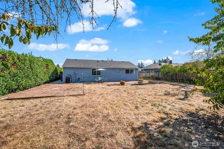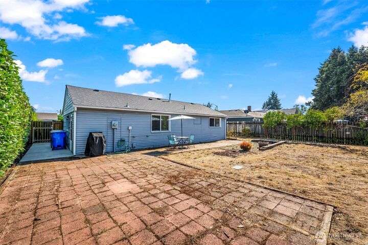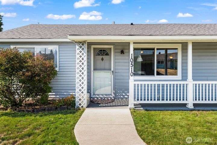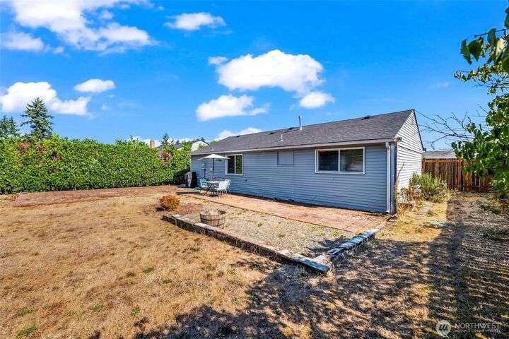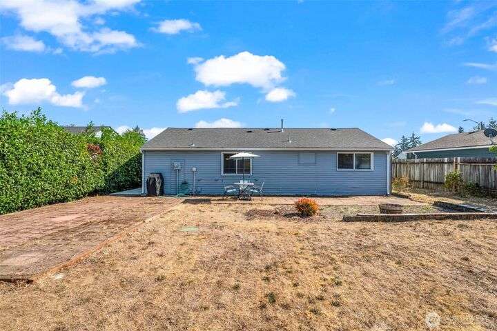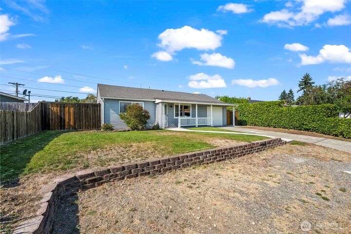Enjoy the ease of one-level living in this beautiful home featuring a spacious enclosed backyard with mature landscaping, ideal for relaxing. The newer roof and updated windows offer peace of mind. The home was recently repiped! Covered front porch, front yard sprinklers, new concrete walkway! Updated kitchen with soft-close shaker cabinets. Updated bathroom with expansive tile shower. Primary bedroom offers two closets for ample storage. Stay cozy year-round with a gas furnace. Attached garage plus guest parking on gravel area in front of home. Multiple outdoor electrical outlets to enhance enjoyment of the outdoors. Convenient to Lakewood shopping, dining and services. Easy access to I-5 and 512 for commuters! Pre-inspection done!
