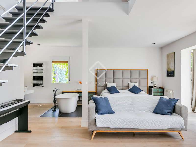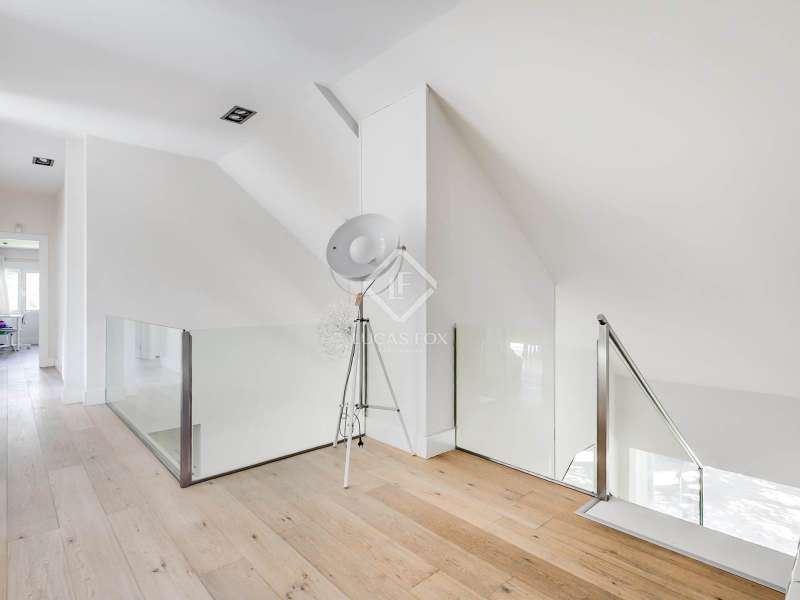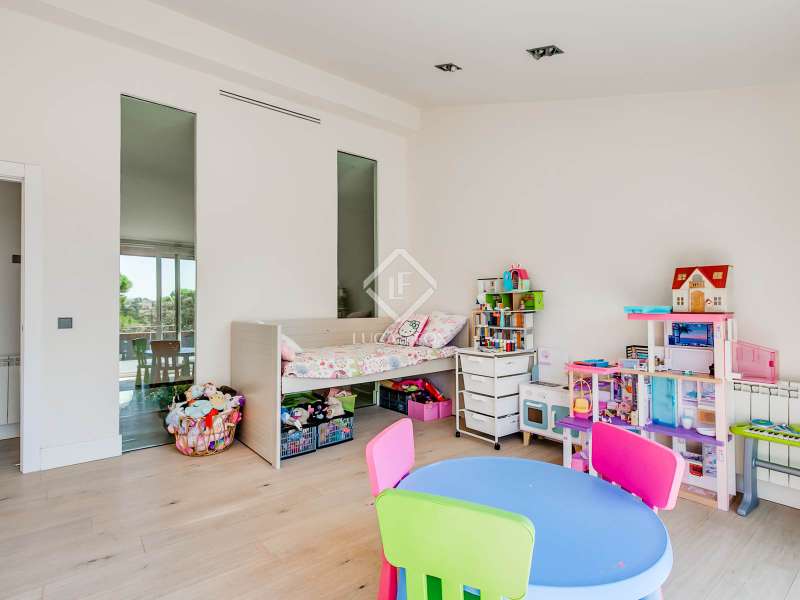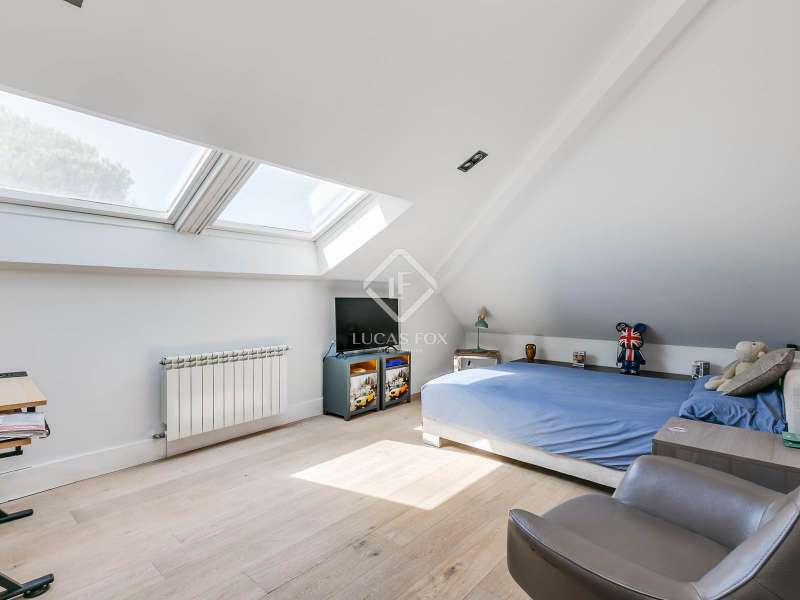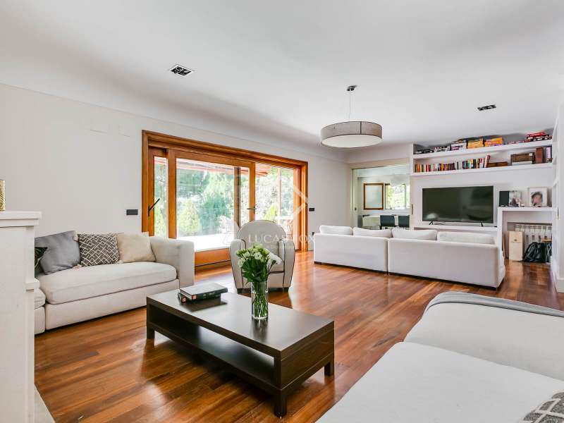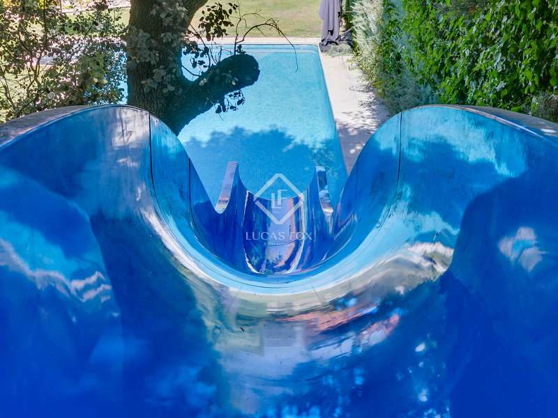 Lucas Fox exclusively presents this spectacular 845 m² detached house on an impressive 2,500 m² elevated plot , located on a quiet cul- access-sac, offering exceptional privacy and unparalleled panoramic views of Madrid. The property is located in a prime location in La Moraleja, a short distance from the centre of Madrid. The property is surrounded by a mature garden with no close neighbors, offering tranquility and privacy, something rare. Thanks to its four-way orientation, the house enjoys natural light throughout the day. It also features a large pool with a professional water slide, a fully equipped barbecue area, and a private paddle tennis court. On the main floor , we find a large, double-height entrance hall , a living-dining room with enormous sliding windows that open onto a spacious porch with stunning views, a cozy living room, and a separate kitchen with a center island. Additionally, there is a generously sized, double-height main bedroom with a dressing room, full bathroom , study , and direct access to the garden and pool, as well as an additional bedroom with a private bathroom, ideal for guests. On the first floor we find two large bedrooms that share a bathroom, one of them with access to a large terrace (perfect as a games room or study) and two more secondary bedrooms, both with private bathroom and abundant natural light. The lower ground floor houses a staff bedroom with a private bathroom, a laundry room room and storage area, a large multipurpose room ideal as a gym, cinema room or games area, and a garage with capacity for three or four vehicles. Please contact us for more information about this or similar properties available, as not all properties are listed on Idealista at the owners' request. Consult our website or visit us at our Property Lounge at 1 La Moraleja Plaza, where we will be delighted to welcome you.