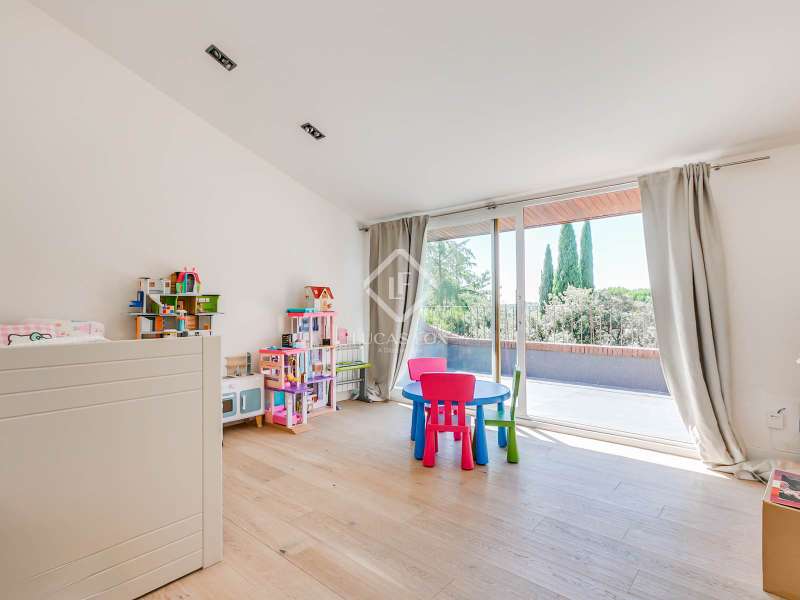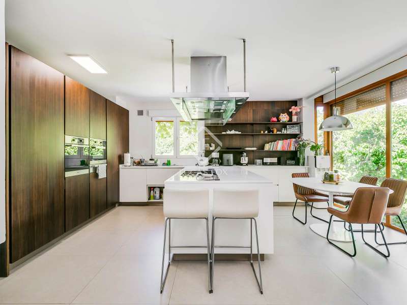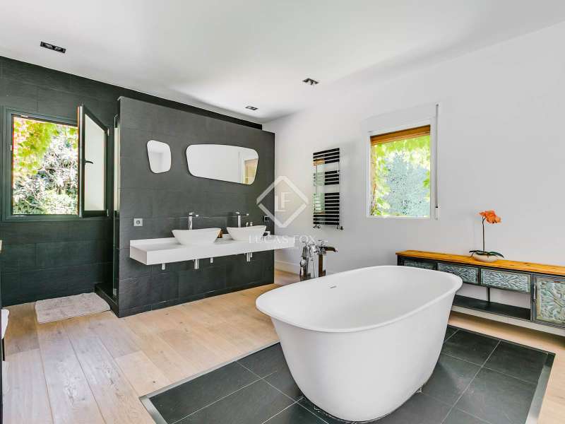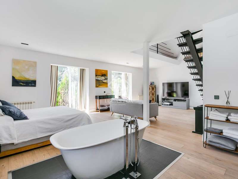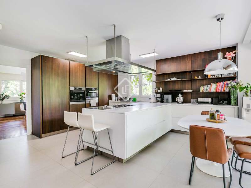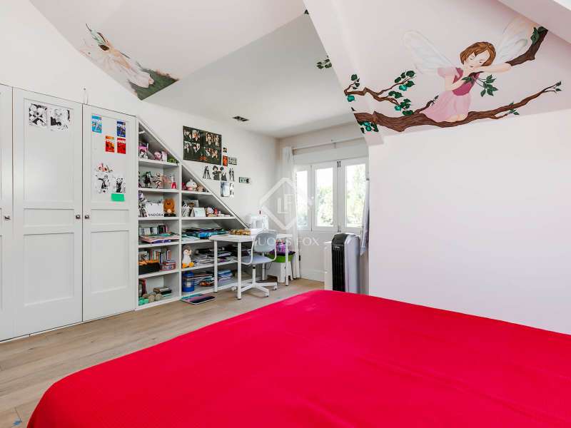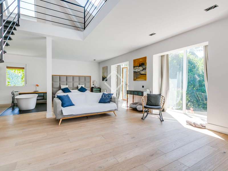 Lucas Fox exclusively presents this spectacular 845 m² detached house on an impressive 2,500 m² elevated plot , located on a quiet cul- access-sac, offering exceptional privacy and unparalleled panoramic views of Madrid. The property is located in a prime location in La Moraleja, a short distance from the centre of Madrid. The property is surrounded by a mature garden with no close neighbors, offering tranquility and privacy, something rare. Thanks to its four-way orientation, the house enjoys natural light throughout the day. It also features a large pool with a professional water slide, a fully equipped barbecue area, and a private paddle tennis court. On the main floor , we find a large, double-height entrance hall , a living-dining room with enormous sliding windows that open onto a spacious porch with stunning views, a cozy living room, and a separate kitchen with a center island. Additionally, there is a generously sized, double-height main bedroom with a dressing room, full bathroom , study , and direct access to the garden and pool, as well as an additional bedroom with a private bathroom, ideal for guests. On the first floor we find two large bedrooms that share a bathroom, one of them with access to a large terrace (perfect as a games room or study) and two more secondary bedrooms, both with private bathroom and abundant natural light. The lower ground floor houses a staff bedroom with a private bathroom, a laundry room room and storage area, a large multipurpose room ideal as a gym, cinema room or games area, and a garage with capacity for three or four vehicles. Please contact us for more information about this or similar properties available, as not all properties are listed on Idealista at the owners' request. Consult our website or visit us at our Property Lounge at 1 La Moraleja Plaza, where we will be delighted to welcome you.