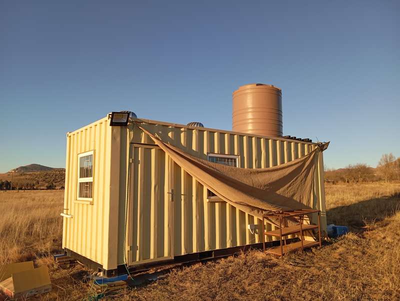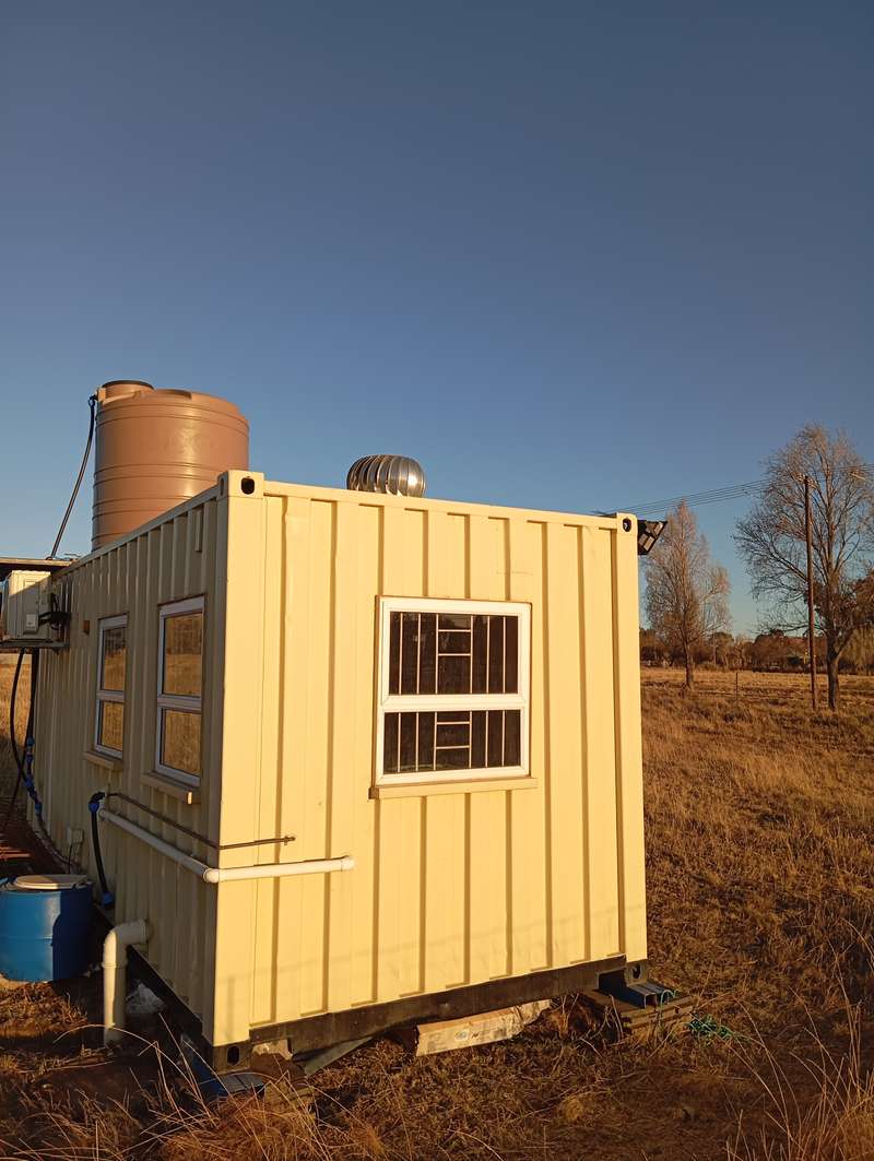 A stand for the adventurer who wants to explore rural living in a tiny house. The vacant stand has a fully equipped borehole, pumping 2000 litres per hour and a container, converted into a tiny home. The container has two rooms with a toilet and basin in a third room. The pipework for an outside shower has already been done, the frame needs to be set up but is also sold with the property. The one room is big enough for a double bed and a small kitchenette will fit into the second space. A fully functioning air conditioner keeps the container cool during summer and warm in winter. A 2 500 liter JoJo tank on top of the container will ensure you are never without water. The sale of the generator can be negotiated separately. The stand leads itself to be developed as holiday accommodation, with plans for holiday cottages included in the sale. A camping site can also be established with little effort. It is fenced on three sides and has beautiful views of the surrounding mountains, the sunset and the sunrise. The stand is located on one of the popular streets in Rosendal in the Eastern Free State. Rosendal, also fondly called the "hidden gem of the Eastern Free State" is home to several artists, poets, writers, creatives and people who want to live close to nature in a rural village. The town boasts an active tennis club, a poetry and book club, a hiking and cycling club and a crochet group.