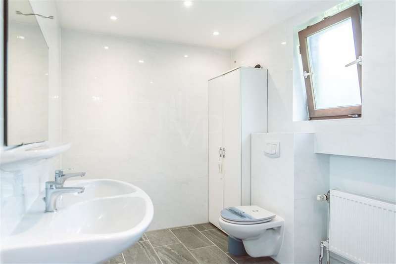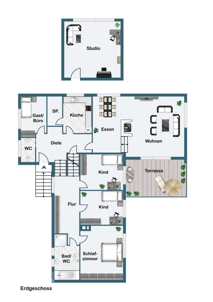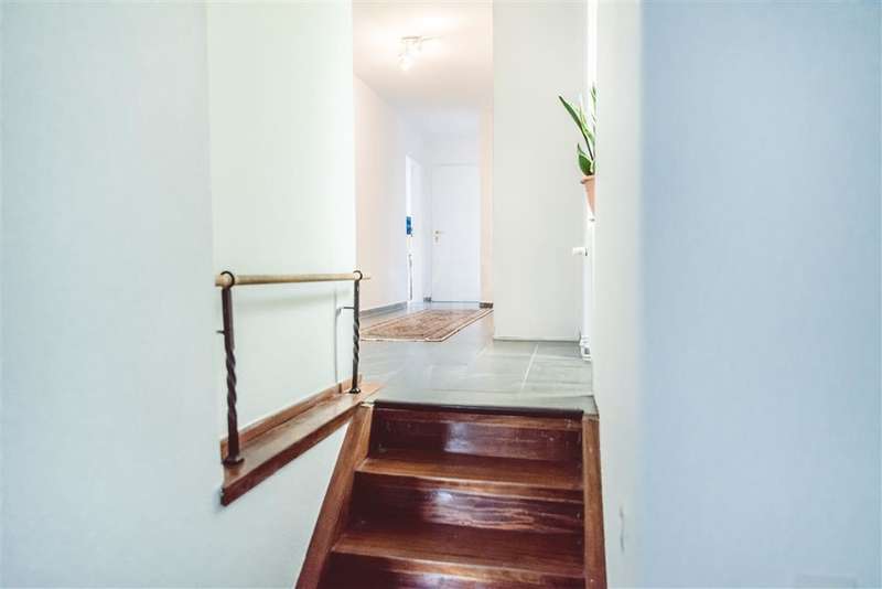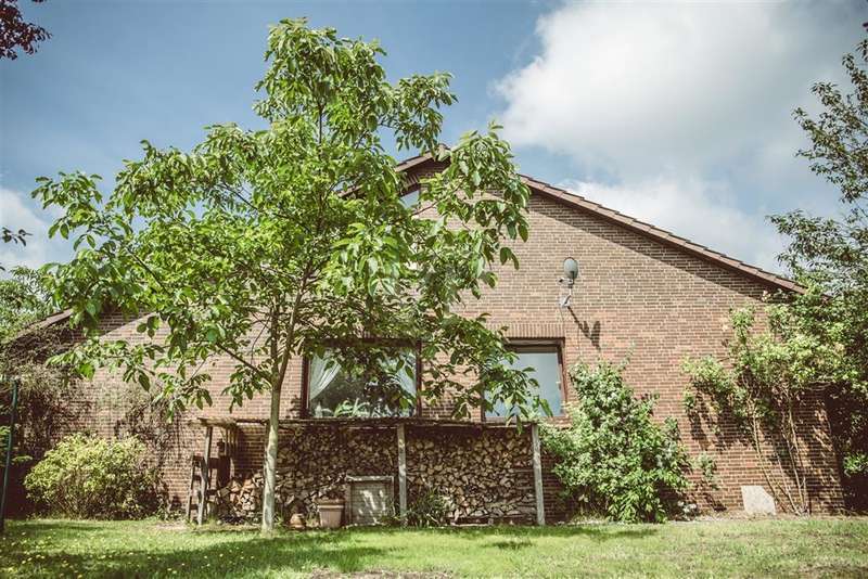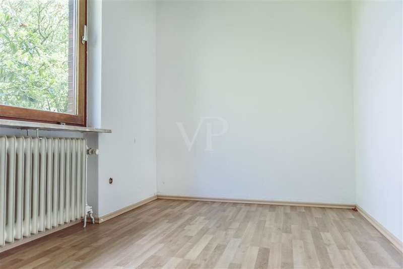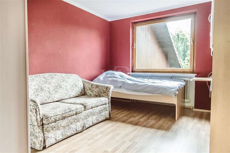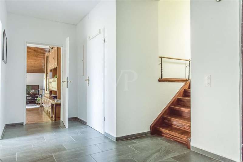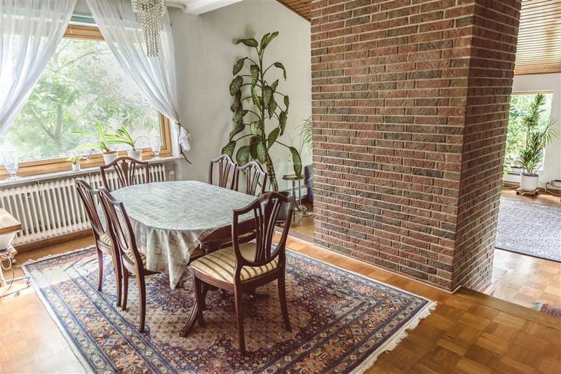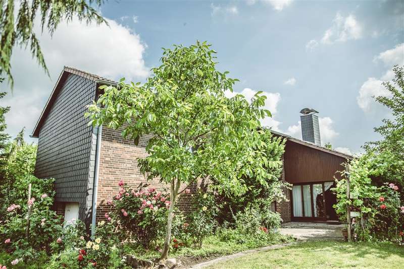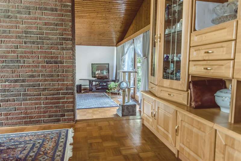 This single-family house from 1965 with a living space of approx. 139.18 m² is characterized by a well thought-out room layout. On a plot of 1023 m² this property offers plenty of space for a family with children. The house is in a modernized condition, the last renovation took place in 2018. Upon entering the house, the hallway greets you with gray tiles and leads you to a guest toilet, which meets the needs of visitors. Directly adjacent is the office, which can be used flexibly as a home office or guest room. The kitchen is equipped with a fitted kitchen and a pantry. The dining room impresses with a hatch to the kitchen and a large window that allows an unobstructed view of nature, as well as an open design to the living room. The center of the house is reached by two flights of stairs, an impressive picture window allows a magnificent view of the garden, a double sliding door, creates a seamless connection to the southwest terrace, the interior and exterior are harmoniously combined. Another highlight of the living room is the open fireplace, which not only provides a cozy atmosphere, but also serves as an eye-catcher. Both the dining room and the living room are equipped with parquet flooring. This high-quality flooring gives both rooms a warm and elegant character. From the hallway, a half staircase (split level) leads to the bedroom wing, where are two children's rooms and a master bedroom. Both the spacious hallway and the bedroom are equipped with additional built-in wardrobes, which provide plenty of storage space for clothes and other items. On this level residents have a spacious shower bathroom, modern lighting elements create a pleasant atmosphere and contribute to the atmospheric design of the bathroom, also the bathroom also has a double sink, which provides comfort and convenience. You can reach the studio via another half staircase, it offers additional space and a variety of design options. A special highlight of the studio is the unobstructed view of nature. Large windows let in plenty of daylight and allow an unobstructed view of the surrounding area. The house also offers a partial basement with 2 cellar rooms, a boiler room and an integrated garage. The windows are wooden and the heating is central gas. The property is characterized by a normal equipment quality. The slate shingle cladding on the west side of the house and the garage gives the property a special look. The location of the house is quiet and yet conveniently located. Shopping, schools and public transportation are nearby. The garden offers enough space for relaxation and recreation. Overall, this property offers generous living space, modern amenities and an attractive location. It is ideal for families looking for quiet living in a well-connected neighborhood. Arrange a viewing appointment now and see for yourself.