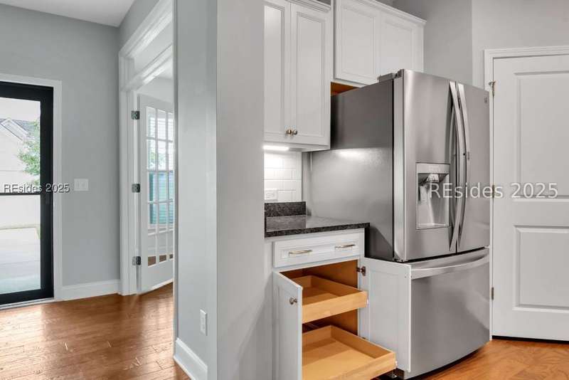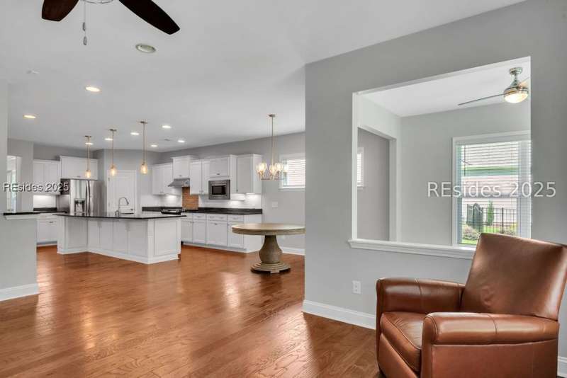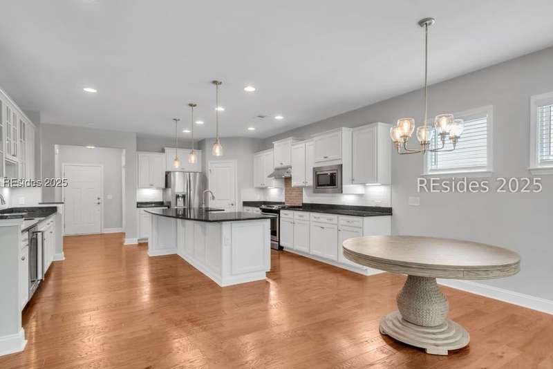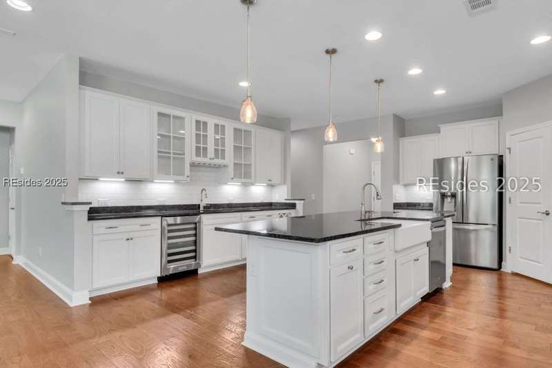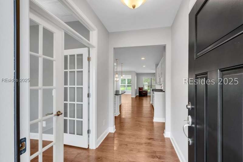 Step into this beautifully maintained, like-new home located in The Haven at New Riverside, a true retreat for those 55 and older. Designed for comfort and entertaining, this residence features a chefs dream kitchen complete with a center island offering cabinetry on both sides, a wet bar, wine refrigerator, and a gas stove, ideal for hosting and everyday living. Enjoy peaceful mornings in the Carolina Room or relax on the screened porch with your early cup of coffee. The flex room with French doors is perfect as an office, library or guest space. The zero-entry shower, laundry room, custom closet, built-in drop zone, garage work sink and WALK-UP ATTIC storage add convenience and accessibility. Don't miss this opportunity to live in one of the area's most desirable active adult communities!