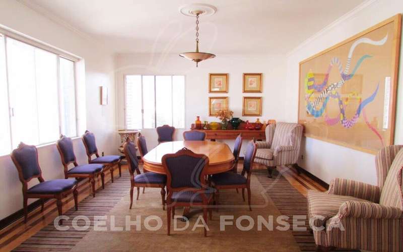 Belíssimo apartamento. Edifício bem conservado. Uma unidade por andar. Pé direito alto (3,5), aquecimento central, vista para a Praça da República, 348m² distribuídos em três dormitórios (uma suíte), sala de estar , sala de jantar, Hall de entrada espaçoso com piso de granito, cozinha, dois quartos de empregada, biblioteca, escritório, duas vagas na garagem. Baixo custo de manutenção. Portaria 24 horas.