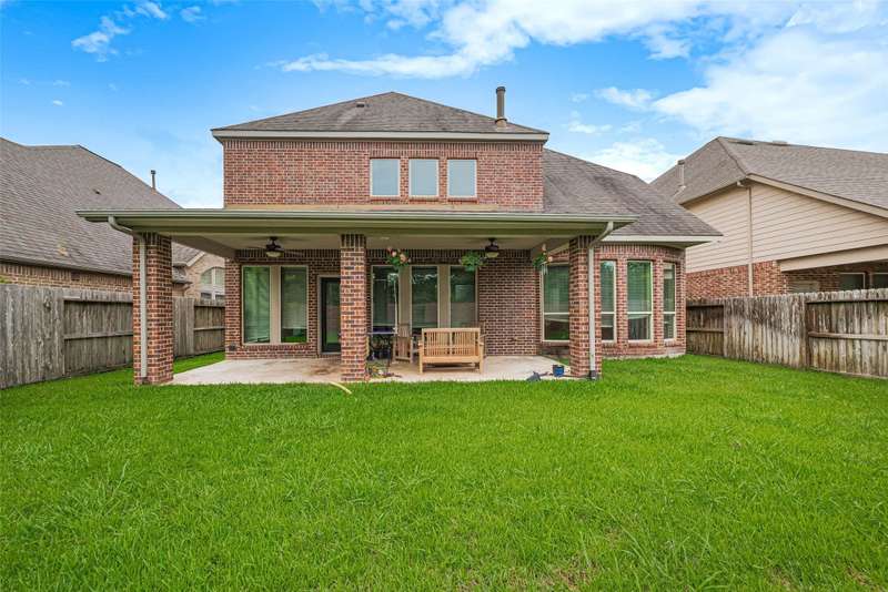 SIENNA!! Walk to Sawmill Lake Club!! PERRY-built 4-bedroom with STUDY, GAMEROOM, AND MEDIA ROOM!! Soaring double-height ceilings from entry through living spaces and an open floor plan perfect for entertaining. Double glass doors offer privacy for the study—ideal for working from home. Formal dining with wood floors and easy access for hosting. Cozy corner fireplace in the living room, open to the central island kitchen with breakfast bar seating, granite counters, stainless appliances, and ample storage. Spacious primary suite with bay window and spa-inspired en suite with a large walk-in closet. Upstairs features an oversized game room with balcony and true media room. Secondary bedrooms all include walk-in closets! Covered back patio and NO REAR NEIGHBORS! Zoned to top-rated FBISD Sienna schools. The 3 car garage has insulated doors and a mini split system