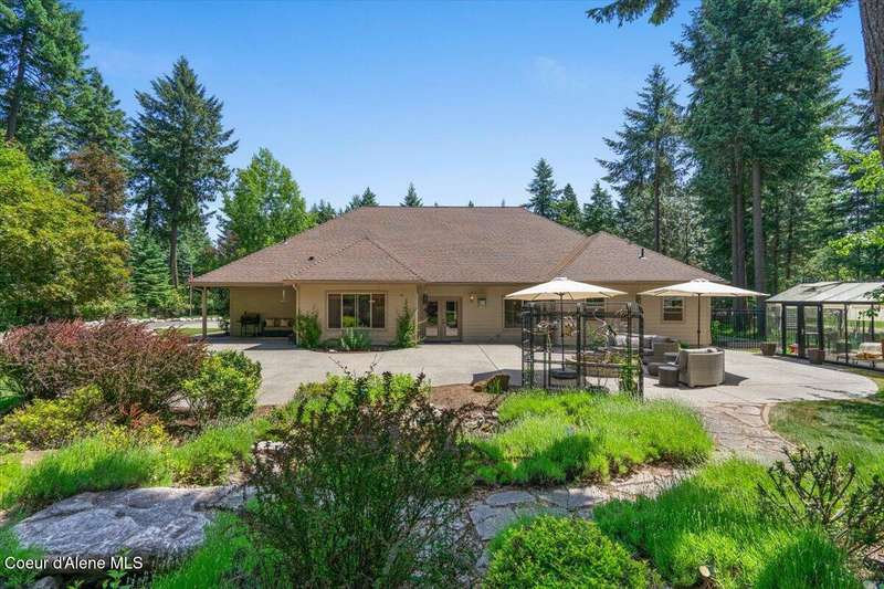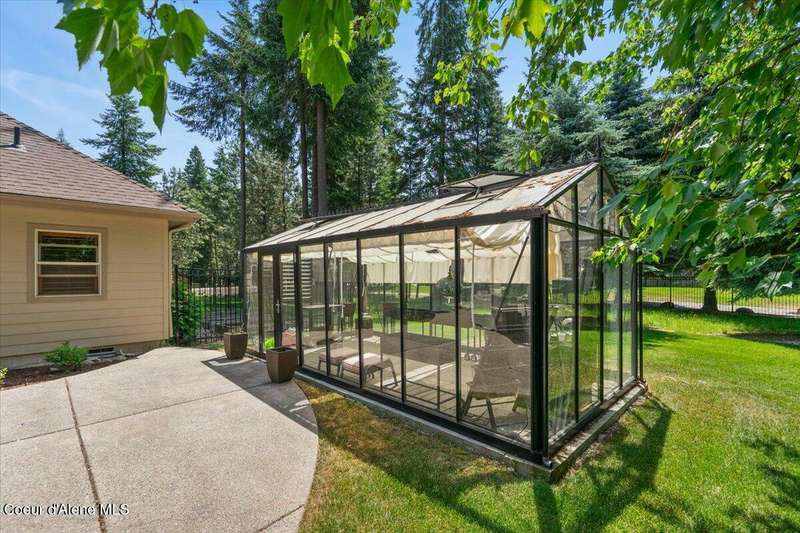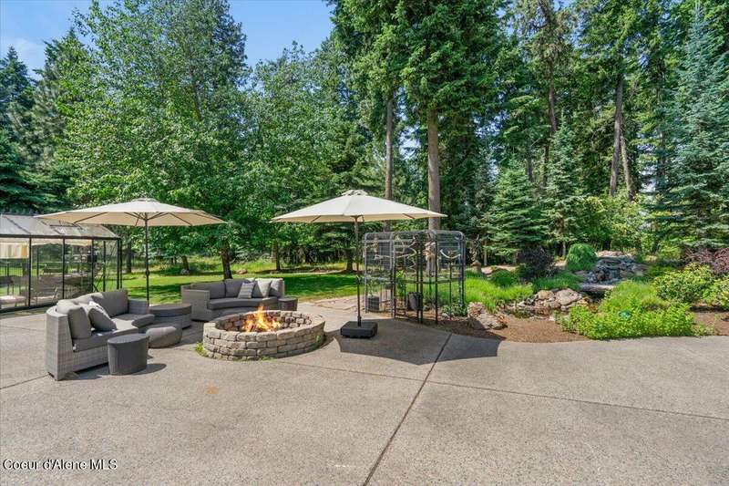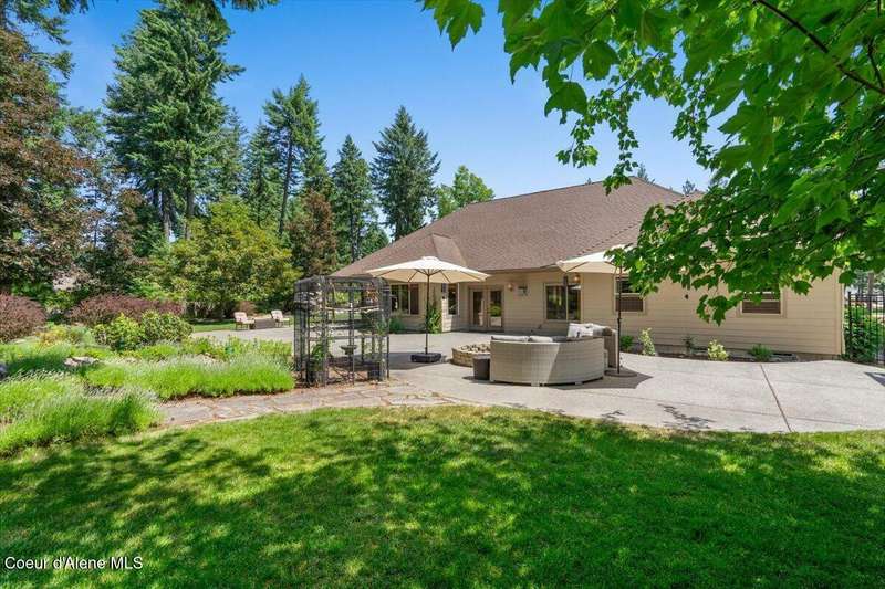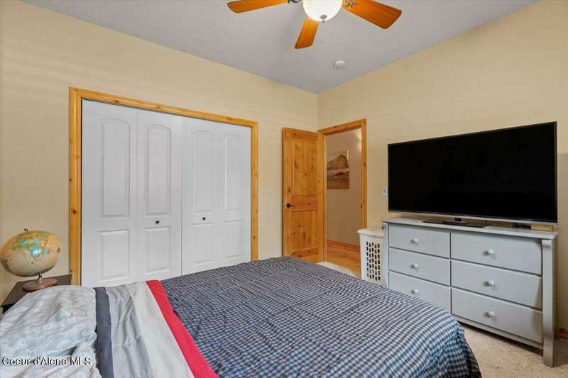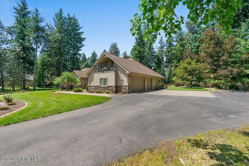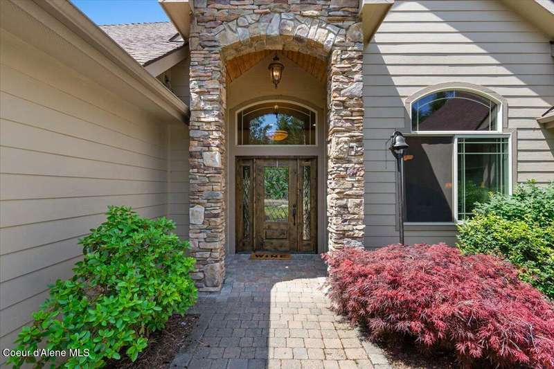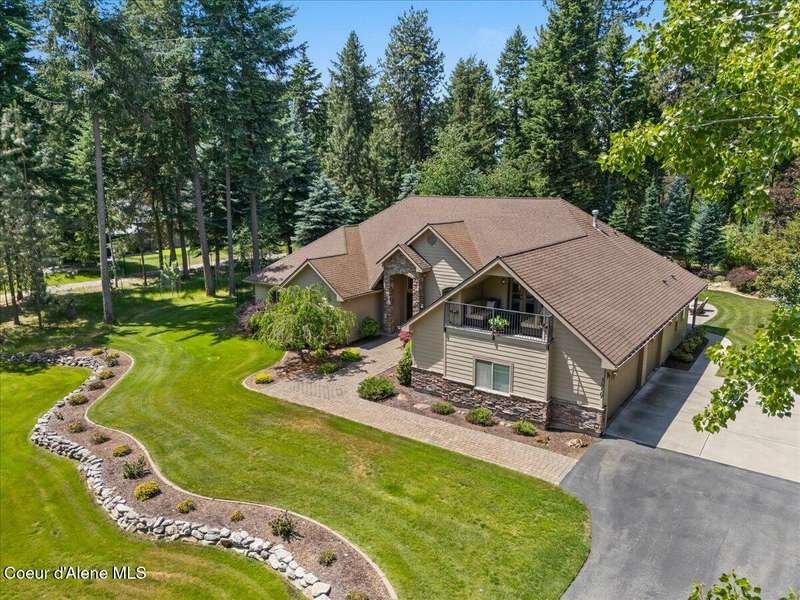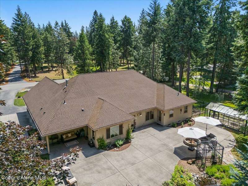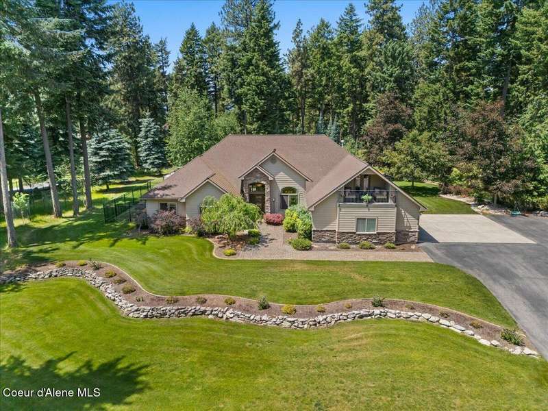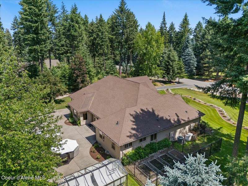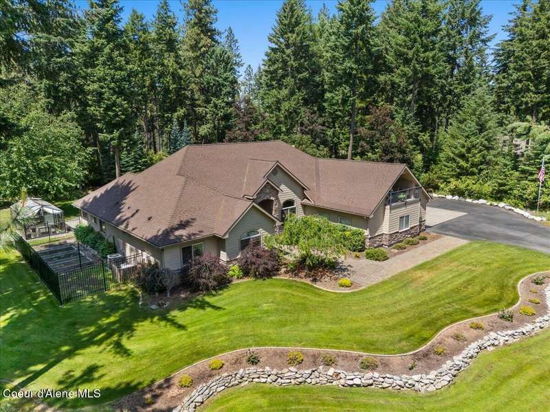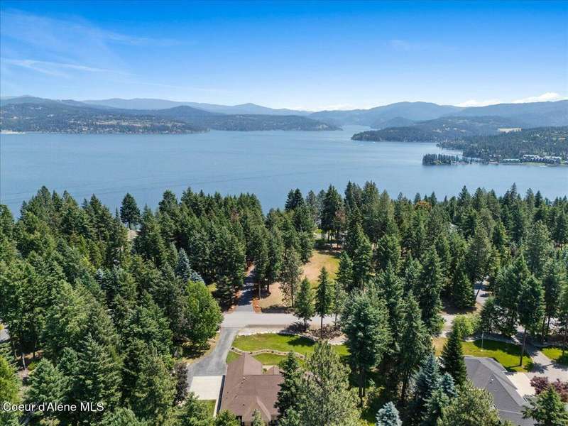 Discover luxury in the gated Harbor View Estates, just 20 minutes from downtown Coeur d'Alene! This 3,231 sqft masterpiece boasts 3 bedrooms, 3.5 bathrooms, and stunning filtered lake views. Inside, find soaring vaulted ceilings, a gourmet kitchen, and a home office with built-in desks for two. The bonus room above the garage, with a covered balcony and French doors, offers flexible space. The home has two hot water heaters, and whole-home vacuum system. The 2,500 sqft patio, pre-wired for an outdoor kitchen or pergola, features a 220V hot tub outlet, two fire pits, and a flagstone water feature. Enjoy a fenced garden, greenhouse, and fruit trees. An automatic whole-home generator and owned 500-gallon propane tank ensure reliability. Park effortlessly with a 6-car driveway and oversized 3-car garage. Residents access a private community beach and pavilion on iconic Lake Coeur d'Alene. Seize this rare opportunity to own paradise!
