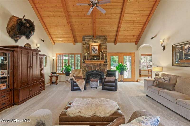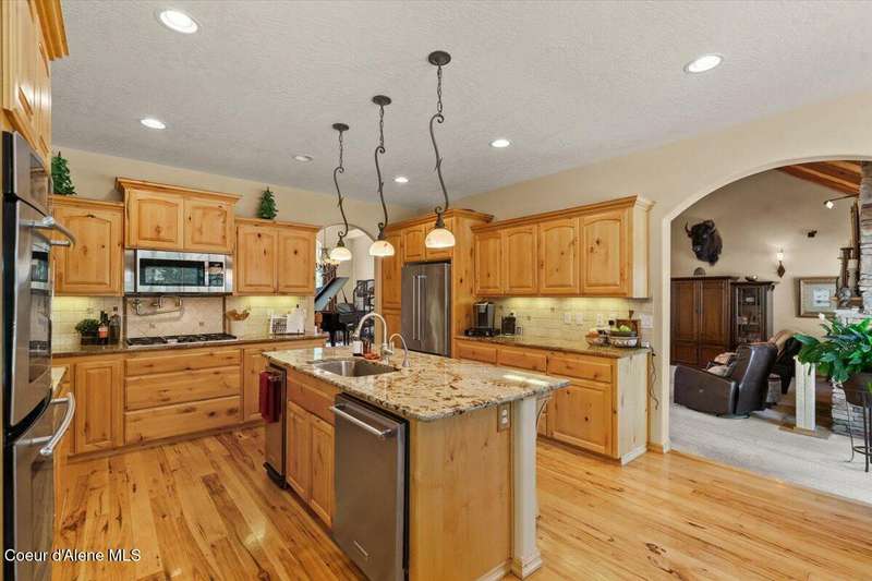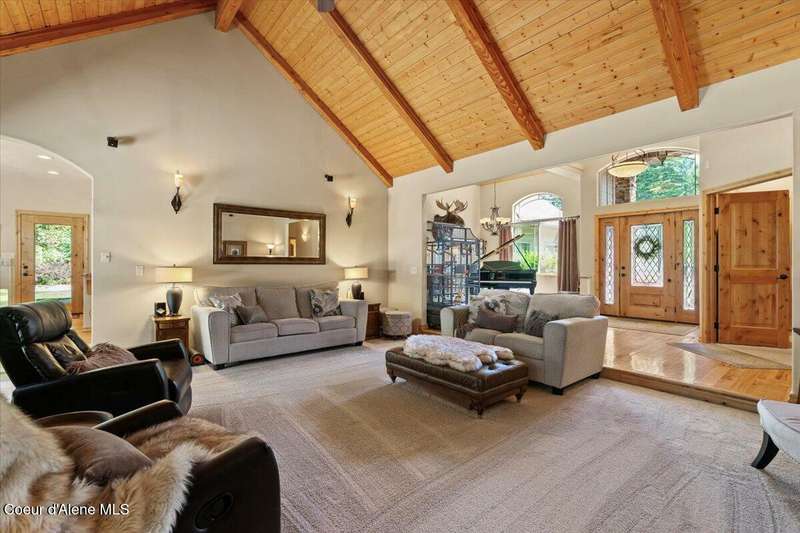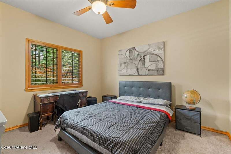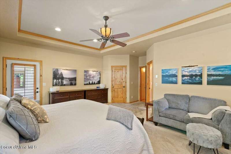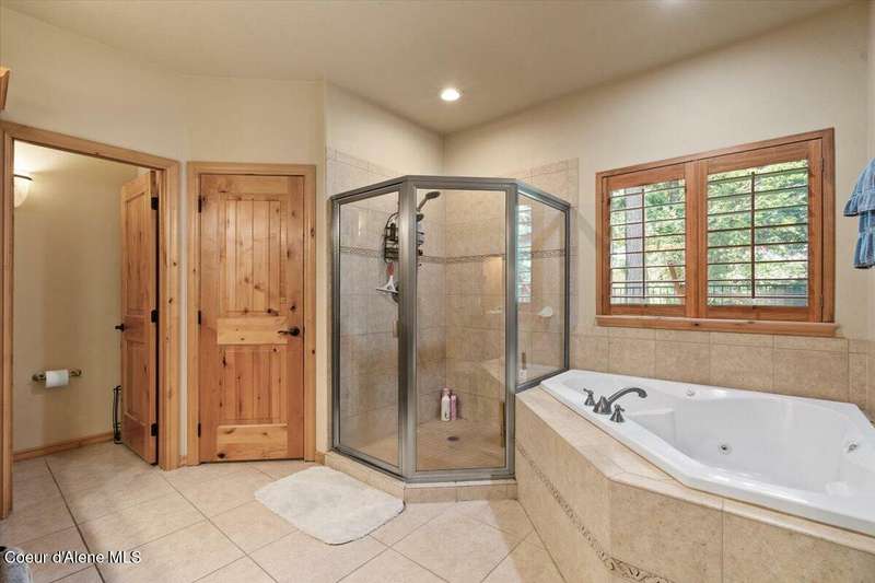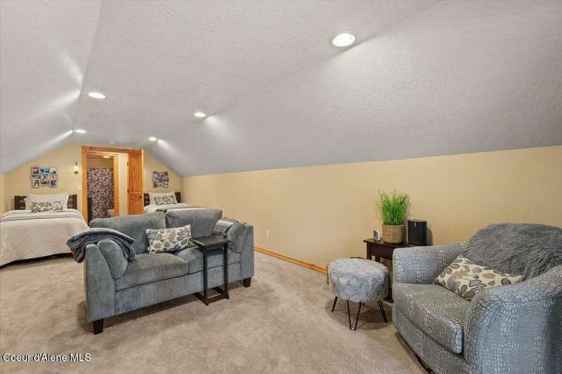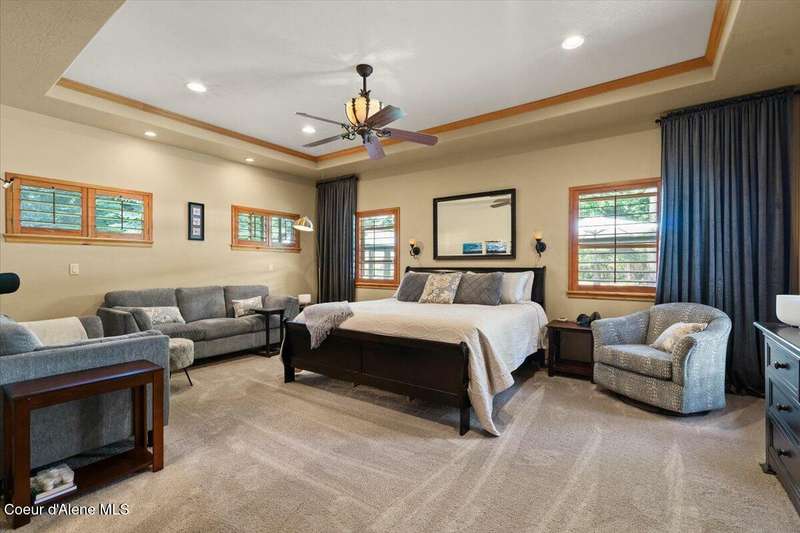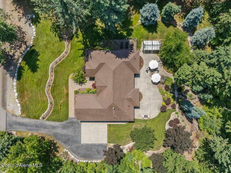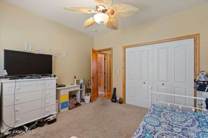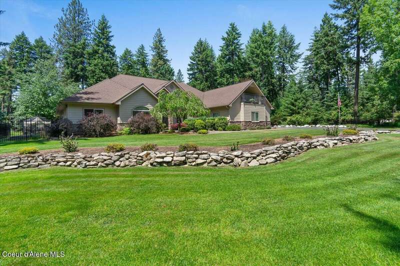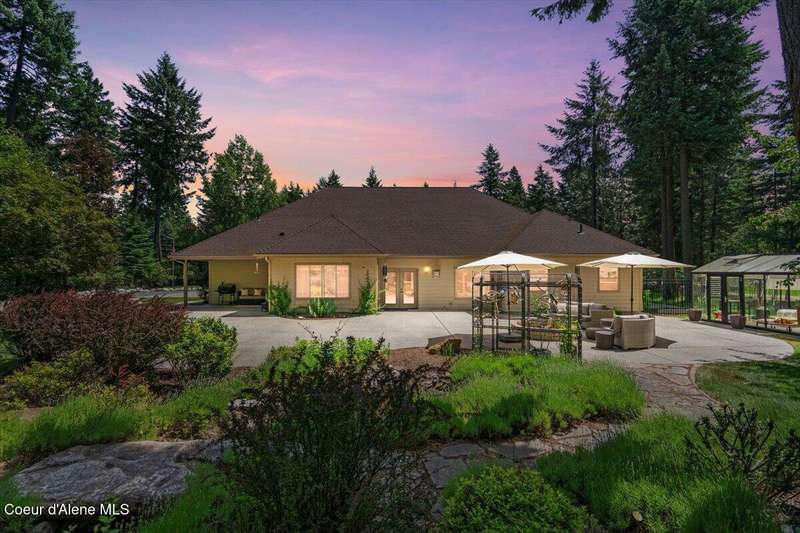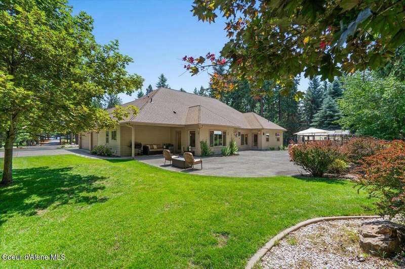 Discover luxury in the gated Harbor View Estates, just 20 minutes from downtown Coeur d'Alene! This 3,231 sqft masterpiece boasts 3 bedrooms, 3.5 bathrooms, and stunning filtered lake views. Inside, find soaring vaulted ceilings, a gourmet kitchen, and a home office with built-in desks for two. The bonus room above the garage, with a covered balcony and French doors, offers flexible space. The home has two hot water heaters, and whole-home vacuum system. The 2,500 sqft patio, pre-wired for an outdoor kitchen or pergola, features a 220V hot tub outlet, two fire pits, and a flagstone water feature. Enjoy a fenced garden, greenhouse, and fruit trees. An automatic whole-home generator and owned 500-gallon propane tank ensure reliability. Park effortlessly with a 6-car driveway and oversized 3-car garage. Residents access a private community beach and pavilion on iconic Lake Coeur d'Alene. Seize this rare opportunity to own paradise!