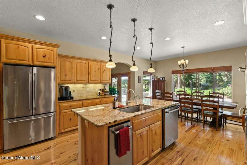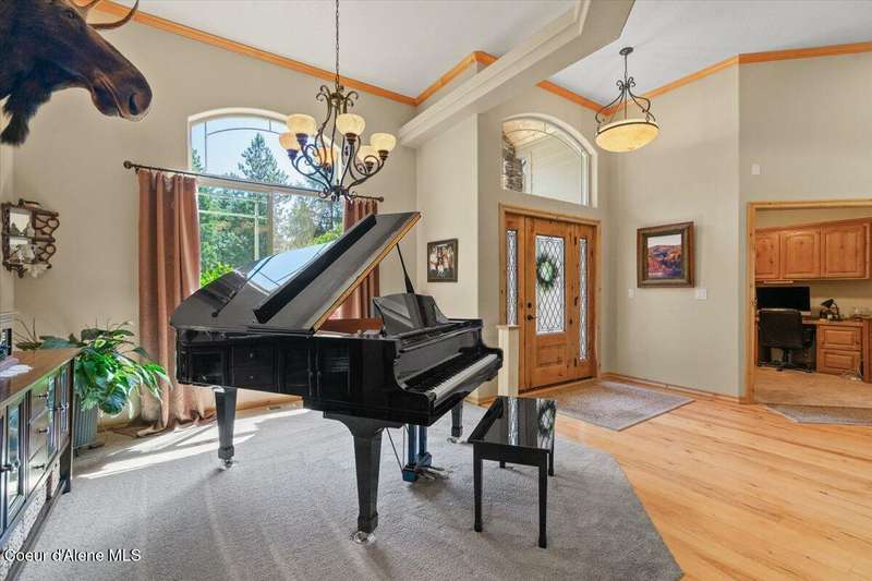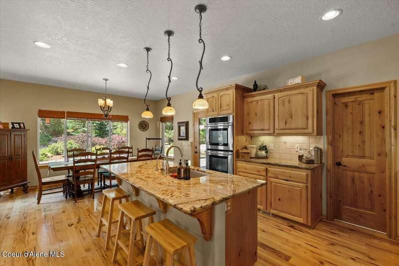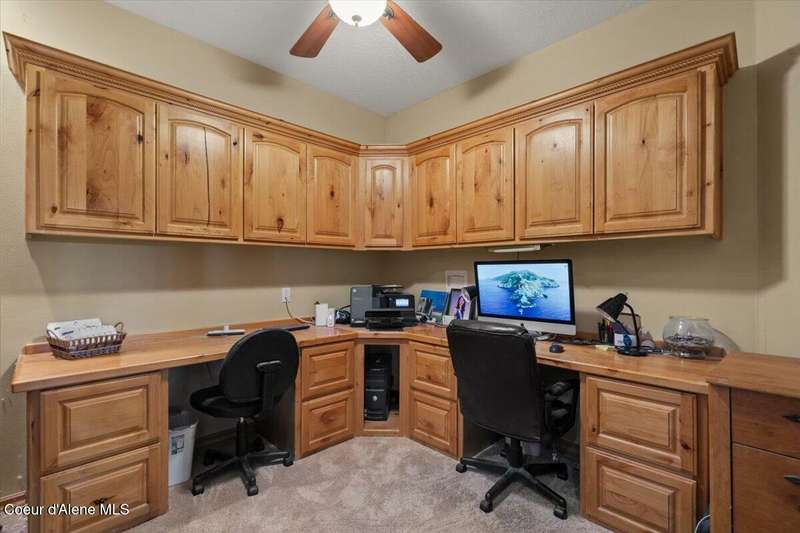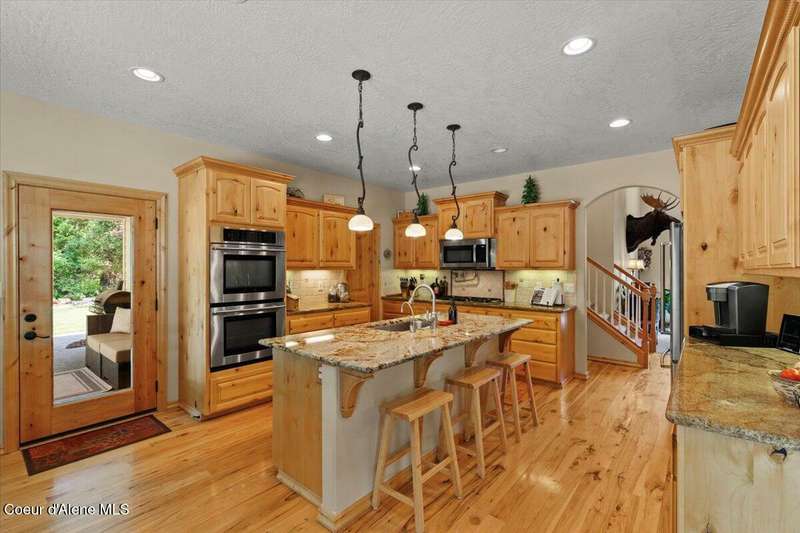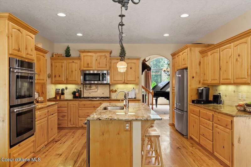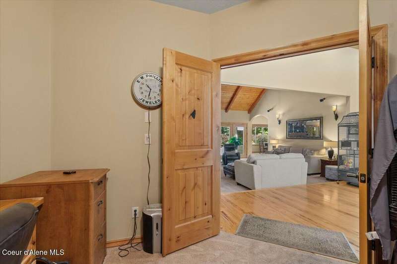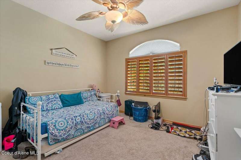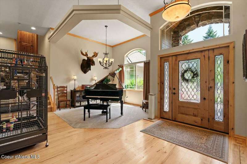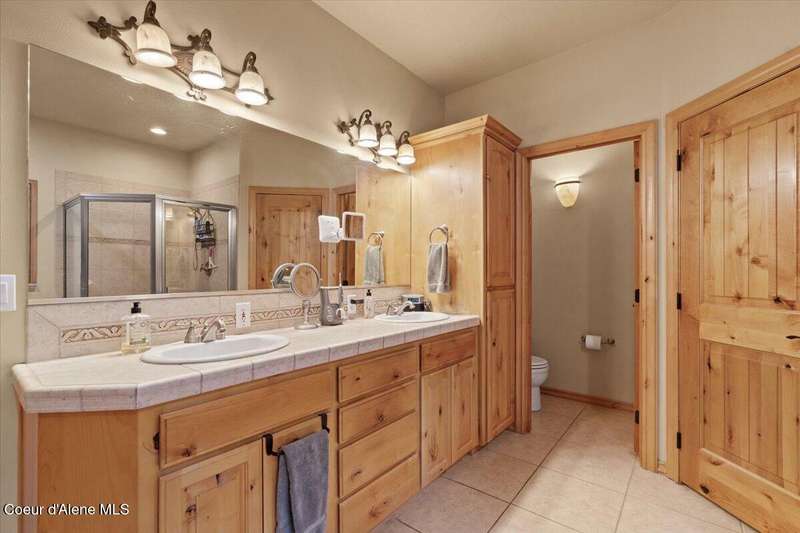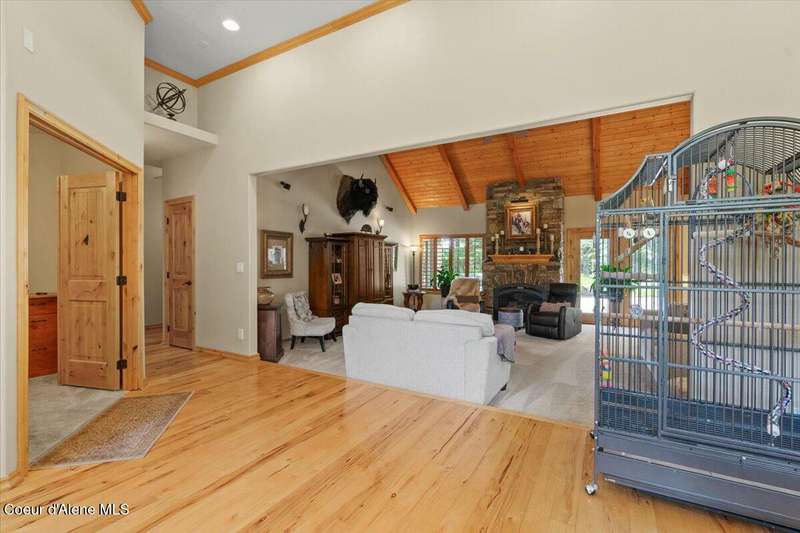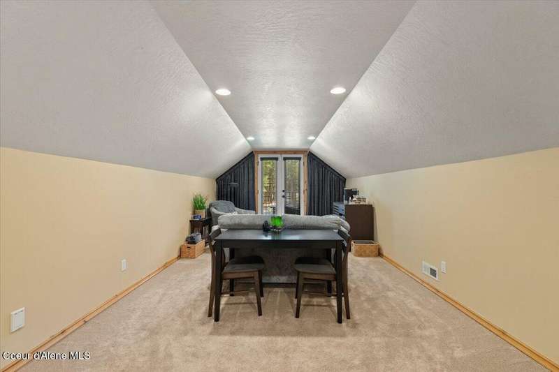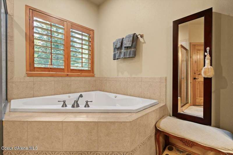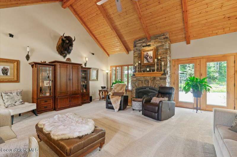 Discover luxury in the gated Harbor View Estates, just 20 minutes from downtown Coeur d'Alene! This 3,231 sqft masterpiece boasts 3 bedrooms, 3.5 bathrooms, and stunning filtered lake views. Inside, find soaring vaulted ceilings, a gourmet kitchen, and a home office with built-in desks for two. The bonus room above the garage, with a covered balcony and French doors, offers flexible space. The home has two hot water heaters, and whole-home vacuum system. The 2,500 sqft patio, pre-wired for an outdoor kitchen or pergola, features a 220V hot tub outlet, two fire pits, and a flagstone water feature. Enjoy a fenced garden, greenhouse, and fruit trees. An automatic whole-home generator and owned 500-gallon propane tank ensure reliability. Park effortlessly with a 6-car driveway and oversized 3-car garage. Residents access a private community beach and pavilion on iconic Lake Coeur d'Alene. Seize this rare opportunity to own paradise!
