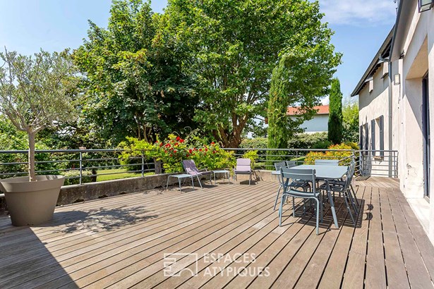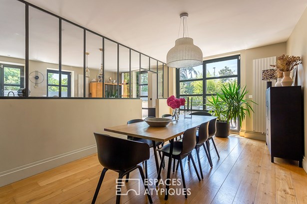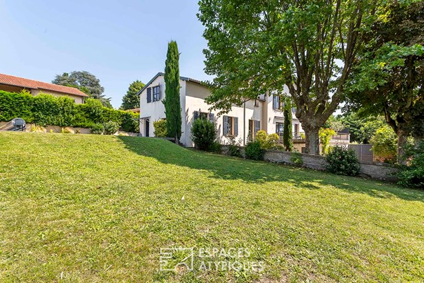Immerse yourself in the charm and comfort of this renovated old house, ideally located in the town of Charly. With a living area of 270 sqm and a plot of 1600 sqm, this property is a true haven of peace. From the entrance, the charm operates with the cement tiles and the wooden staircase leading up to the bedrooms. The ground floor consists of a beautiful and large living room and a dining room opening onto a fully equipped American kitchen semi-open by a glass roof.