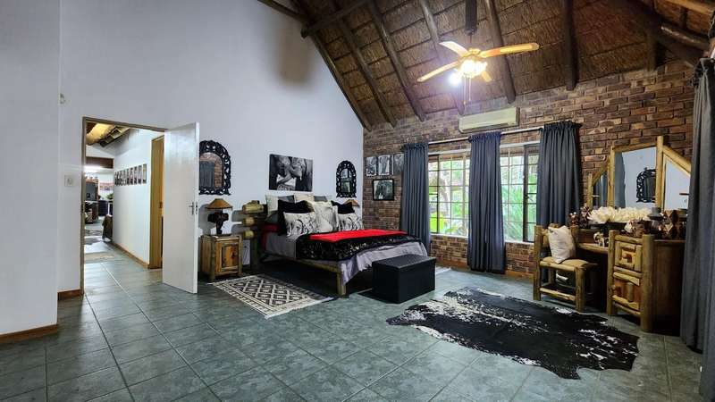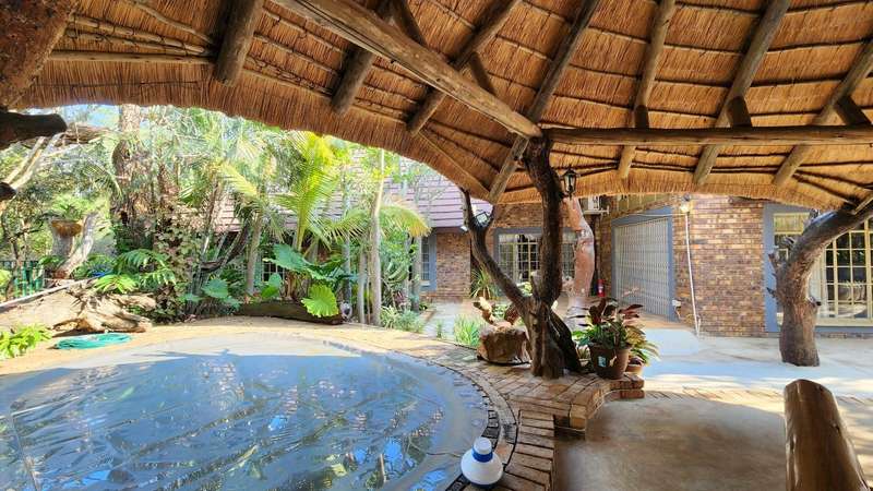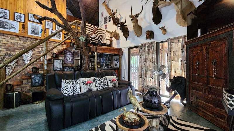 Living large - The perfect family home or holiday retreat. This magnificent home, is situated just off the main road in a panhandle on a beautiful spacious plot bordering parkland. This lovely home boast the following features; Ground floor Large open plan living spaces, kitchen, scullery and dinning room Lounge, with doors opening to the patio and entertainment area A hallway leading to 2 Large bedrooms, with main en-suite and an additional bathroom for guests Top floor Substantial loft area, offering 2 more bedrooms, a small lounge area and a bathroom. The loft leads out the a wooden deck. Entertainment area Nestled between a vast amount of Cycads and luscious greenery, are a perfectly located pool, with a Lapa and Boma. Outside Double garage and carport Storeroom Staff vanity Don?ÇÖt miss out on this exceptional property ?Çô contact us today to schedule a viewing and experience the magic of Marloth Park living for yourself!
