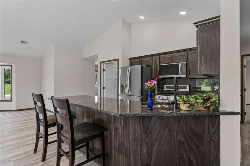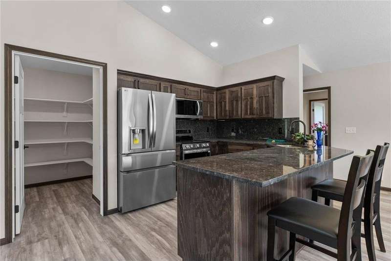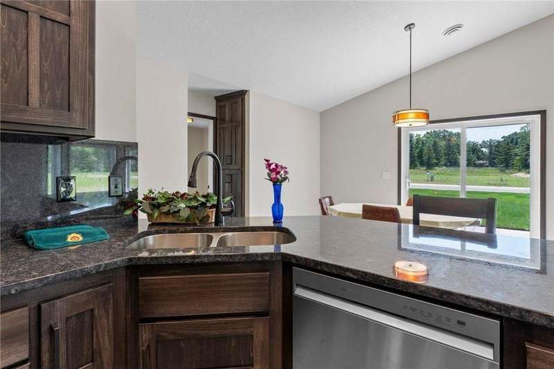 This 2 bed, 2 bath, one-level home is complete and ready for your personal touches. Situated on a large corner lot, it has been thoughtfully designed with a layout that combines open concept living with vaulted ceilings and luxury vinyl floors in the main living areas. In the kitchen, spacious granite countertops, custom cabinets, and a walk-in pantry will exceed your expectations. Primary suite offers a walk-in closet and private bath with dual sinks. Featuring both forced air and in-floor heat throughout, you are sure to stay comfortable all year long. The attached 3 car garage is oversized and boasts 16’ and 9’ wide doors. Located in the Whispering Aspen neighborhood with easy highway access for your commute, set up a showing and see what you are missing!