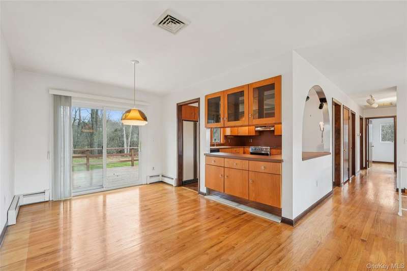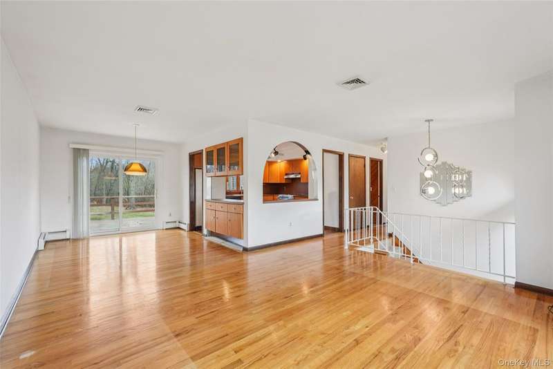 Welcome to 14 Old Minisink Trail, a sun-soaked charmer in one of Goshen's most desirable neighborhoods. From the moment you pull up, the curb appeal sets the tone?classic wood siding, beautifully manicured grounds, and a location surrounded by other fine homes. The outside hints at what's inside? and it does not disappoint. Step through the front door and feel the natural light pour in through Palladian and picture windows that brighten every corner. Interesting architectural touches?like curved archways, built-in display cabinets, and tasteful ceiling fans?give the home character without sacrificing comfort. The attractive kitchen is adjacent to the dining room and features a breakfast bar, lots of storage and counterspace. For outdoor dining and enjoying the natural setting, there is a deck close by. Rooms are impressively spacious, most finished with gorgeous light-colored hardwood floors that make the whole home feel airy and welcoming. The main bath is a standout, appointed with a substantial granite-topped vanity and a modern glass-enclosed walk-in shower that feels spa-worthy. All 3 bedrooms are on the main level which is standard in this popular raised ranch style home. Downstairs, the lower level adds even more convenience: a handy half bath and laundry, a generous recreation room perfect for hobbies, movie nights, or guests, plus a true 2-car garage. The wide driveway offers plenty of parking for gatherings large or small. Beyond the property, you're in the heart of Goshen?a walkable historic town known for its vibrant downtown area, unique shops, restaurants, orchards and vineyards, farmers markets, community events, Heritage Trail (hiking) and some well known architectural charm. With a proud legacy in harness racing it's home to the oldest active harness track in the U.S. and with the recent addition of Legoland Resort, Goshen has become a genuine tourist destination. Located only about 60 miles from New York City, Goshen blends small-town warmth with real convenience. Its public schools are well regarded, adding even more value to life here. If you're looking for natural light, character, convenience, and a wonderful community, you'll want to see this one for yourself. Come start here at 14 Old Minisink Trail?it may just feel like home the moment you arrive.