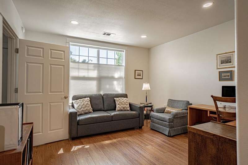 Lovely single-level condo in Ashland's premier 55+ Mountain Meadows community. This beautifully updated home features quality wood flooring, gas fireplace, open living/dining, and large sunny windows. The kitchen offers solid surface counters and abundant cabinetry. Enjoy a spacious guest room/office with en-suite bath and a charming primary suite with great storage, views, and private bath. Extras include built-ins, large laundry/utility room with sink, ample closets, and oversized single garage. HOA covers exterior maintenance, stunning landscaping, clubhouse, pool, fitness center, woodshop, trails, and gardens. Easy-care living in a serene, active setting!