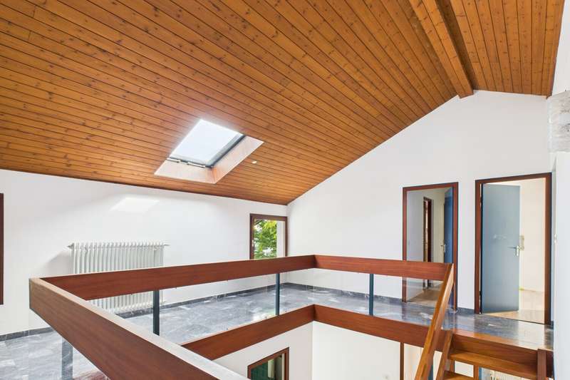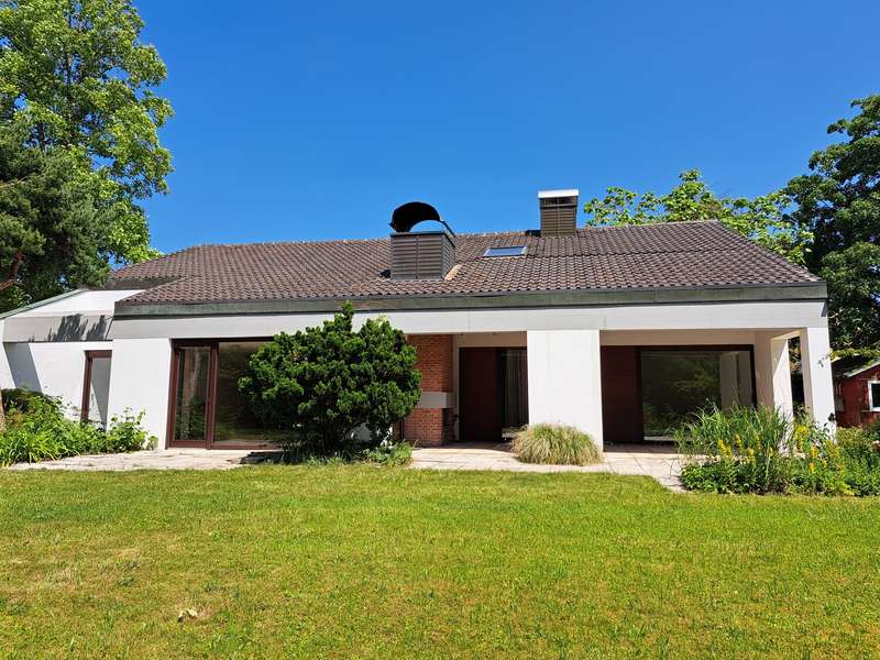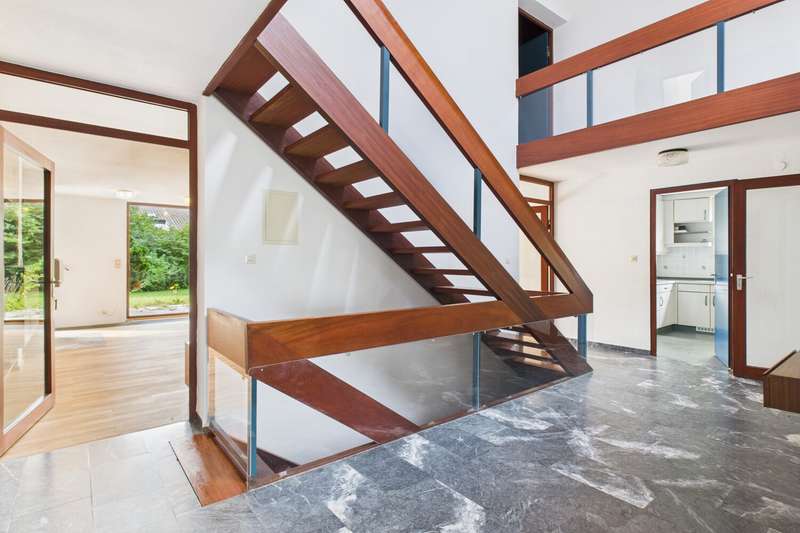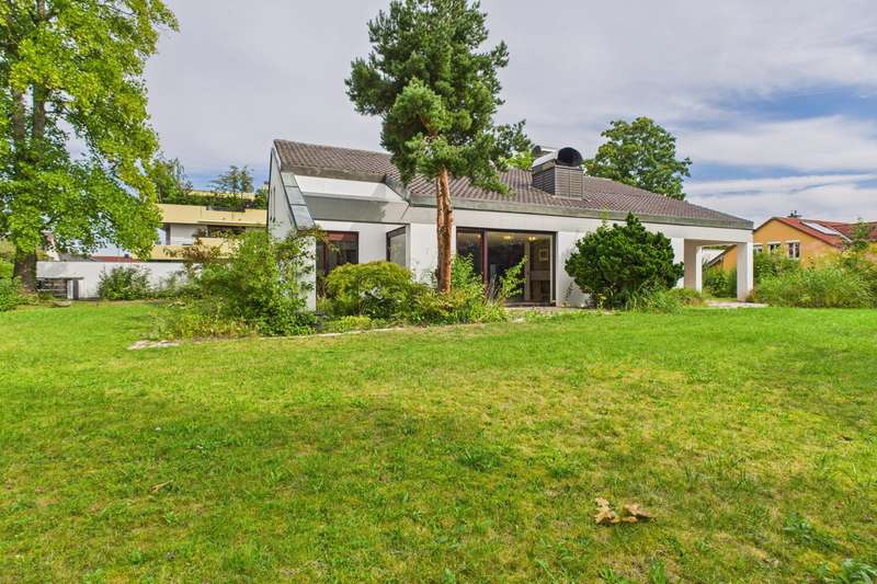 In a quiet and sought-after location in Stadtbergen, a spacious architect's house awaits you on a spacious dream plot at the transition between town and nature. The architecture impresses with its clear lines, light-flooded rooms and high-quality materials. The entrance hall with gallery and marble floor forms the prestigious heart of the house. Spacious living and dining areas with new floor coverings and the bright living room with direct access to the terrace and garden create an open, inviting ambience. On the first floor, a modern bathroom, fitted wardrobes made of fine wood and a spacious bedroom complete the living concept. The upper floor offers four further rooms and an additional bathroom - ideal for family, work or guests. The attic and full cellar create additional usable space. The well-kept property with a large driveway, wrought iron gate and natural garden rounds off this special offer.