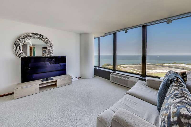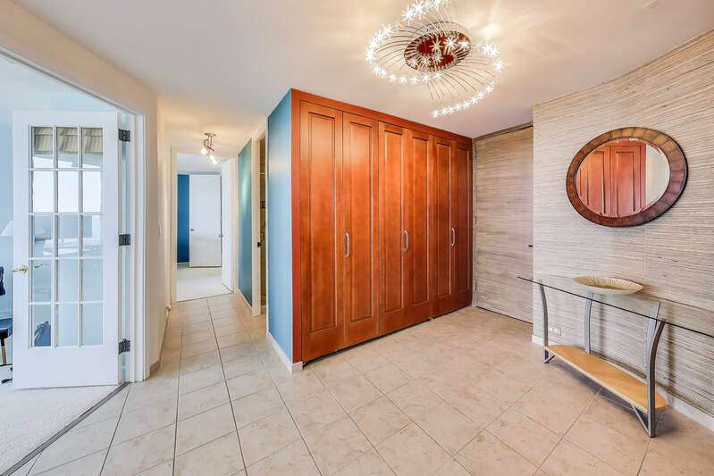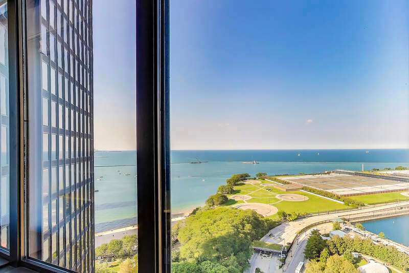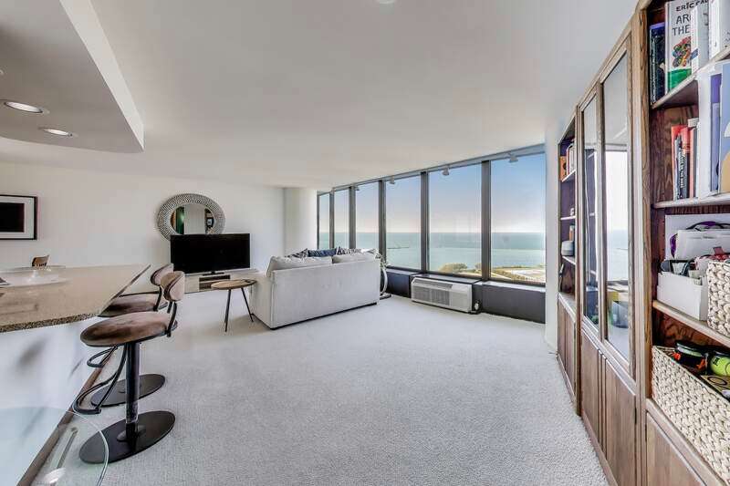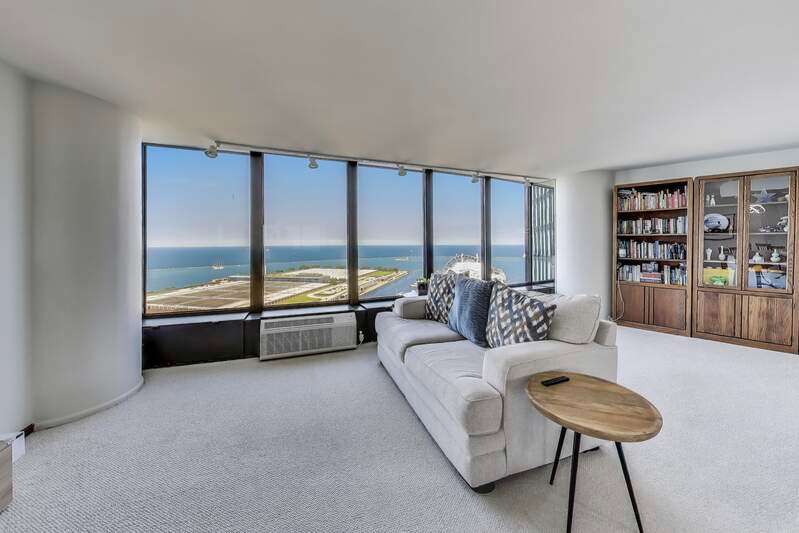 Lake Point Tower 2 Bed/2 Bath 1,471 SF Wake up to sweeping views of Lake Michigan and Navy Pier in this beautifully remodeled 2-bedroom, 2-bath condo at Lake Point Tower. Every room frames the ever-changing lake, making home feel like a retreat in the sky. The inviting grass-cloth foyer sets the tone for a warm, open layout. The kitchen overlooks the water and features cherry cabinetry, stainless steel appliances, and a large breakfast bar - perfect for casual dining. The primary suite includes a custom cherry closet system and a tiled walk-in shower, while the second bedroom with French doors is ideal for a guest room, den, or office. Updates include a new refrigerator, dishwasher, and in-unit Miele washer/dryer (2020). Enjoy morning sunrises and evening fireworks without leaving your home. Resort-Style Amenities: Full 24/7 health club with modern fitness equipment, racquetball courts, steam & sauna Indoor & outdoor pools 2.5-acre private park with playground, lagoon & BBQs Business center, library, community room, Tower Market, dry cleaners & restaurants Steps to Navy Pier, the lakefront trail, and CTA. Valet parking available for $290/month.