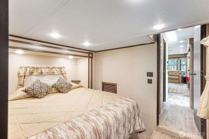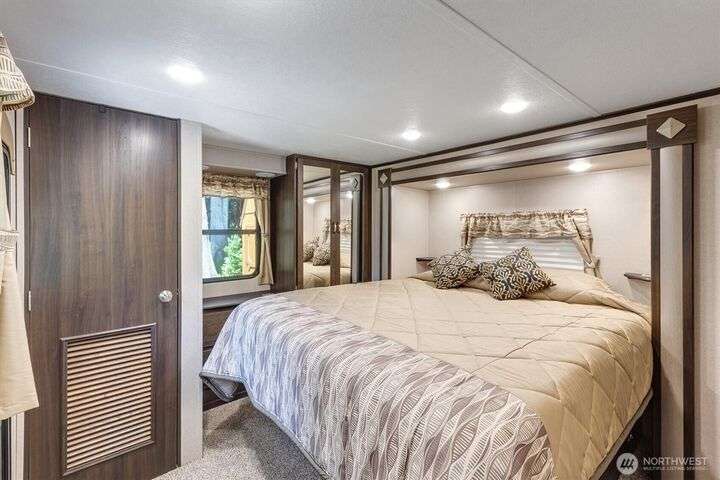 LAKE FRONT!! Wake up to a lake view 365 days with this flat buildable lot with loads of improvements! RV cover with slab, integrated electrical, sewer hook-up and water! RV goes with the property, so you're ready to hit the water as soon as you close! Attached extra large garage easily houses a pontoon boat AND extras! Hickory shed for added storage and approved fire pit. Located in Mayfield Kamper's Klub, this property offers extreme affordability with all the park extras, pickle ball court, walking trails, gated entry, playground and events, all for only $600/year, INCLUDING water and sewer! *sale is to become a shareholder in the club. Buyer must meet with club membership before closing.