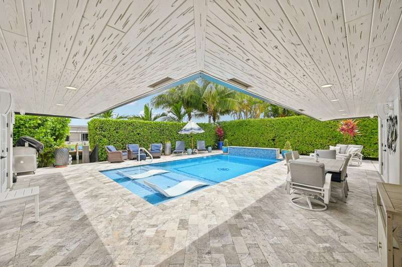 A private boaters retreat in Boca Ratons Bel Marra waterfront community. Situated on a navigable wide canal with direct ocean access, this beautifully maintained 3 bedroom, 2 bath single family residence offers the perfect blend of privacy, comfort & premium waterfront living. Surrounded by lush tropical landscaping, the homes private outdoor oasis features a saltwater pool, multiple seating areas, and tranquil water views--ideal for both relaxation and entertaining. For boating enthusiasts, this property is a rare find: equipped with an elevator boat lift rated up to 16,000 lbs, complete with water and electric at the dock. Built for peace of mind, the home includes impact glass throughout, a whole-house generator, and a 2018 roof for lasting durability. Inside, youll find defined and thoughtfully designed living spaces featuring high-end Wolf and LG appliances, a whole-home water filtration system, and tasteful finishes throughout. The oversized 2-car garage offers ample space for storage, hobbies, or workshop use. Offered at a remarkable value, this home delivers luxury waterfront living on a wider canal with ocean access and no fixed bridges. Dont miss the opportunity to own one of the areas most complete and competitively priced boating homes in a highly desirable location. Schedule your private viewing today!