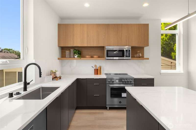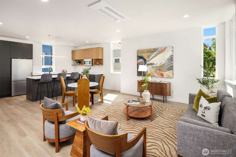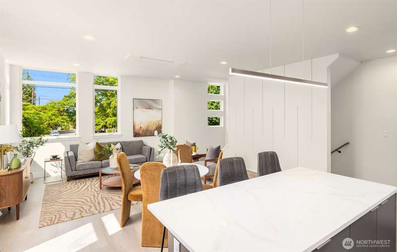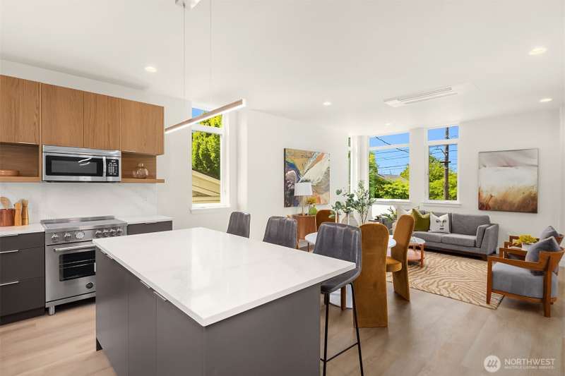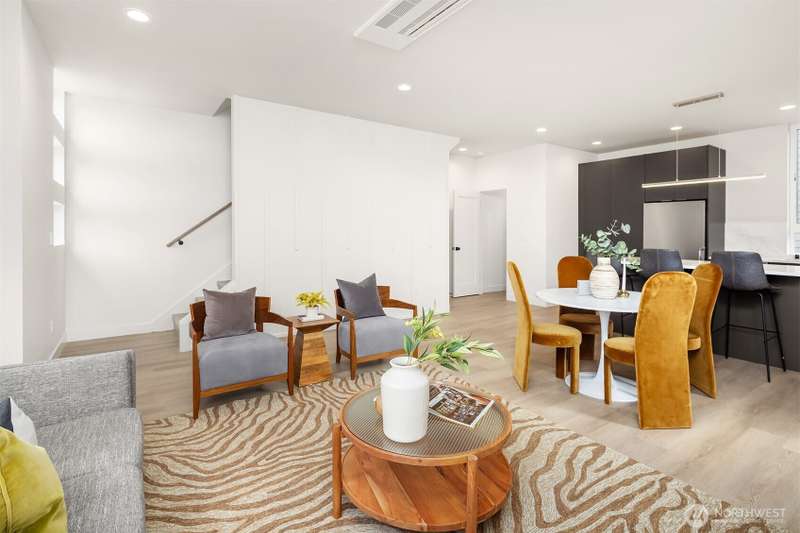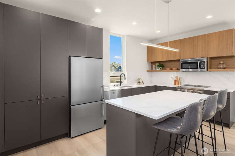 Crafted by respected local builder BriKat Homes, this new townhome community is nestled in the heart of Wallingford—one of Seattle’s most beloved neighborhoods. Stylish, high-quality finishes elevate the interior, with a main-level bedroom and ¾ bath ideal for guests or a home office. The expansive great room features Bertazzoni appliances, a designer feature wall, generous storage, and powder room. Upstairs, find a luxurious primary suite and an additional bed and bath. Soak in the sun or host with ease on your private rooftop deck. An attached EV-ready garage adds everyday convenience. Plus, included washer and dryer! Located just blocks from Green Lake, Woodland Park, Fremont, and Wallingford dining—this is city living at its best.